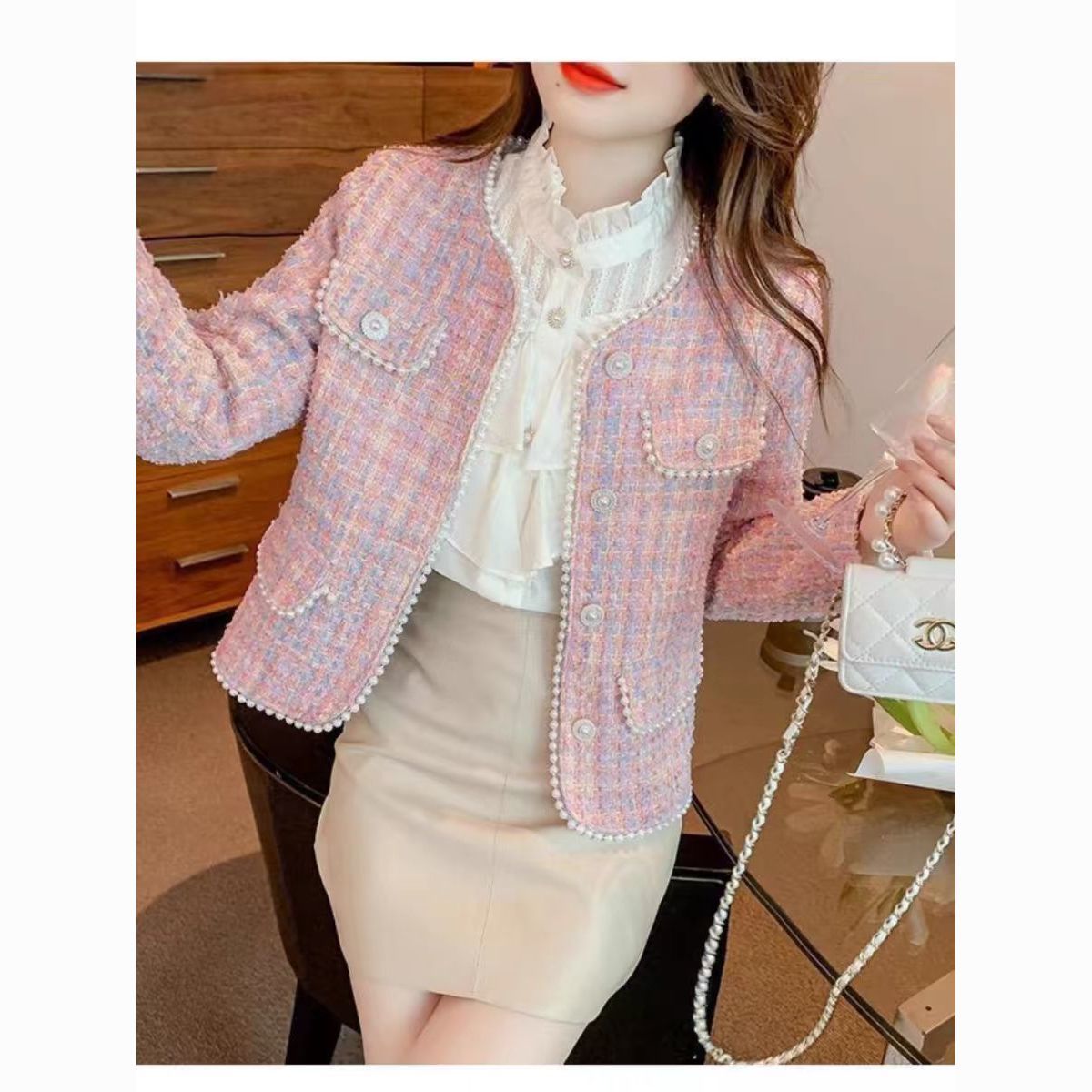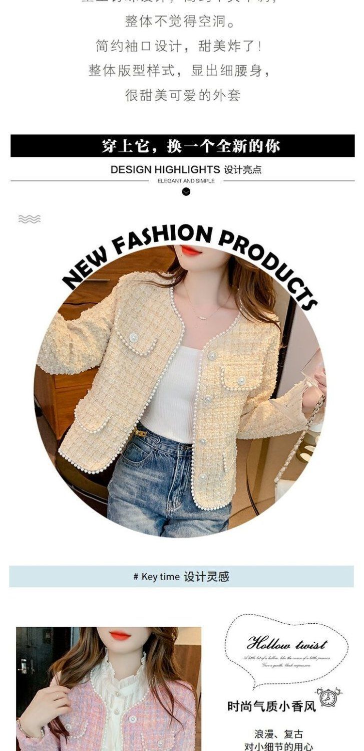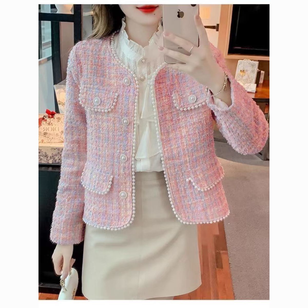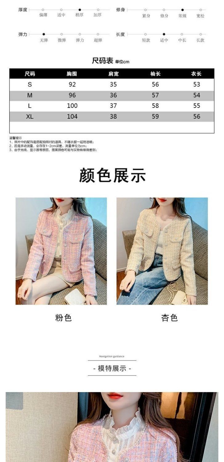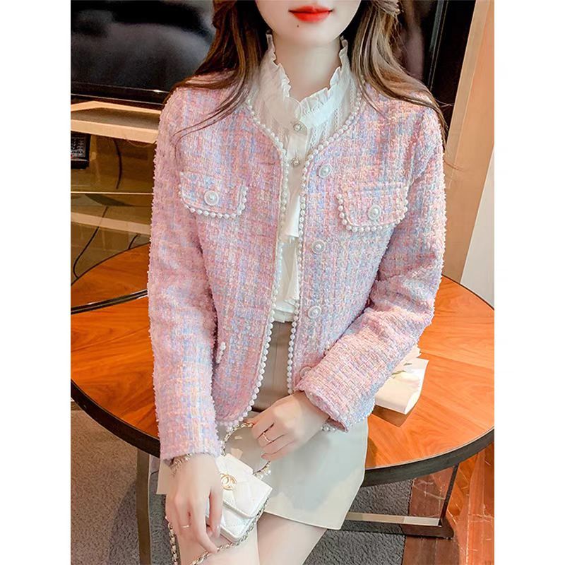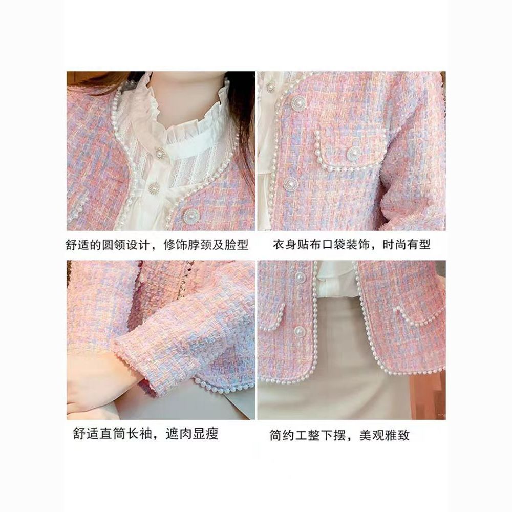 粉色名媛短款小香风外套女春秋新款小个子法式高级感钉珠上衣夹克