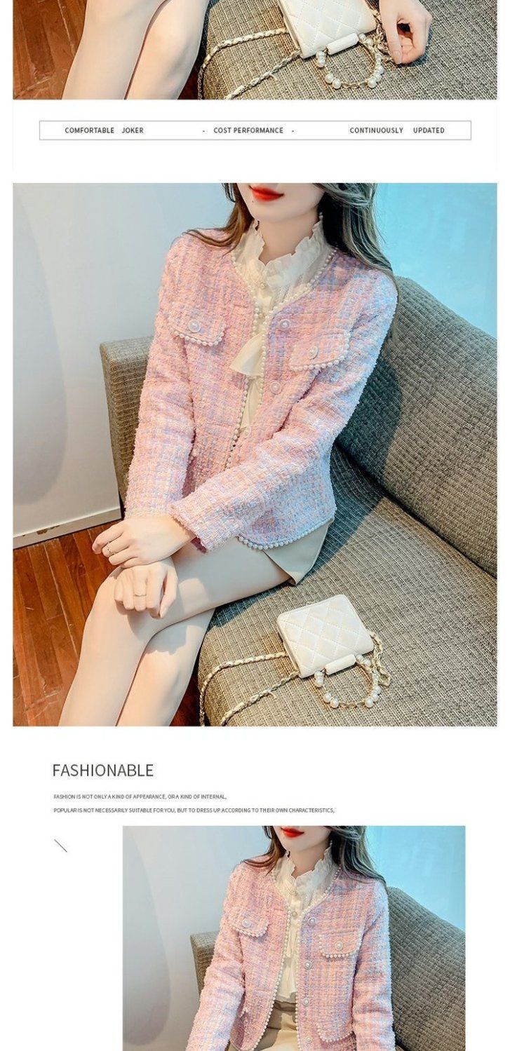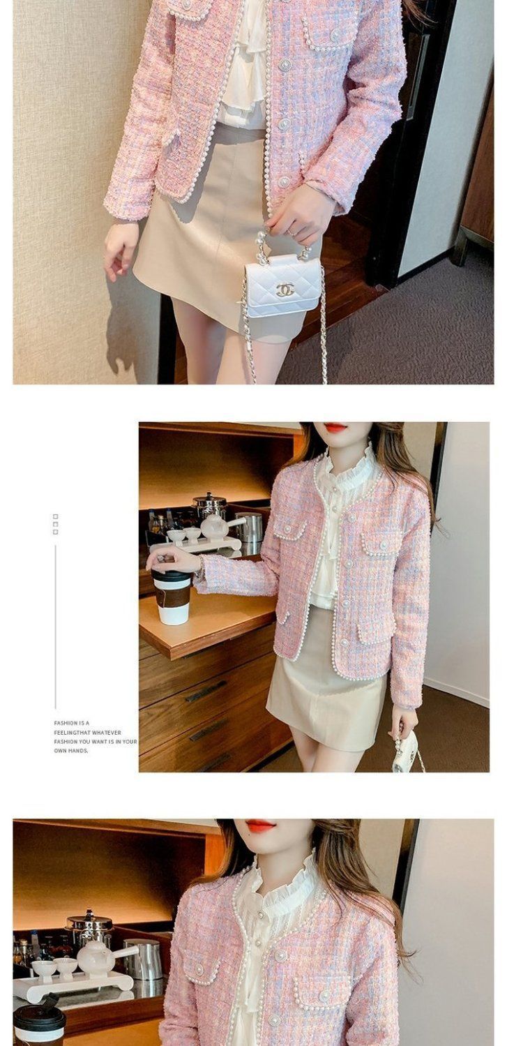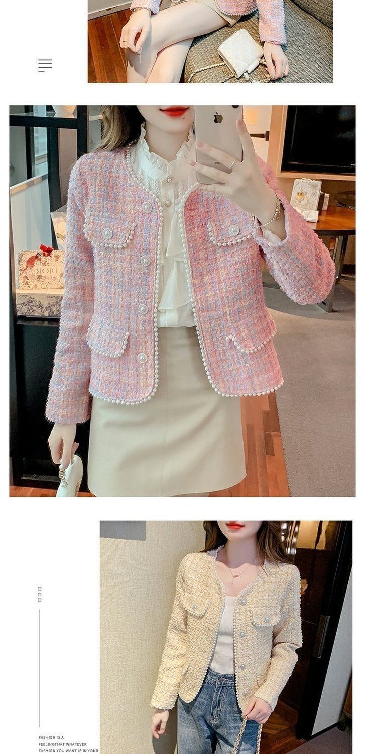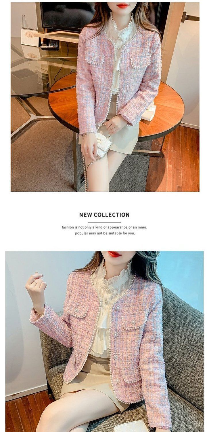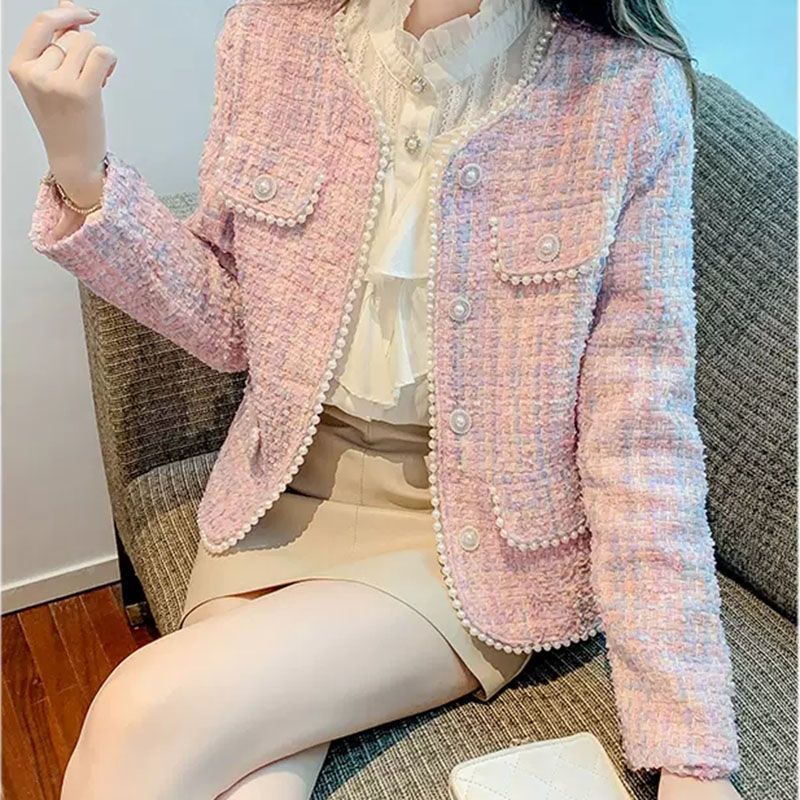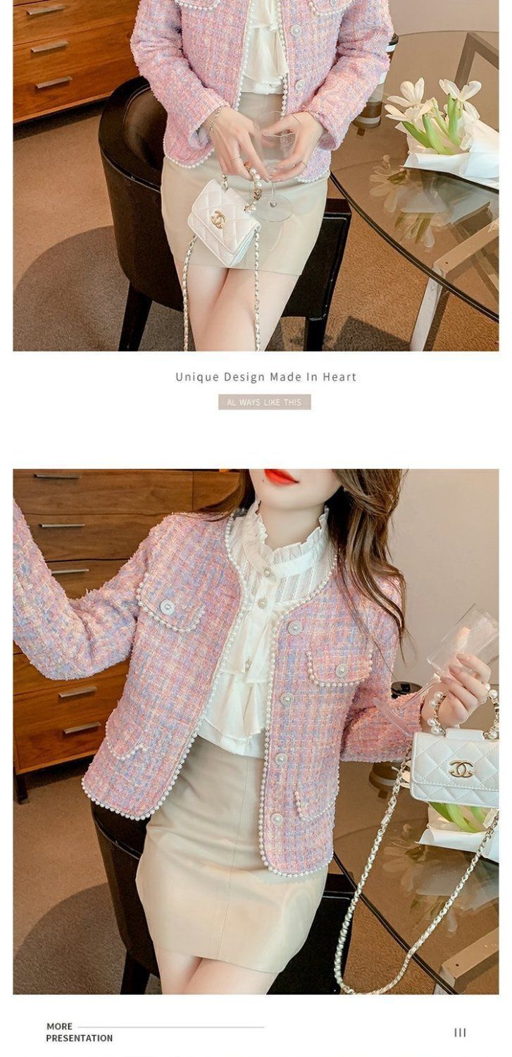 粉色名媛短款小香风外套女春秋新款小个子法式高级感钉珠上衣夹克