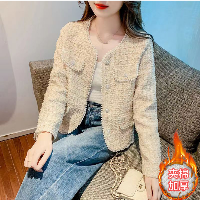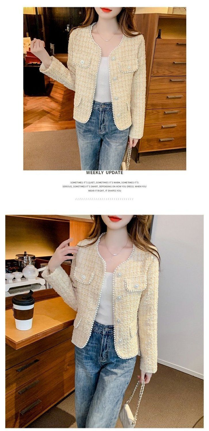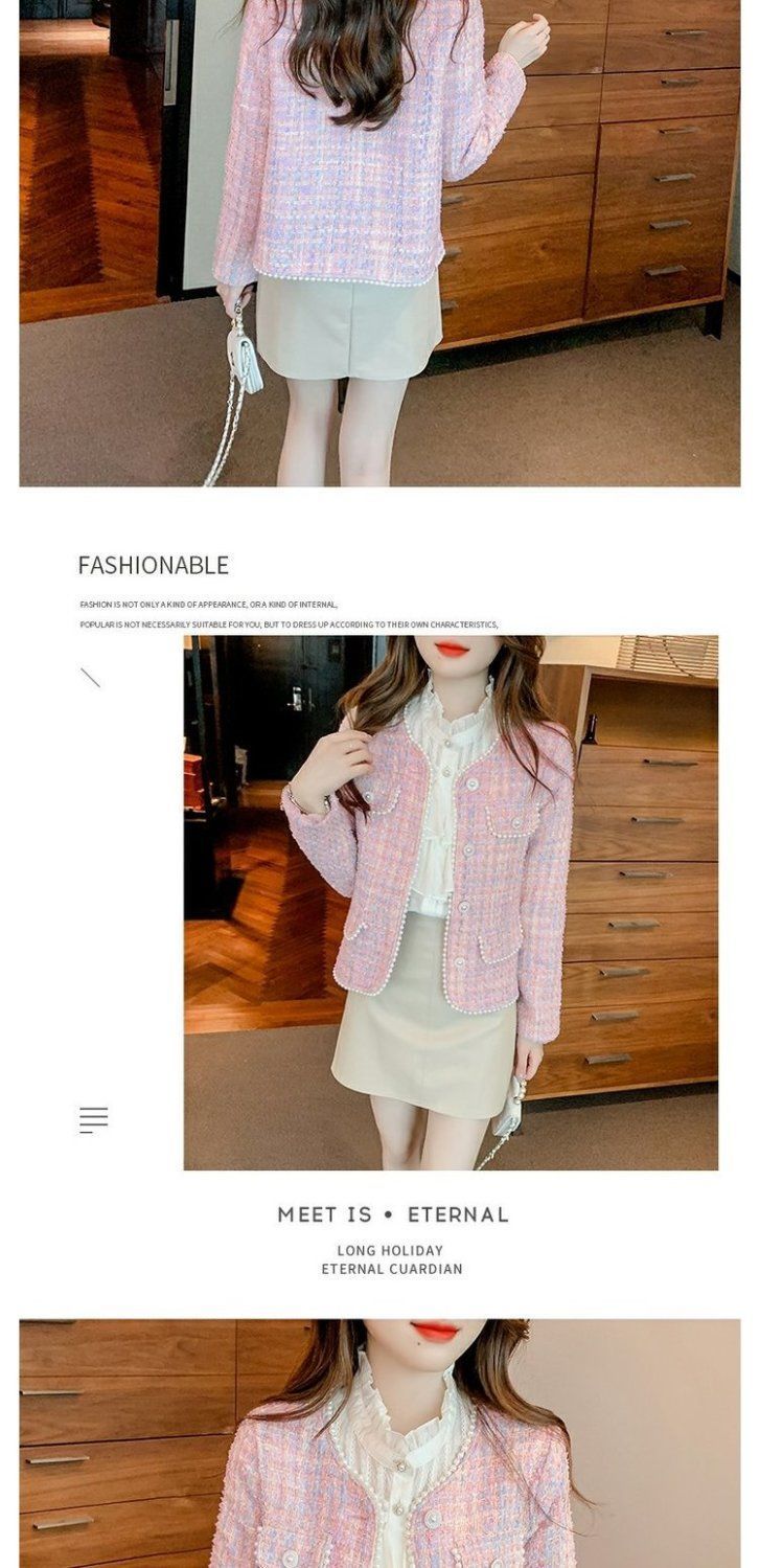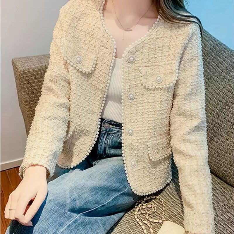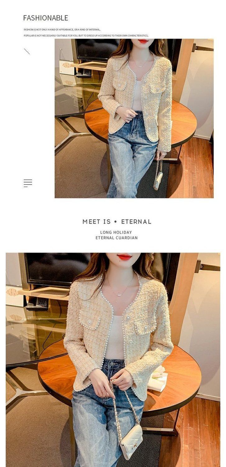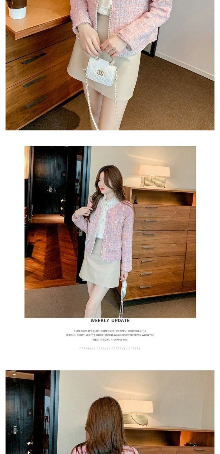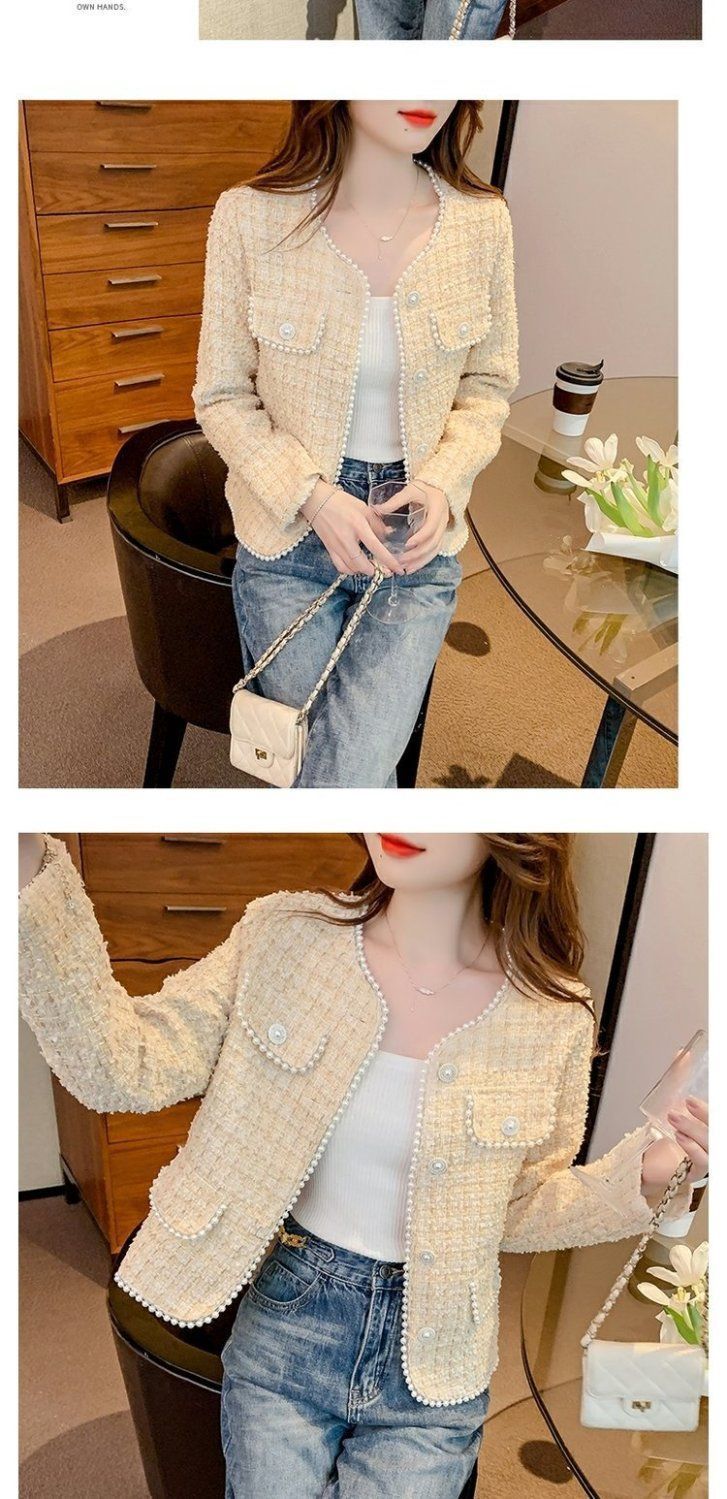 粉色名媛短款小香风外套女春秋新款小个子法式高级感钉珠上衣夹克