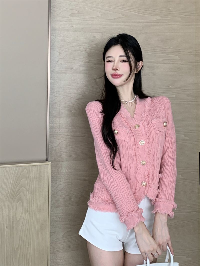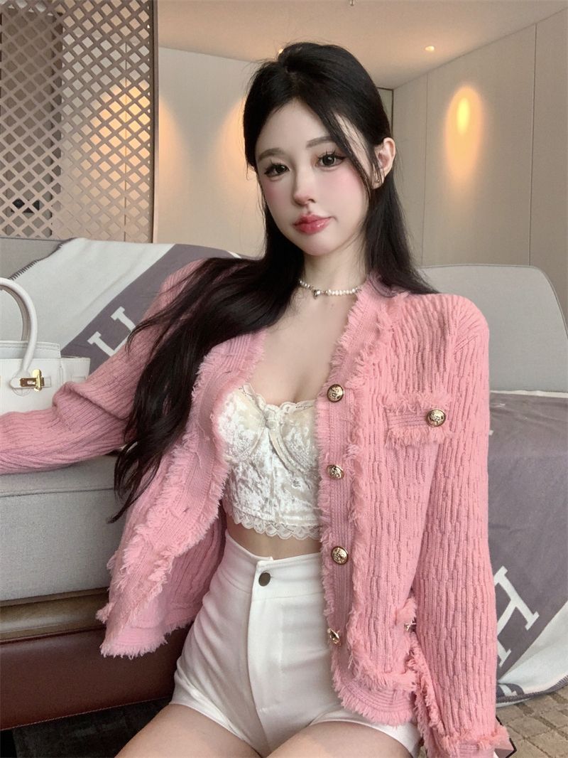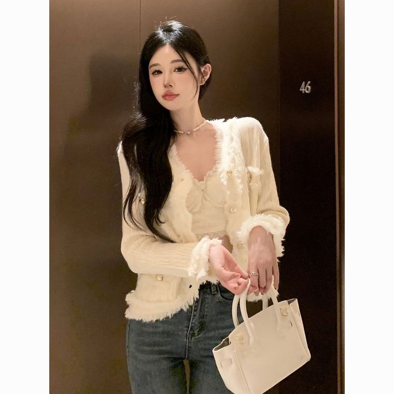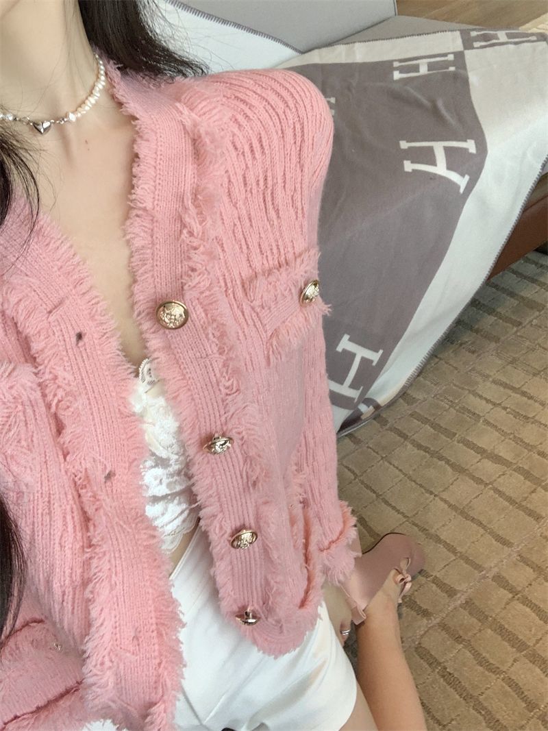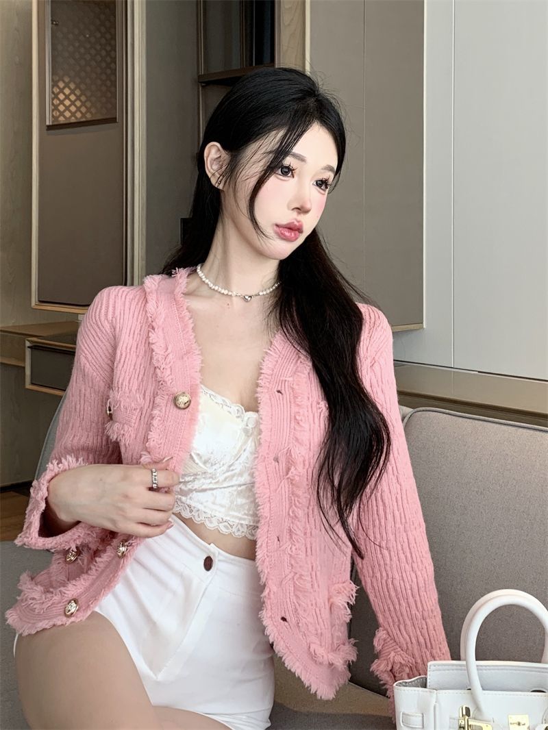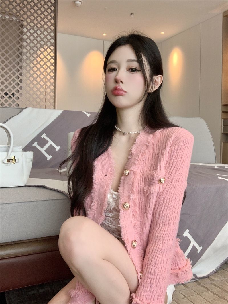 别致绝美小香风流苏毛衣外套女秋冬季氛围感慵懒V领针织开衫上衣