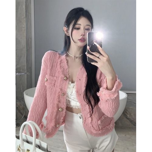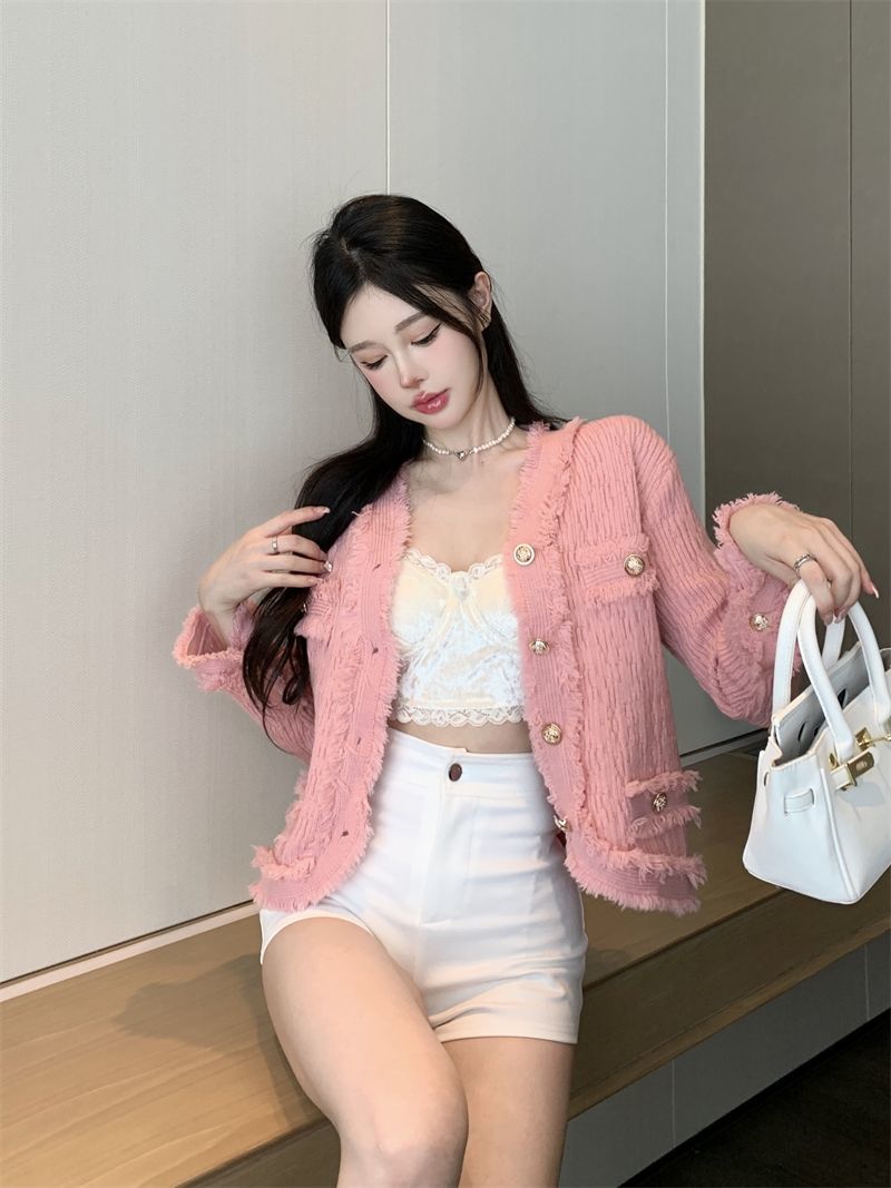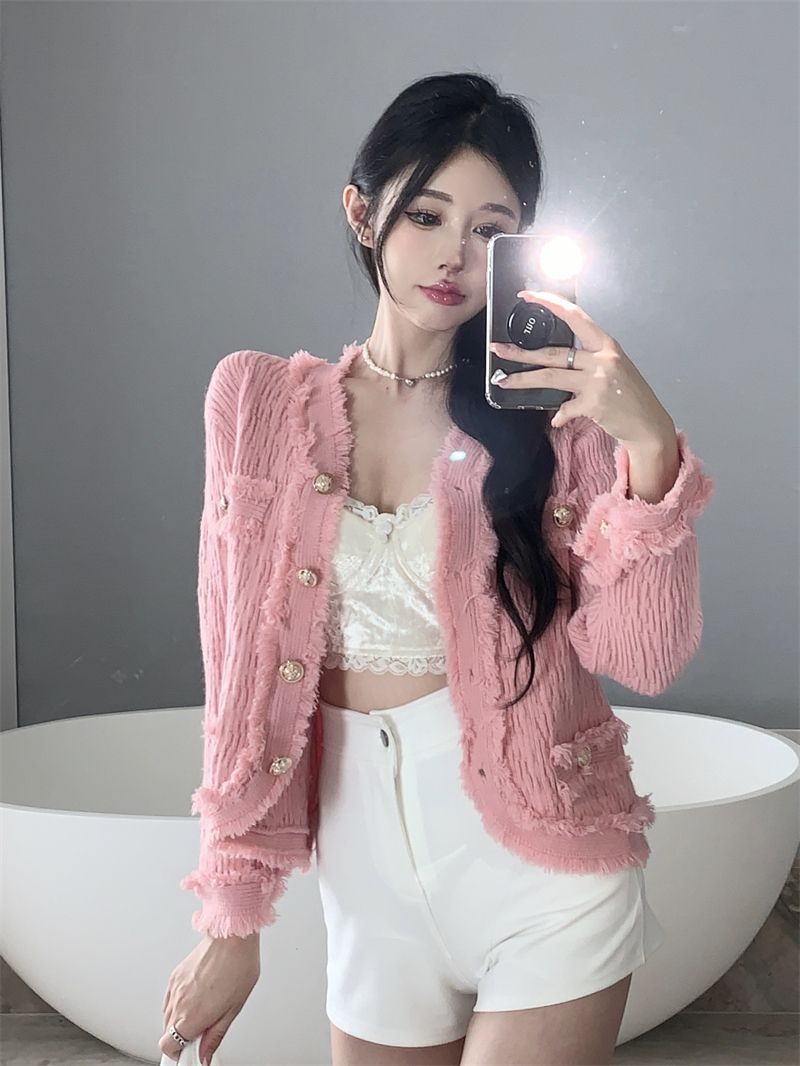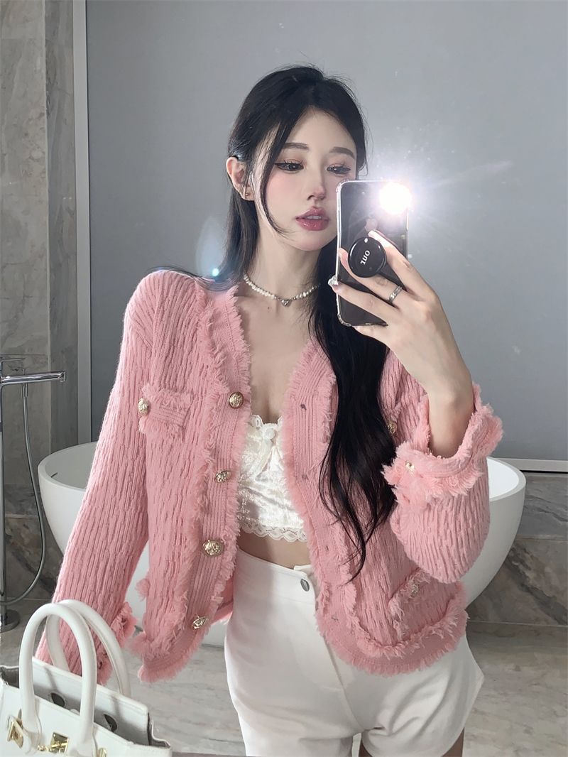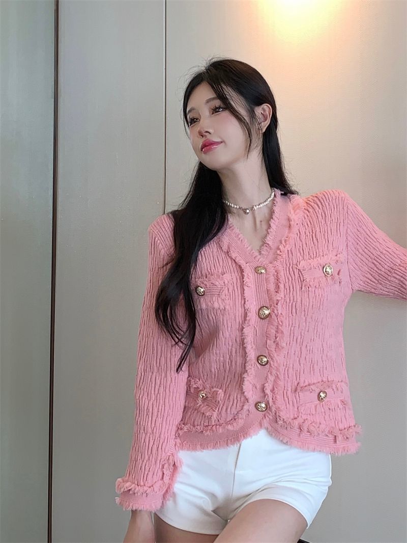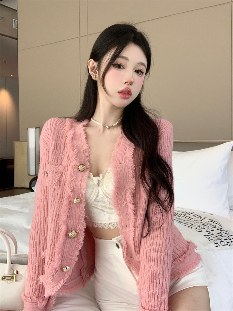 别致绝美小香风流苏毛衣外套女秋冬季氛围感慵懒V领针织开衫上衣