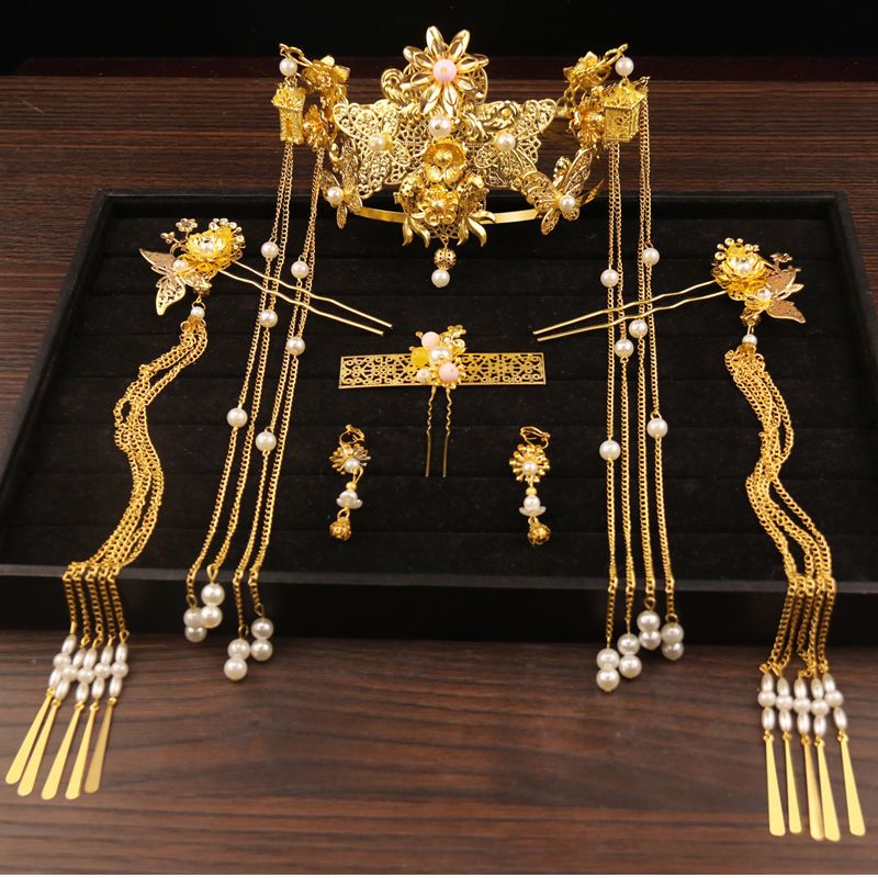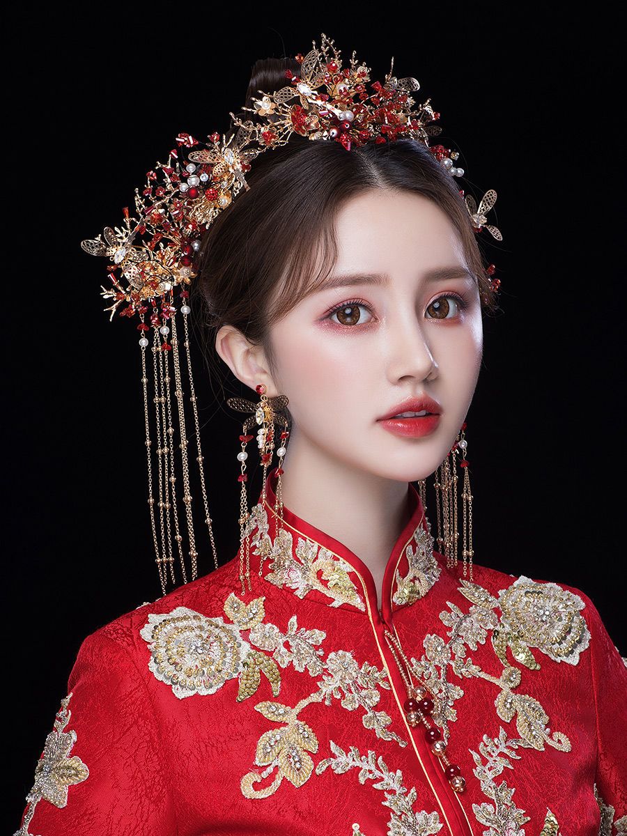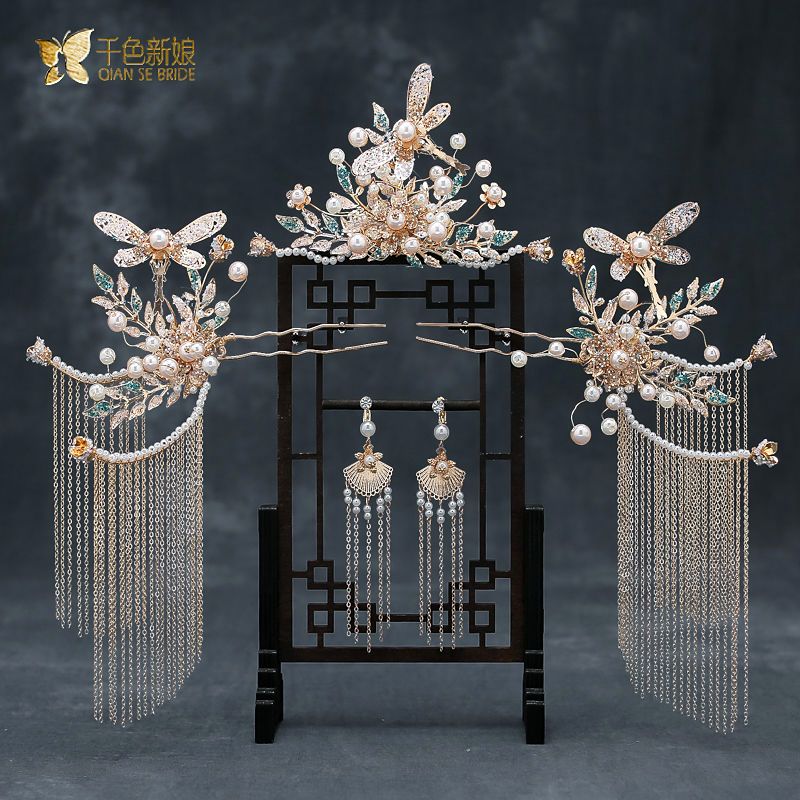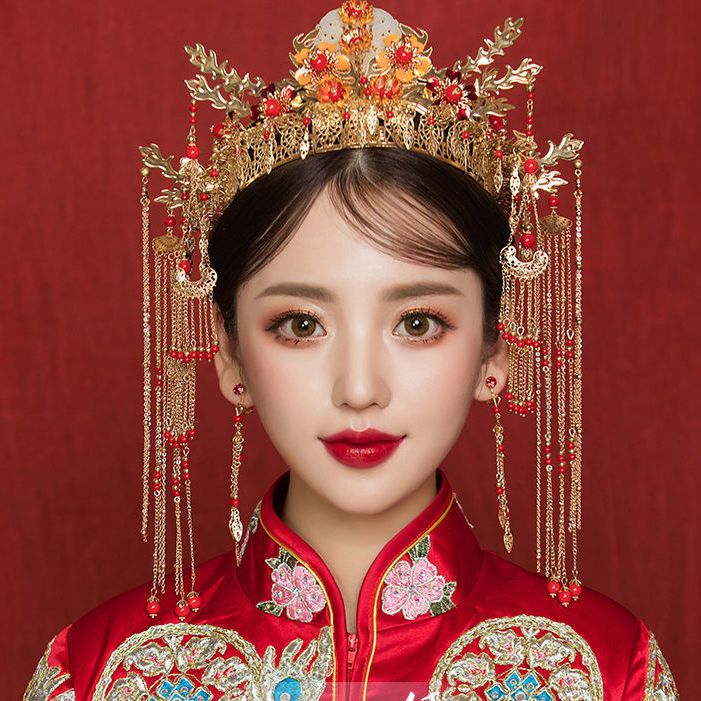 秀禾服头饰简单大方凤冠皇后大气新娘结婚长流苏2021年新款皇冠