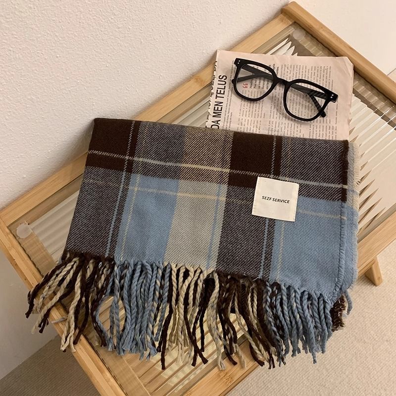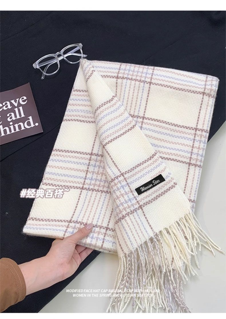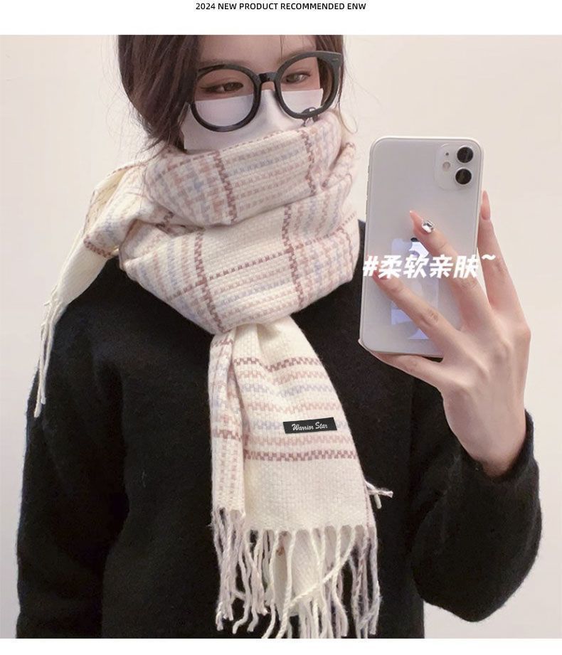 围巾女冬季保暖高级感格子披肩2024新款秋百搭时尚围脖双面加厚潮