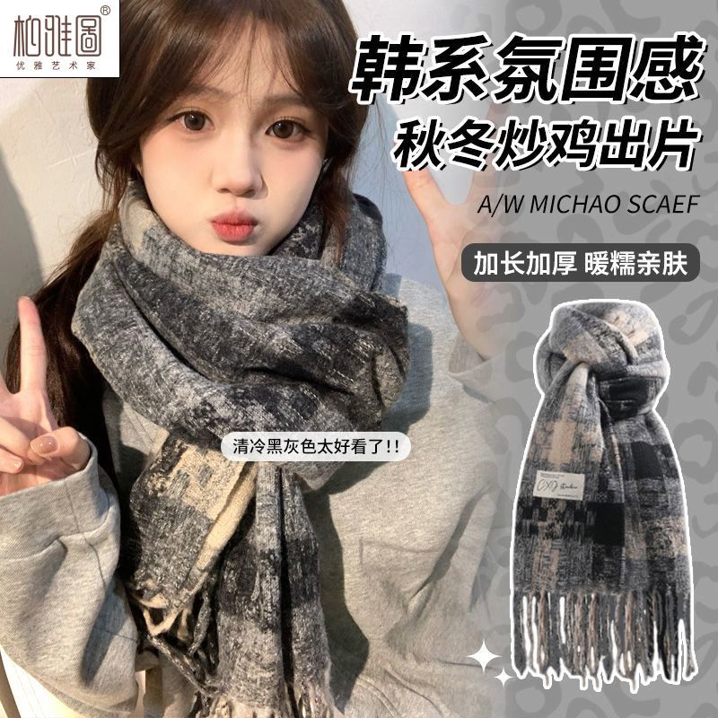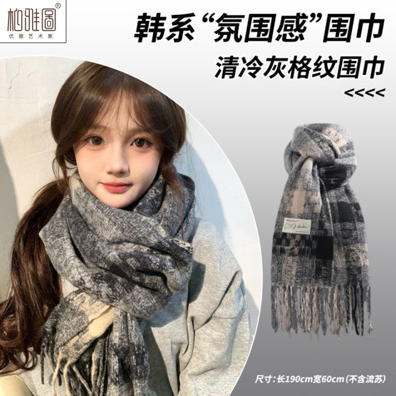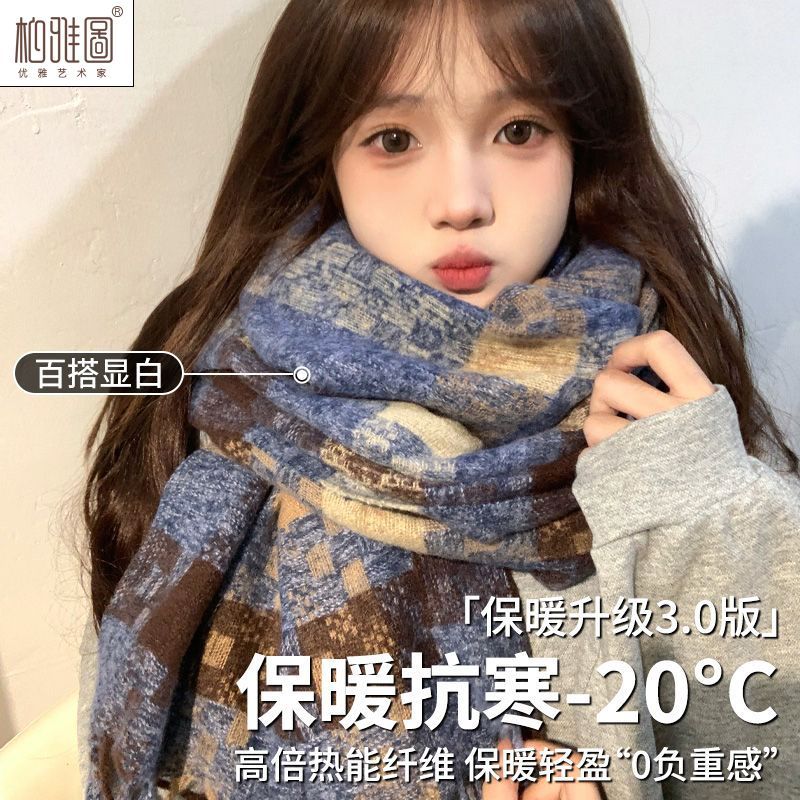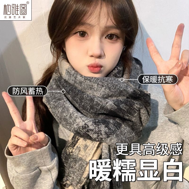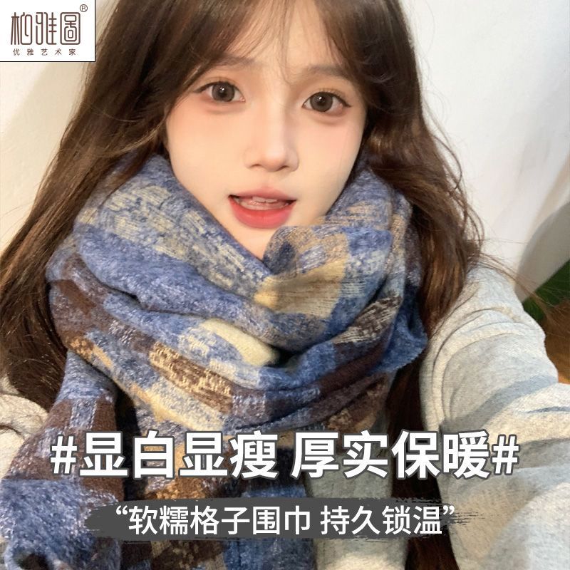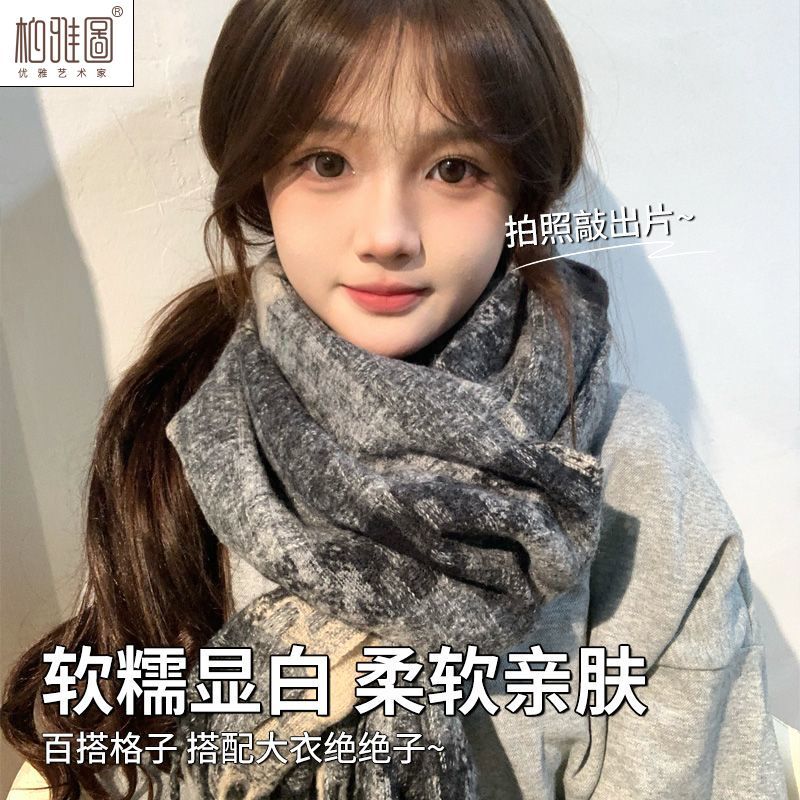 柏雅图格子围巾女冬季高级百搭加厚保暖韩版氛围情侣新款围脖披肩