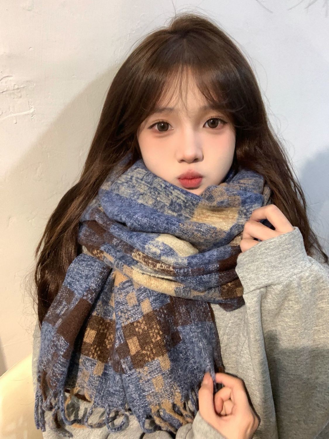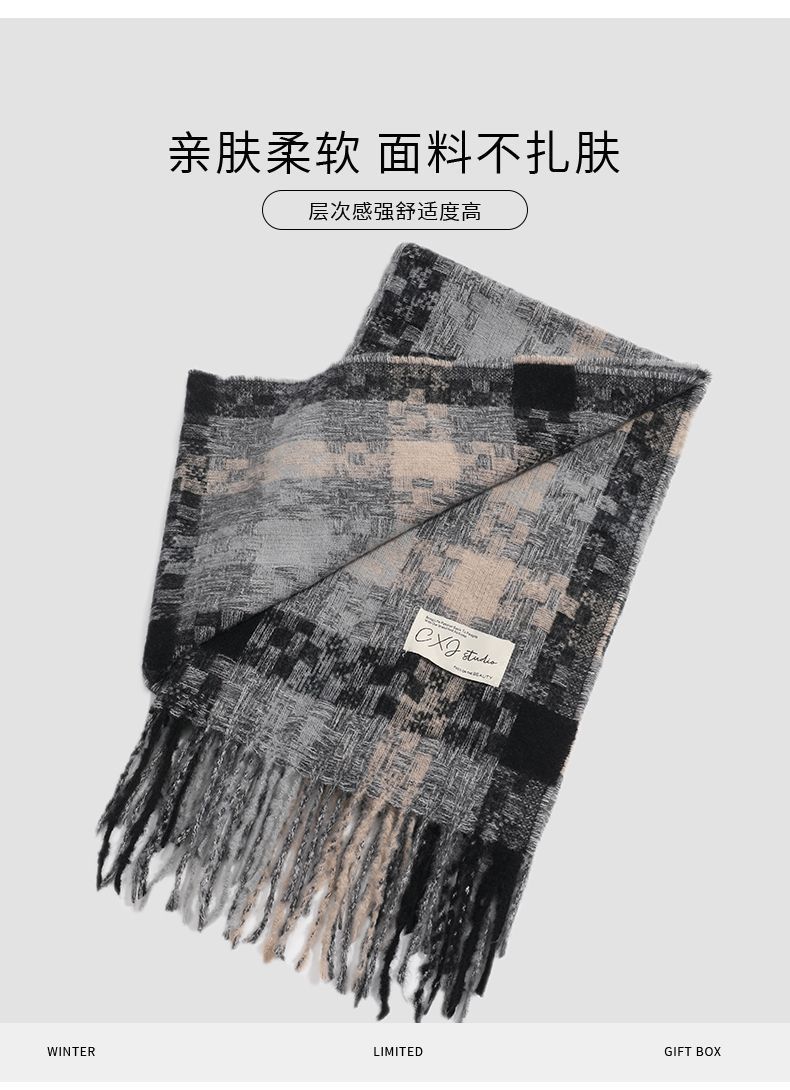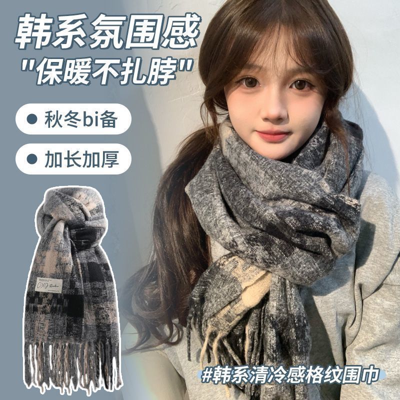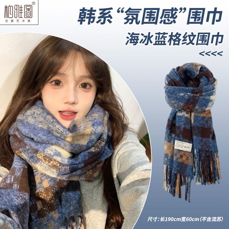 柏雅图格子围巾女冬季高级百搭加厚保暖韩版氛围情侣新款围脖披肩