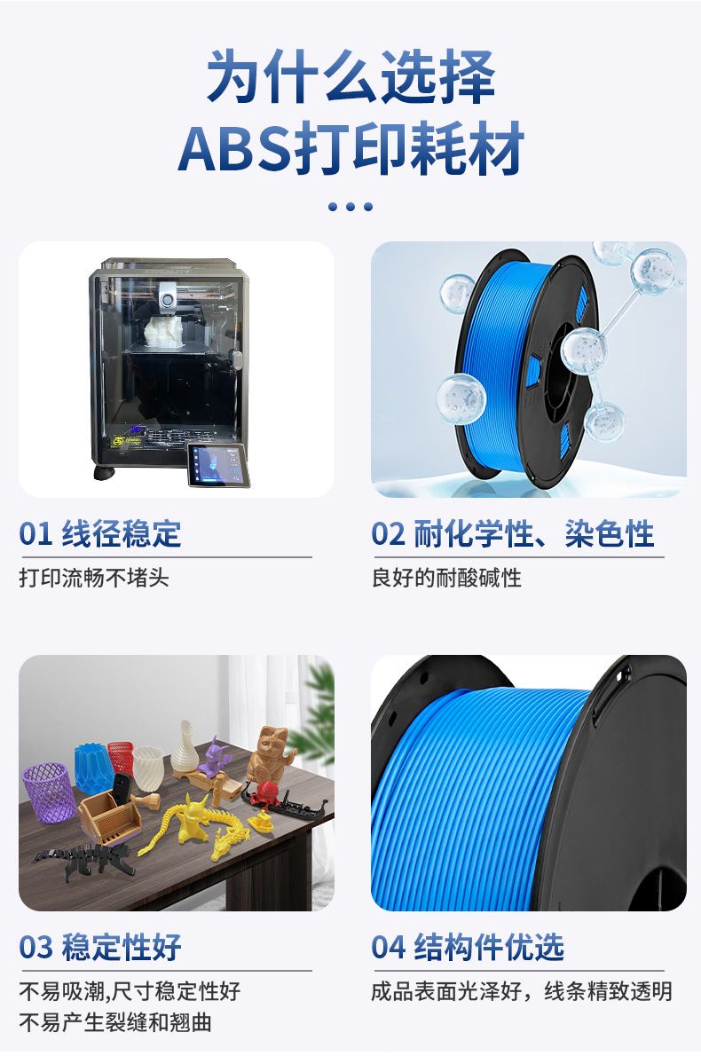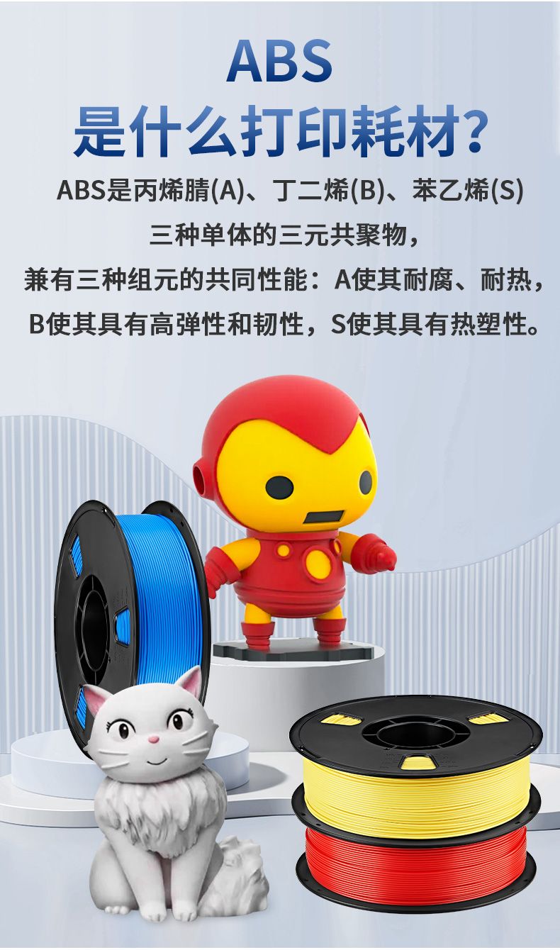 ABS 3D打印机耗材1.75mm高强度速环保1KG 3d材料适用创想三维拓竹