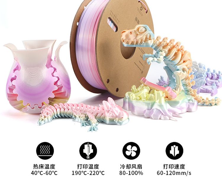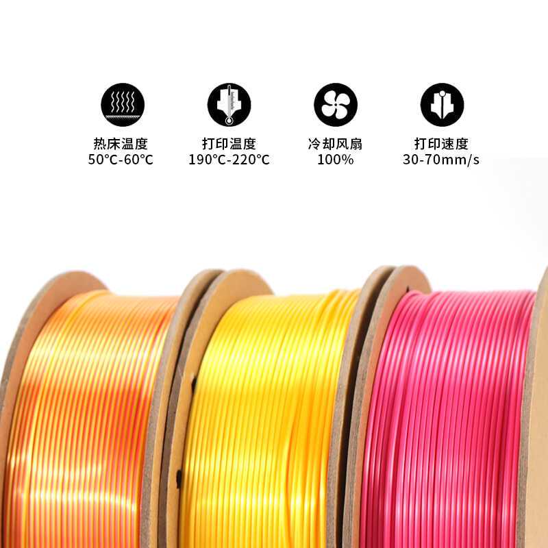 七彩蚕3D打印机PLA耗材丝绸双色三色彩虹色耗材FDM材料1.75mm