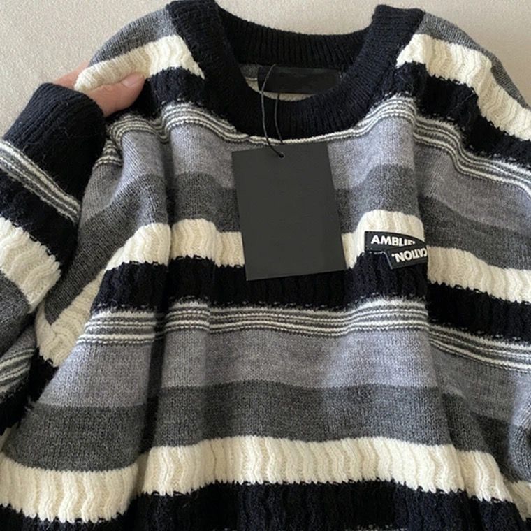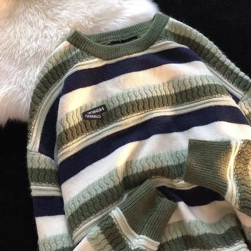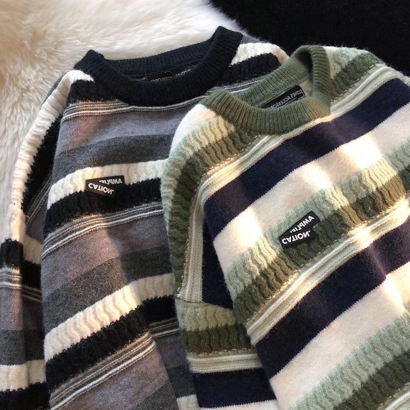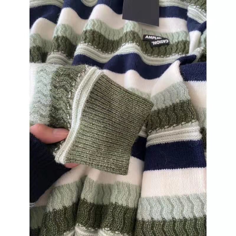条纹毛衣男女秋冬季设计感小众日系圆领针织衫宽松潮流