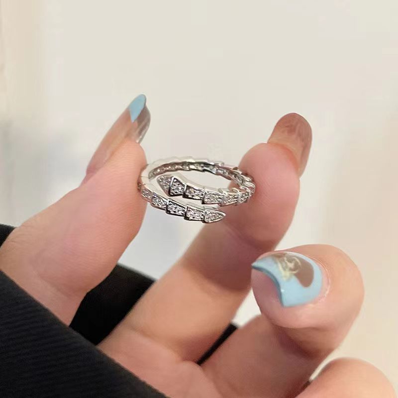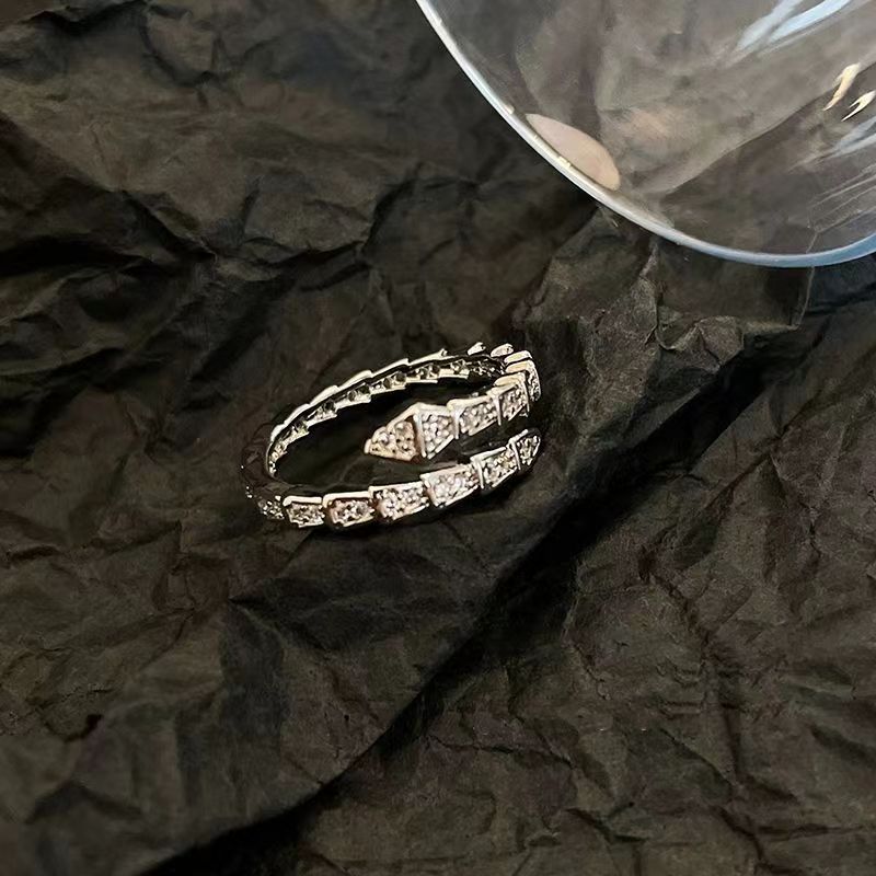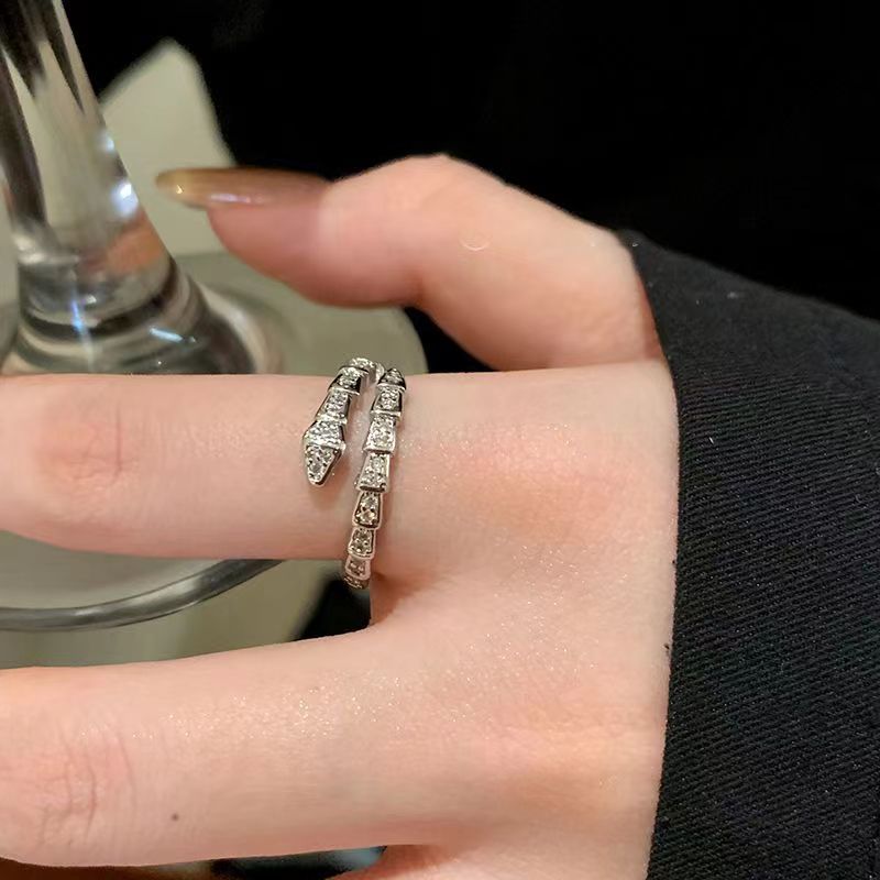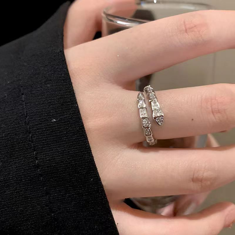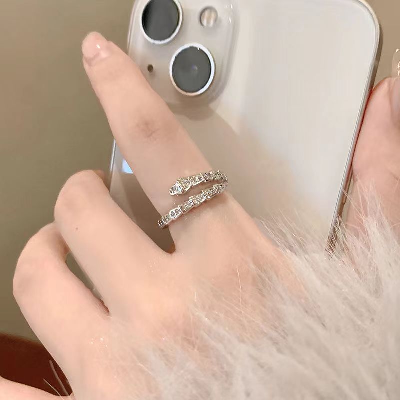 高级感闪钻灵蛇形戒指女小众设计开口食指戒冷淡风时尚个性指环潮