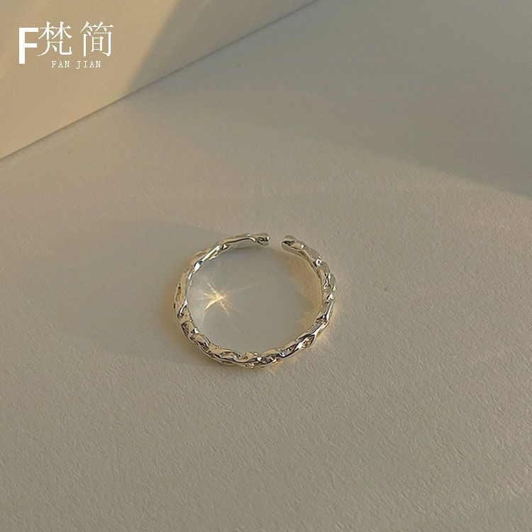 925纯银不规则锡纸戒指女简约小众食指戒ins褶皱糖纸素戒冷淡风