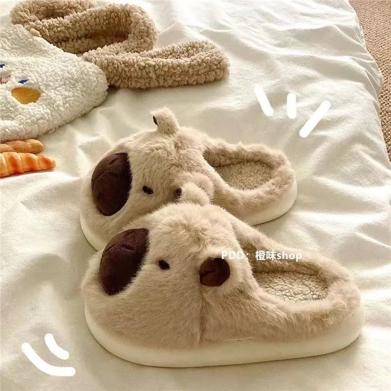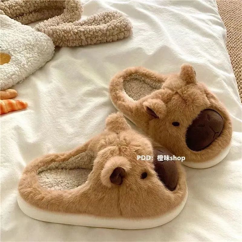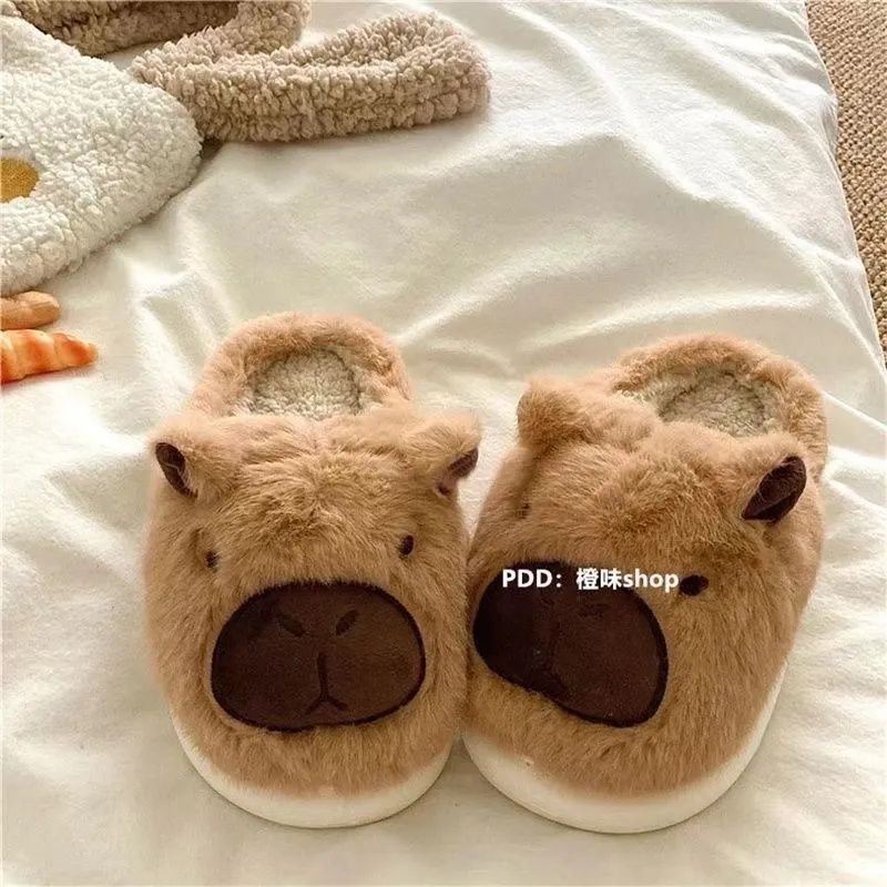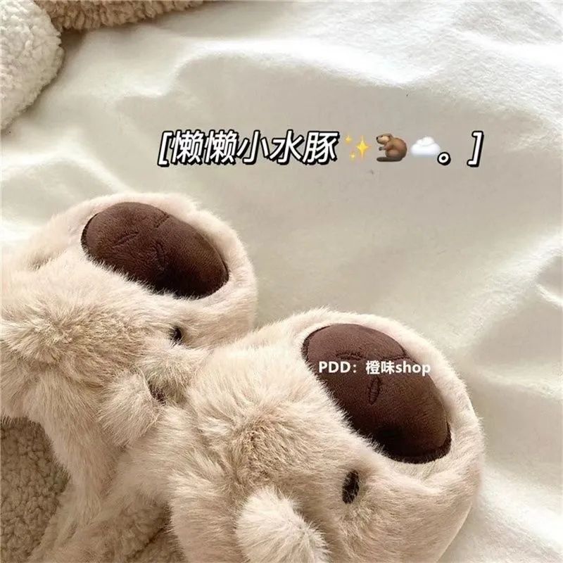 懒懒小水豚居家ins保暖毛茸茸卡皮巴拉可爱拖鞋毛毛冬季棉拖鞋
