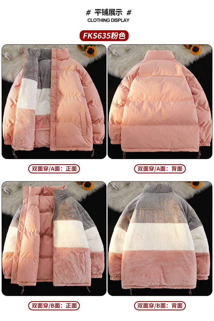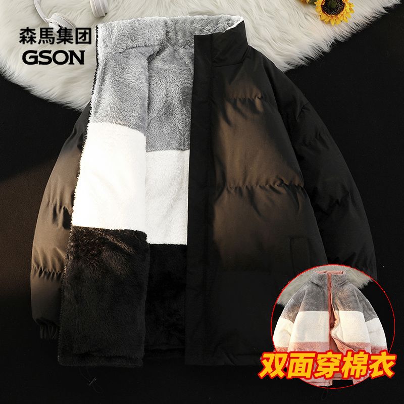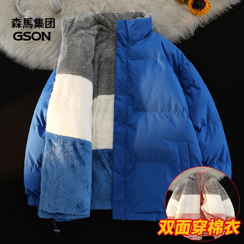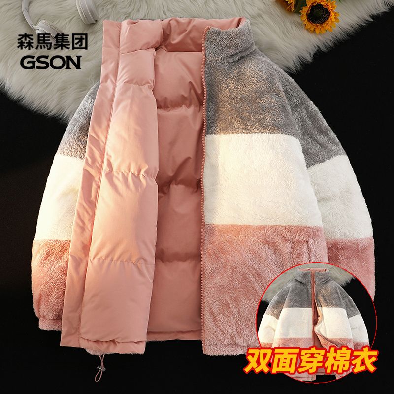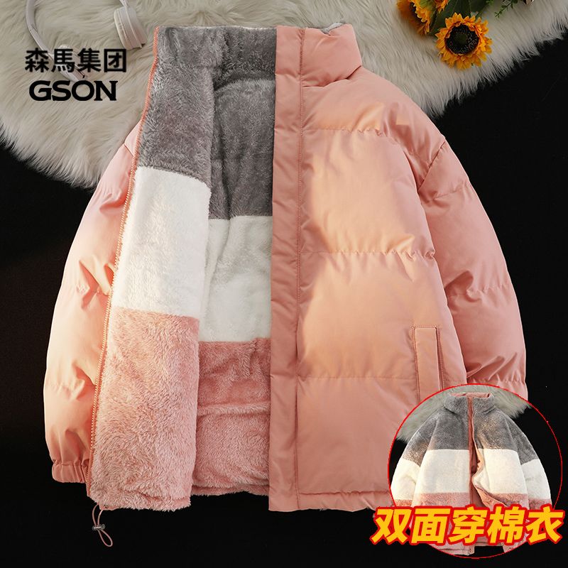 森马集团GSON冬季棉服男女加绒棉袄宽松羊羔绒情侣棉衣双面穿外套