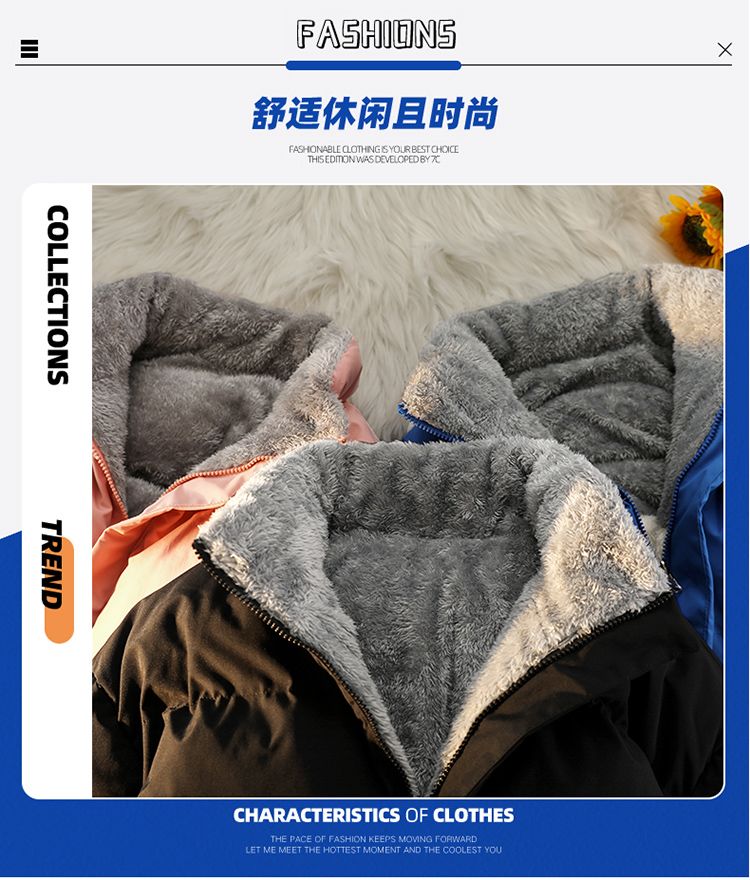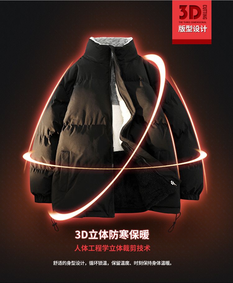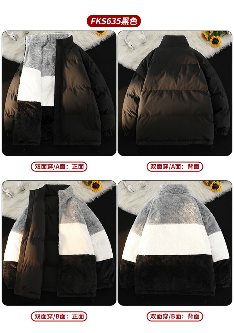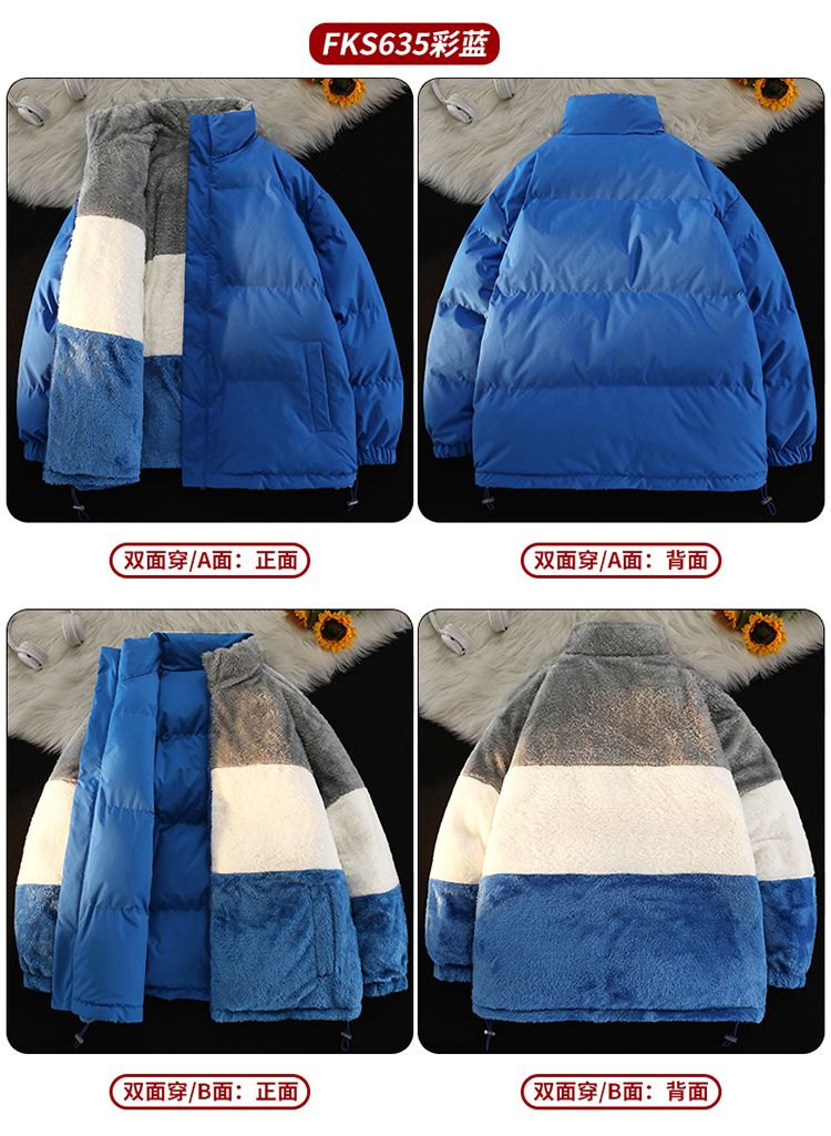 森马集团GSON冬季棉服男女加绒棉袄宽松羊羔绒情侣棉衣双面穿外套