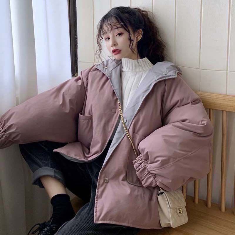 两面穿棉服女oversize港风宽松韩版棉袄冬季保暖加厚棉衣ins女潮