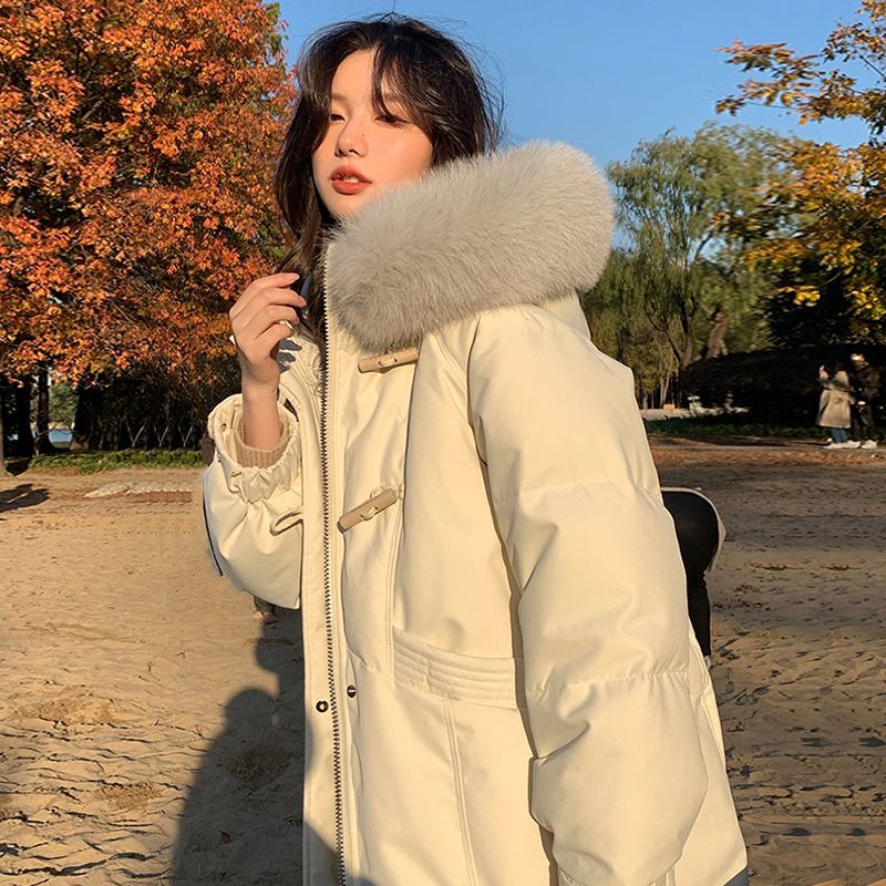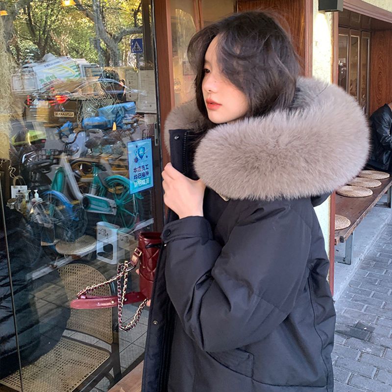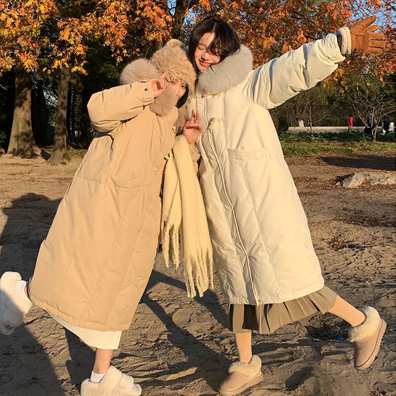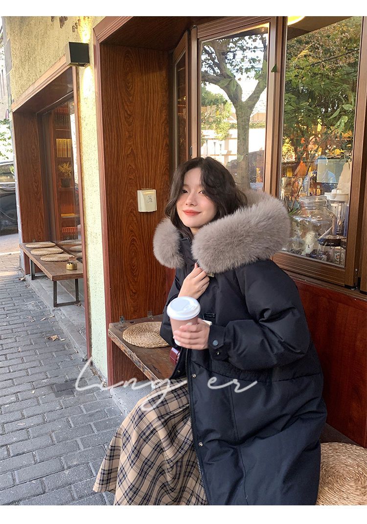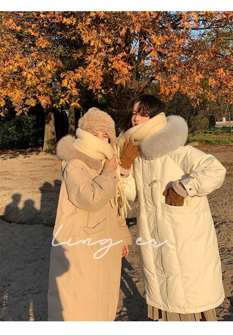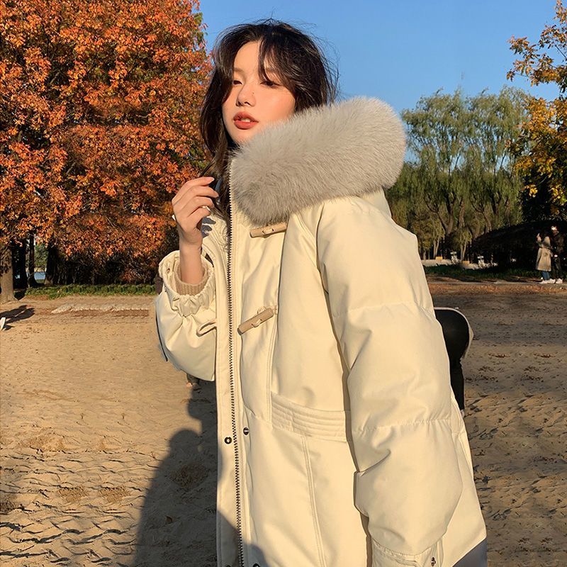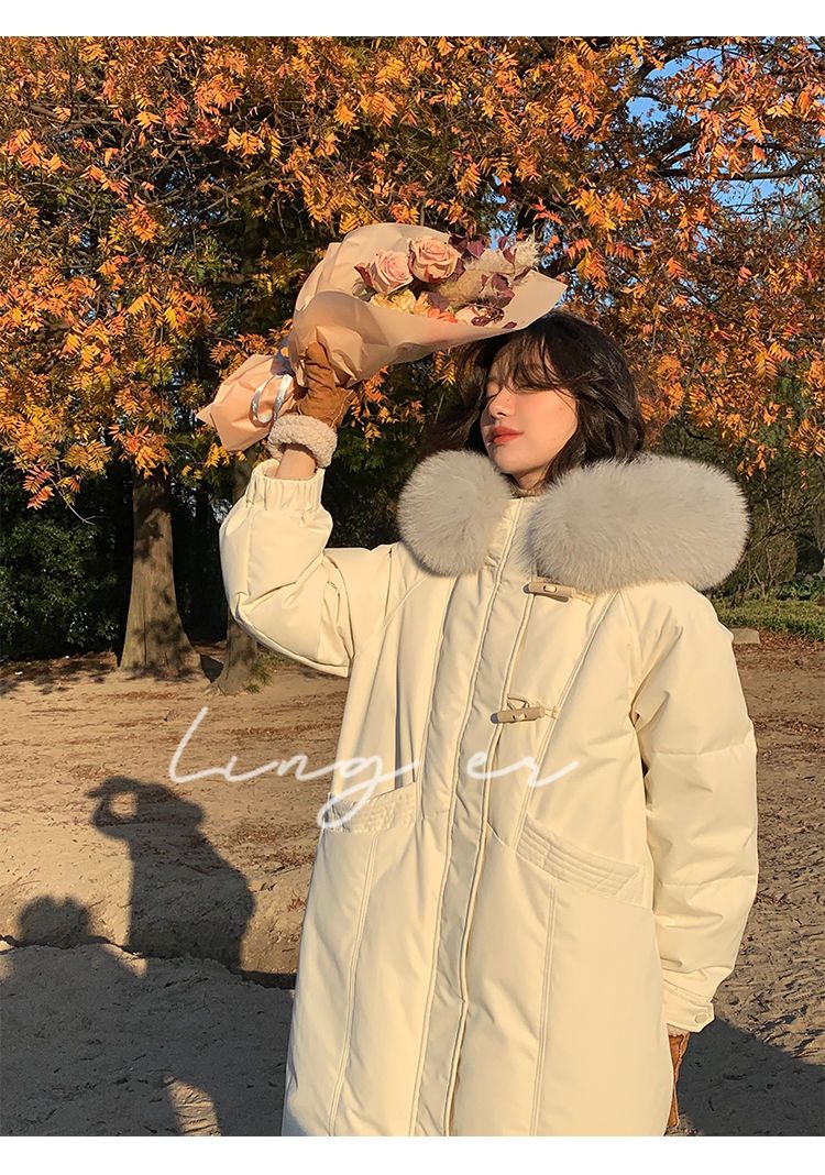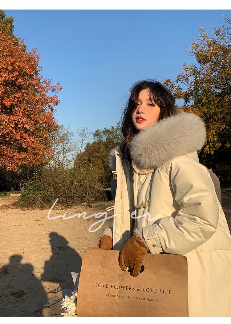 羽绒服女中长款2024冬季新款宽松显瘦时尚过膝毛领白鸭绒加厚外套