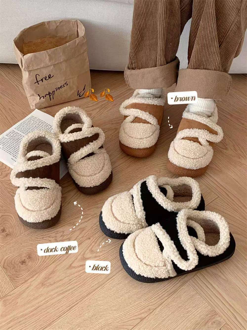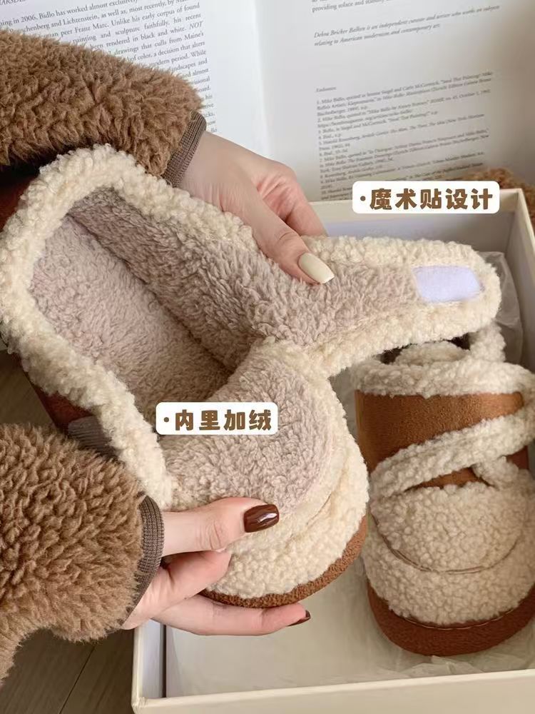 包跟棉鞋女冬天厚底踩死感网红韩版保暖家居雪地靴通勤外穿ins潮