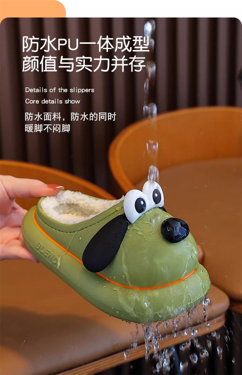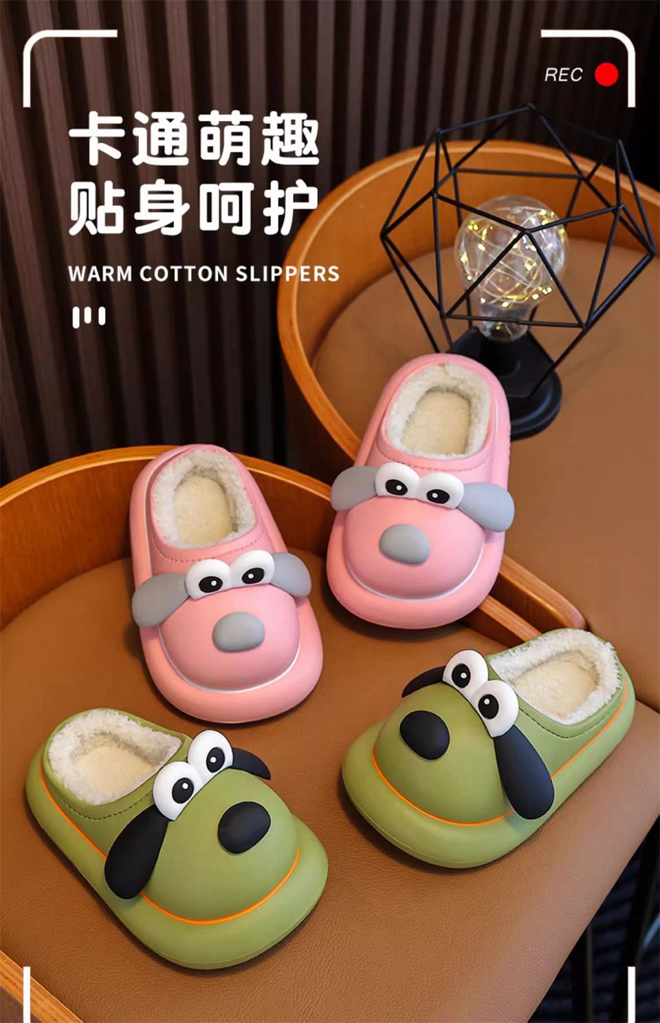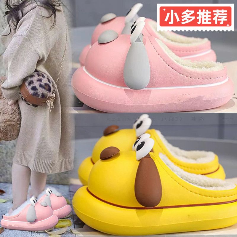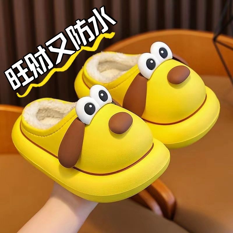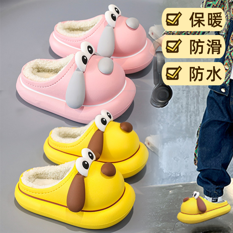 儿童棉拖鞋女童冬季加绒保暖防水防滑包跟室内外穿加厚居家毛绒鞋