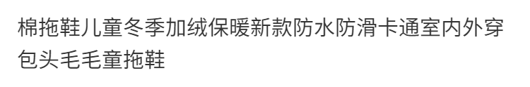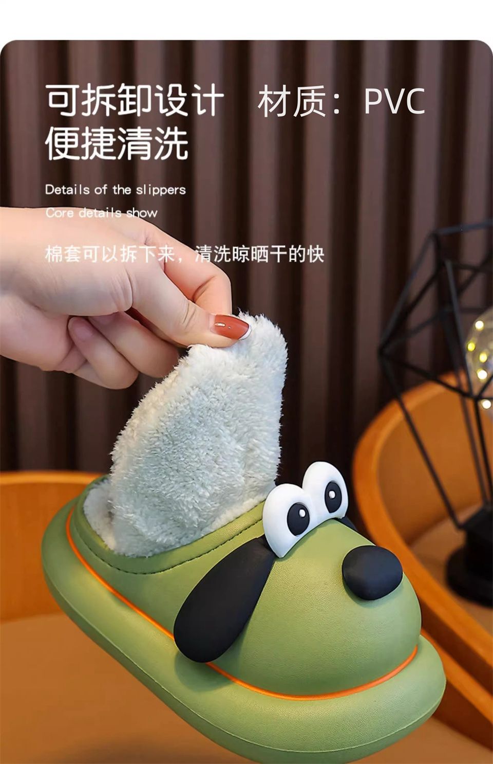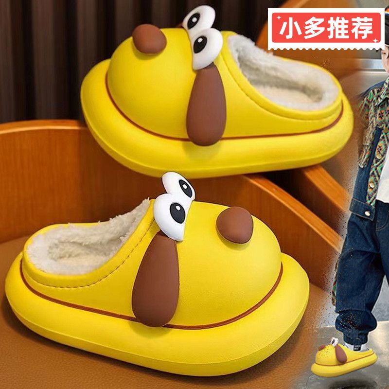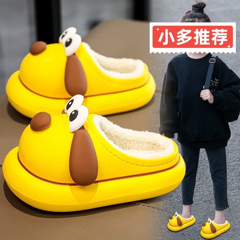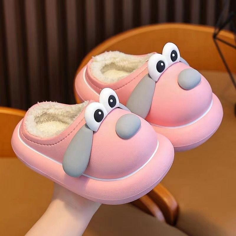 儿童棉拖鞋女童冬季加绒保暖防水防滑包跟室内外穿加厚居家毛绒鞋