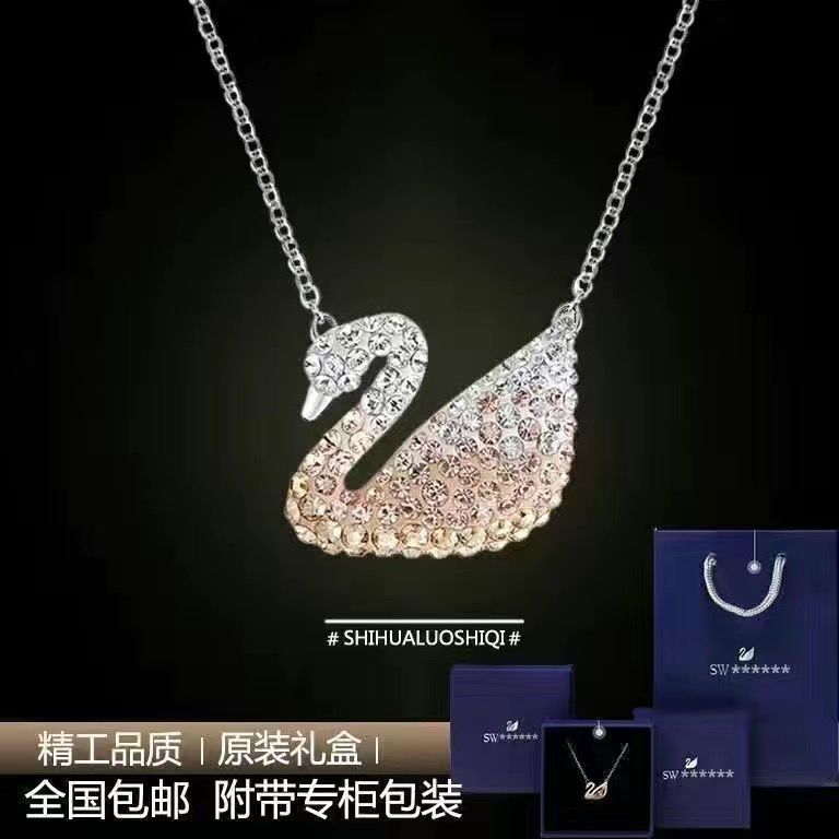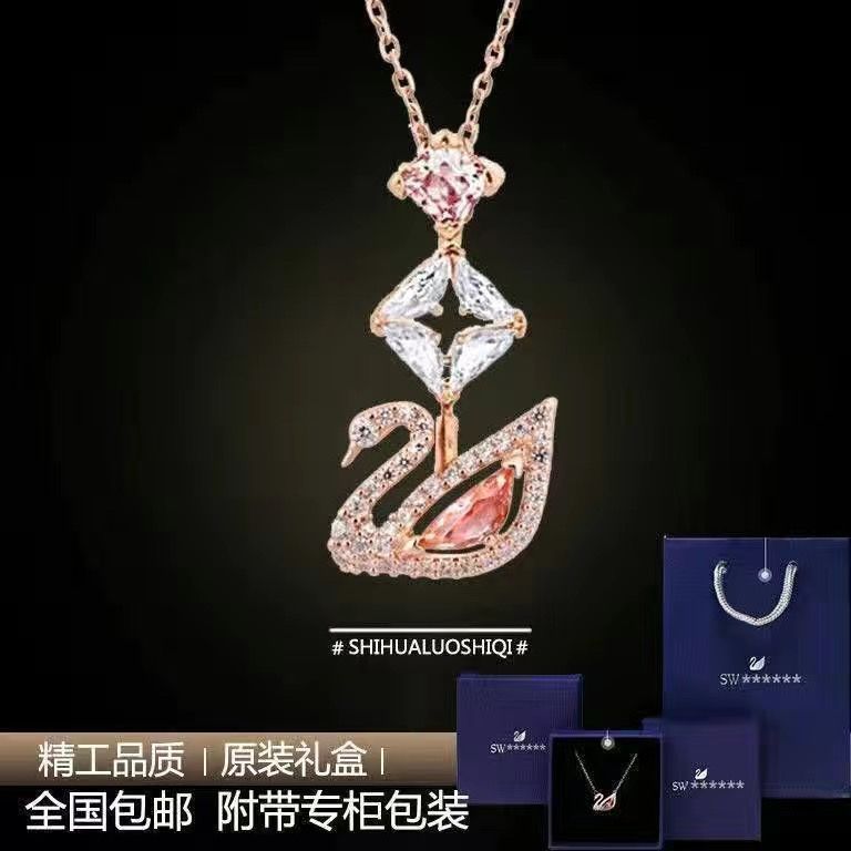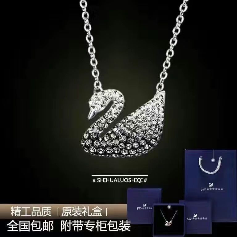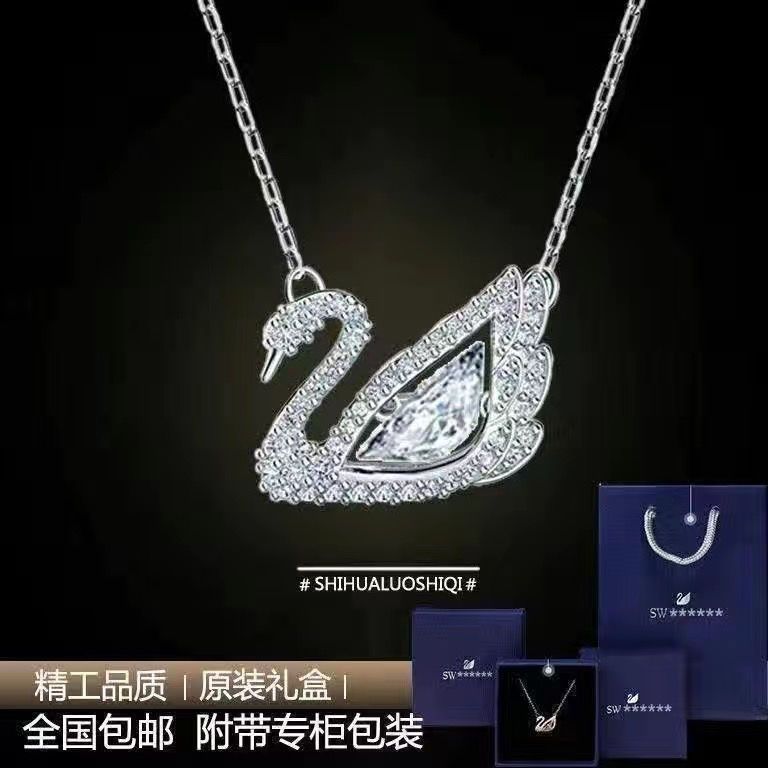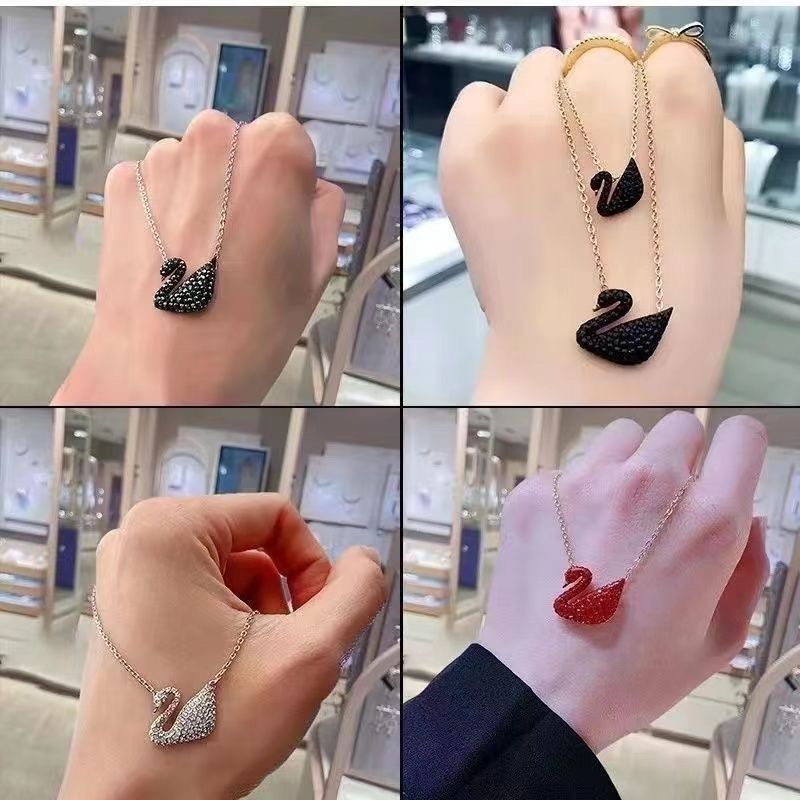 纯银S925黑天鹅项链女跳动的心锁骨链轻奢小众高级吊坠送女友礼物