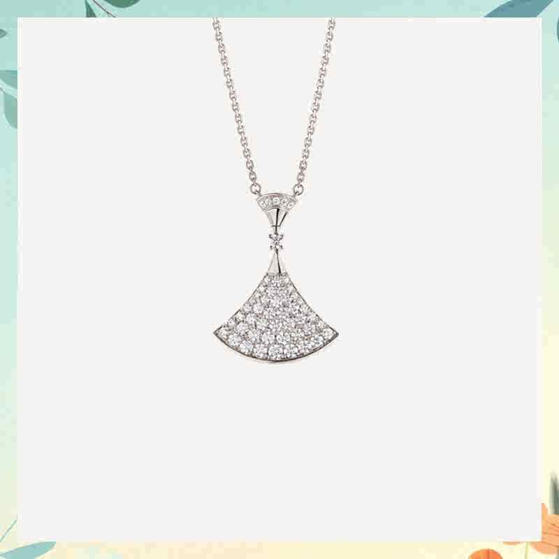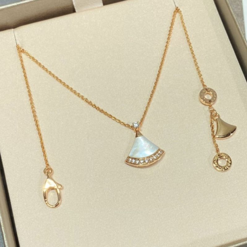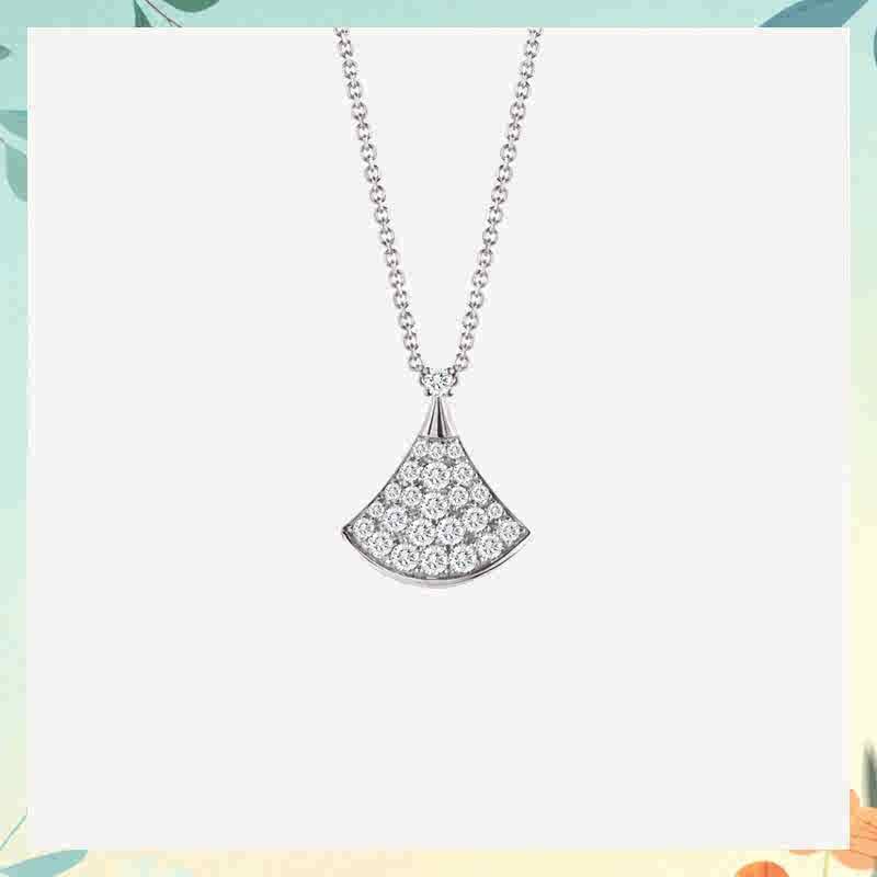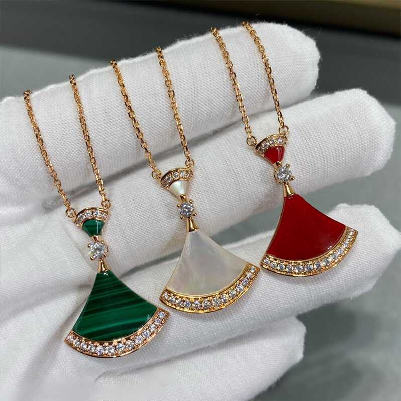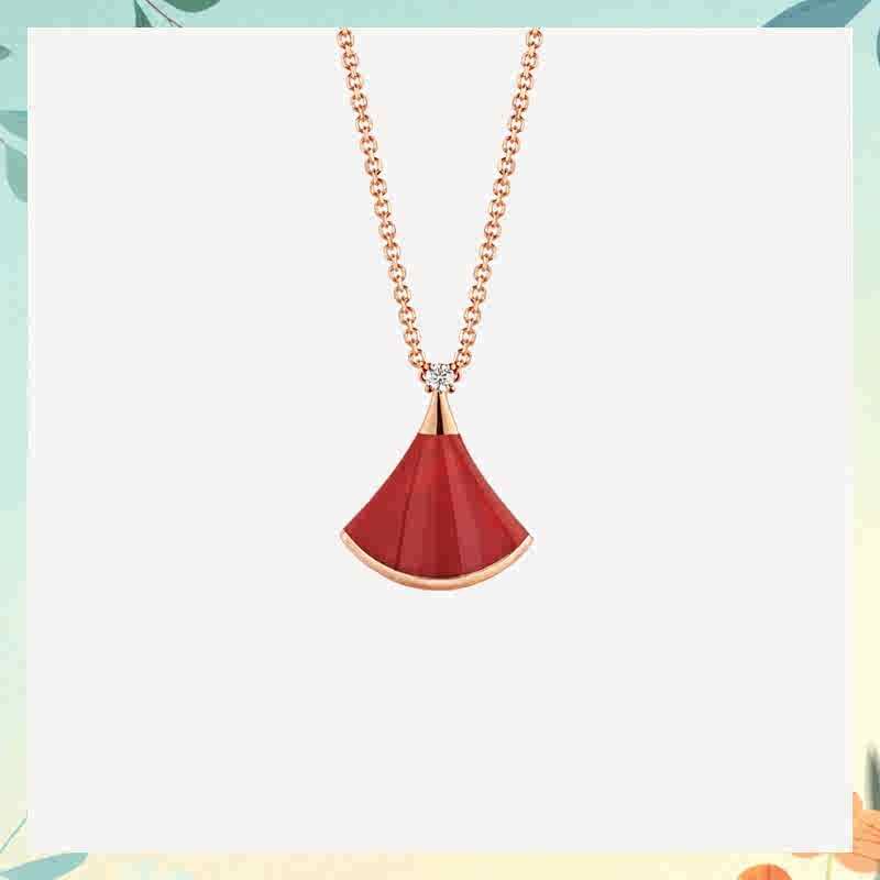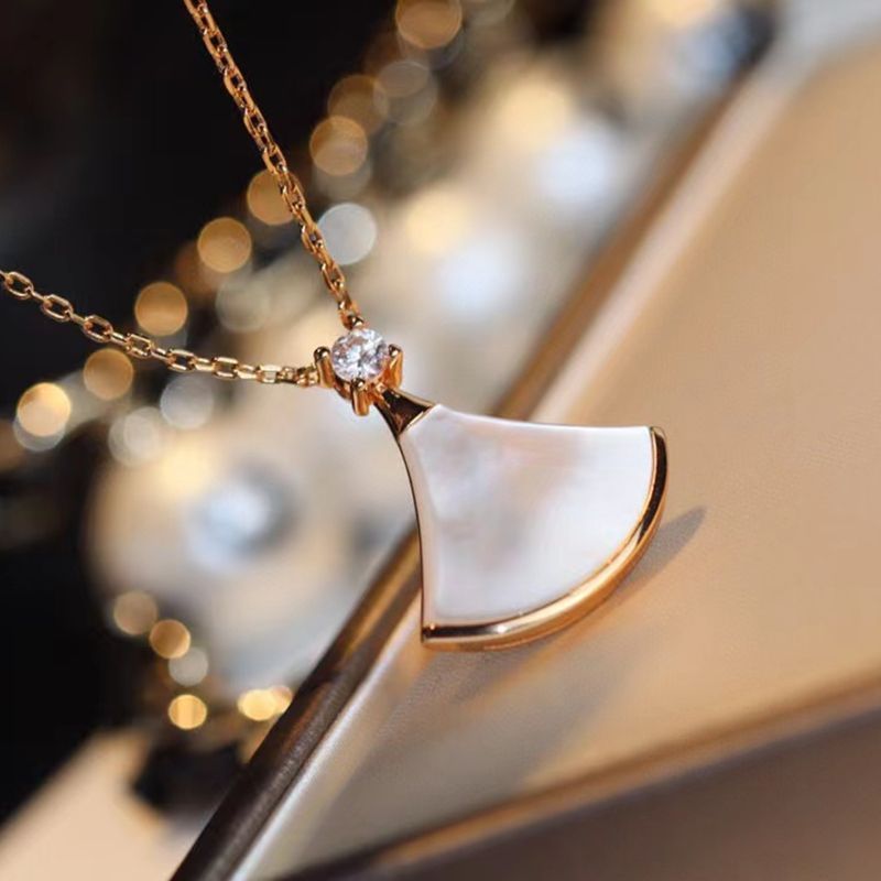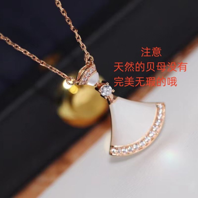高版高端扇形玫瑰贝母裙子项链女s925银贝壳扇子锁骨链送女友礼物