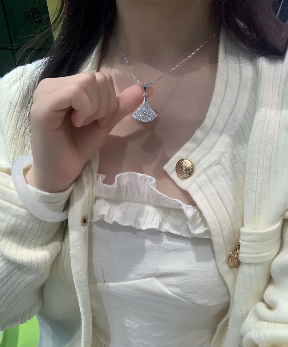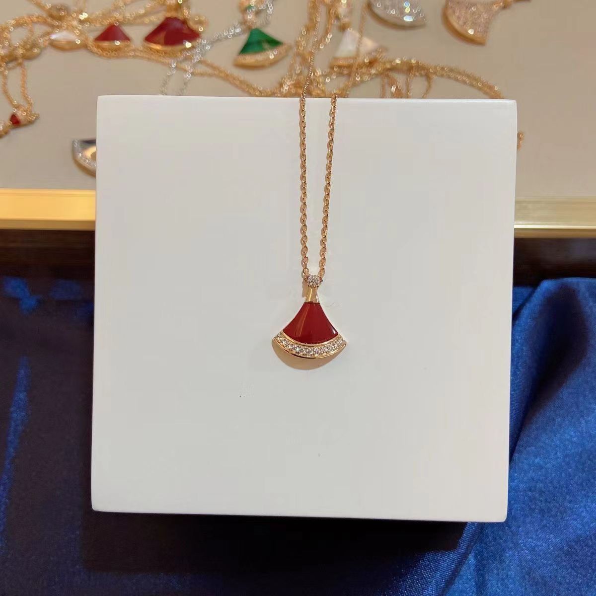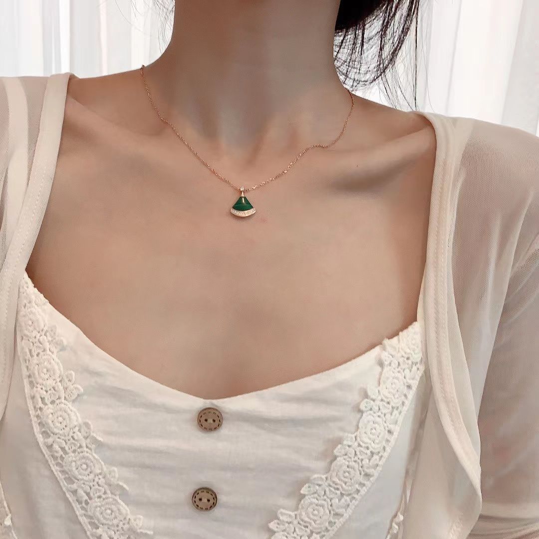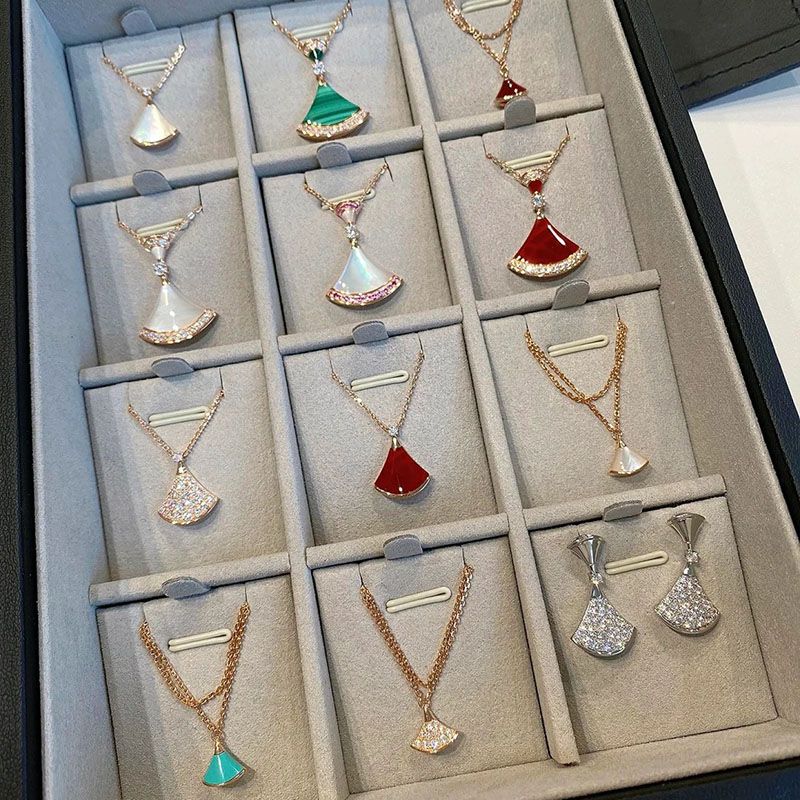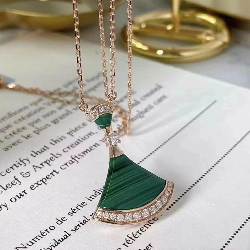 高版高端扇形玫瑰贝母裙子项链女s925银贝壳扇子锁骨链送女友礼物