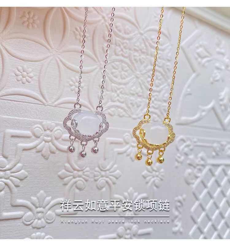 祥云如意平安锁项链女银锁ins不掉色轻奢小众闺蜜颈链