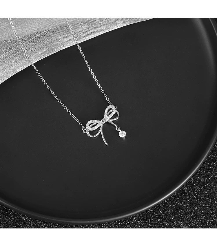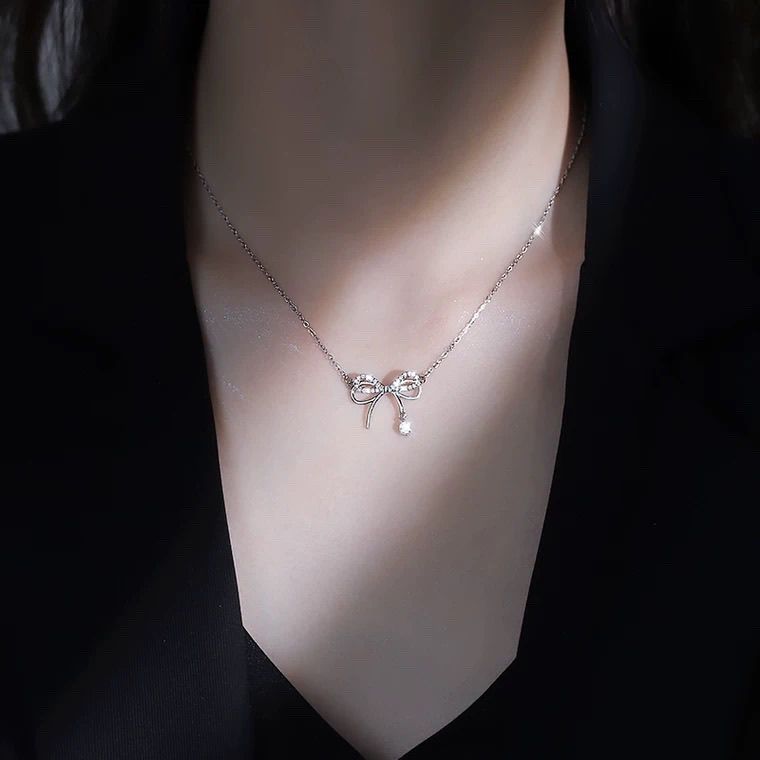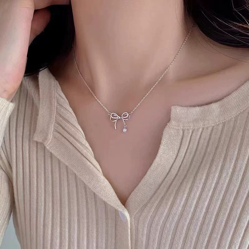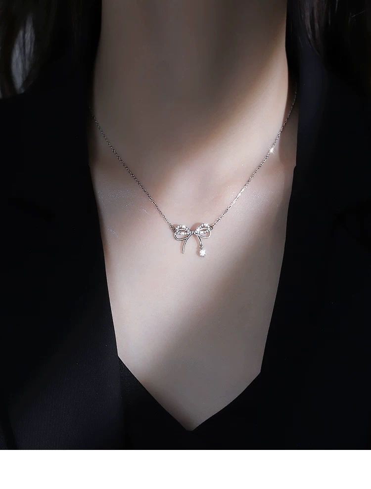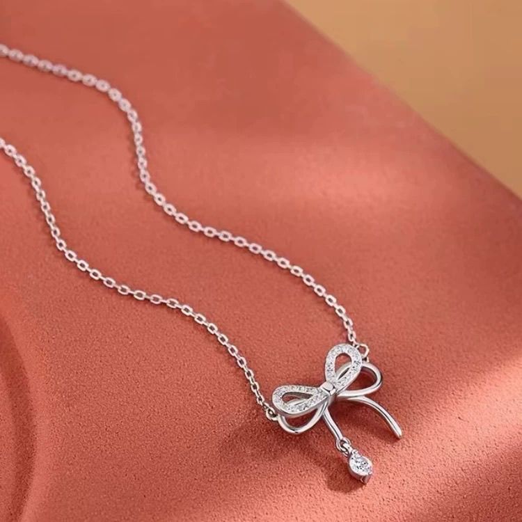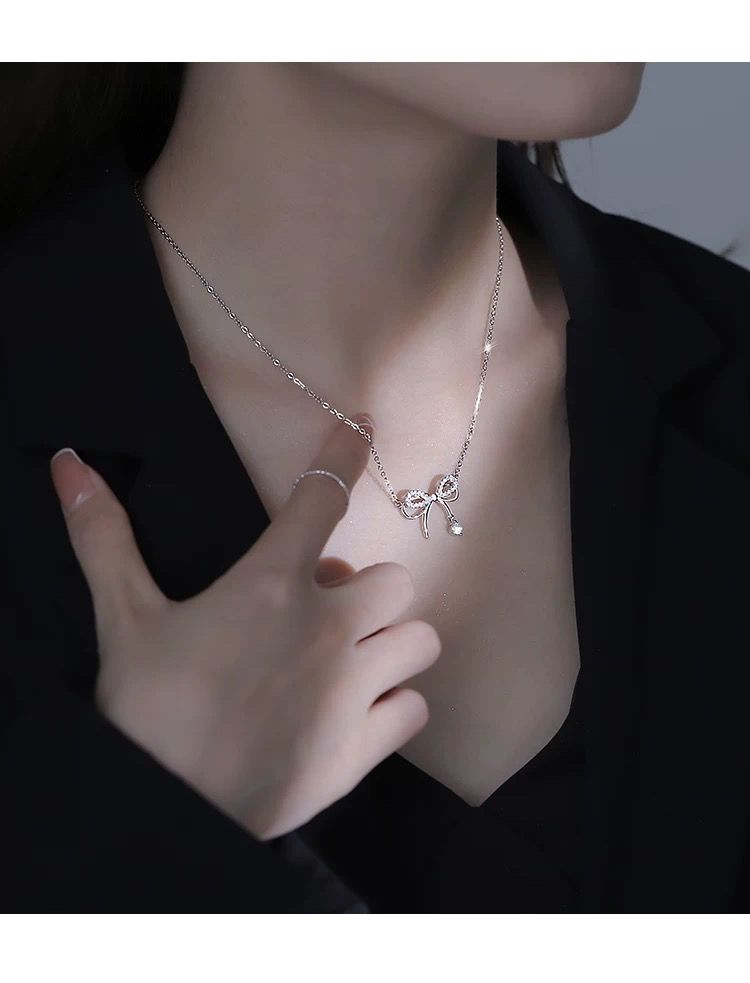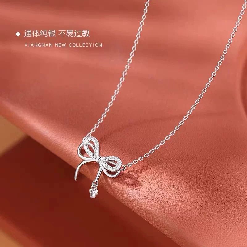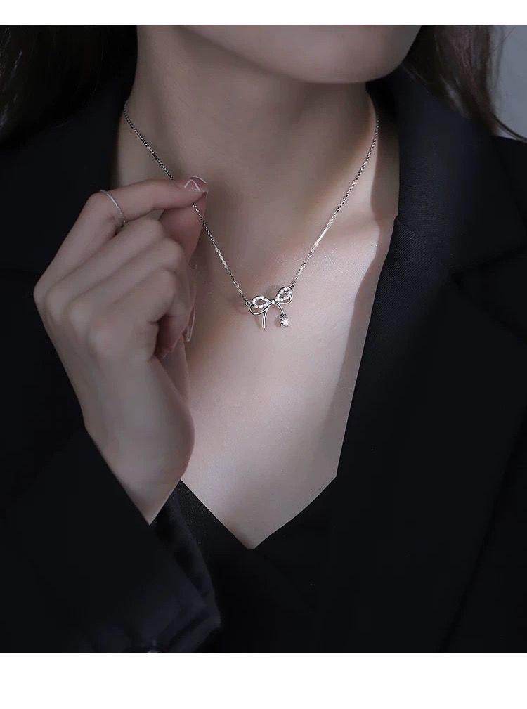 925纯银蝴蝶结项链女夏ins小众设计潮轻奢时尚锁骨链吊坠送女友