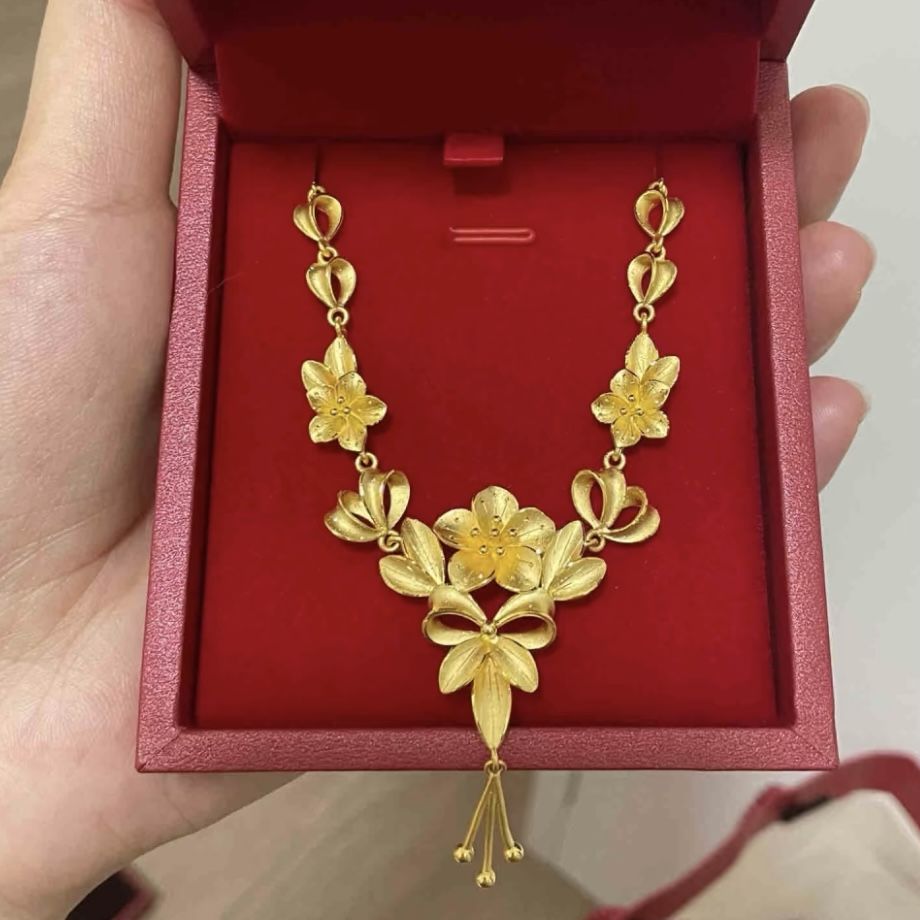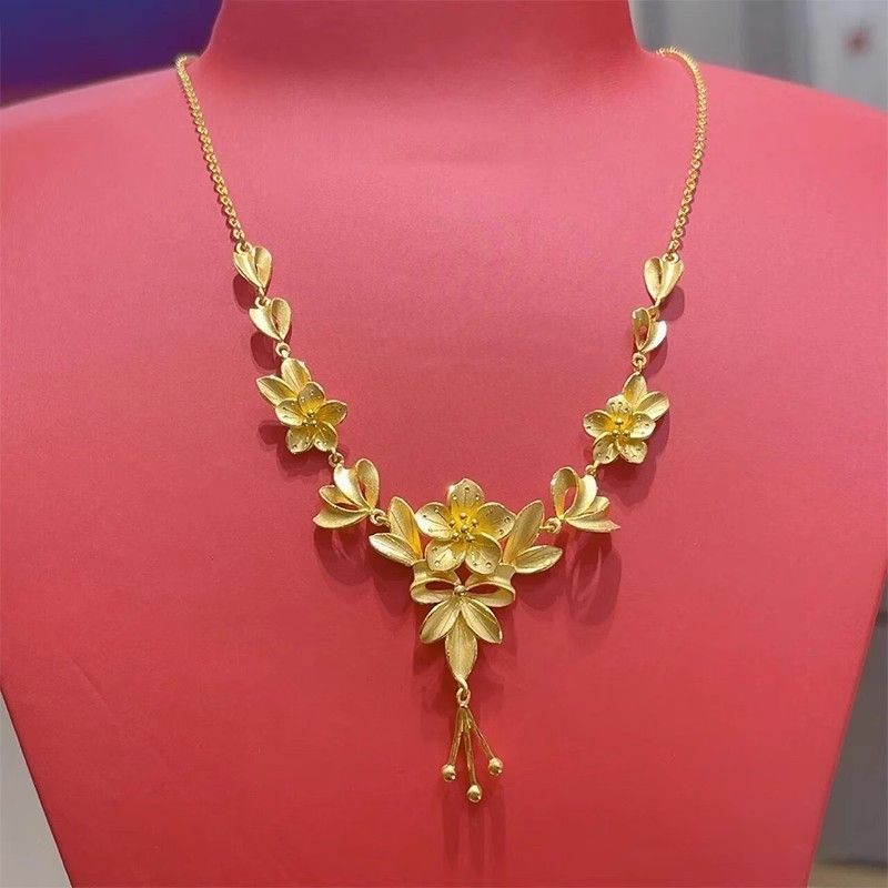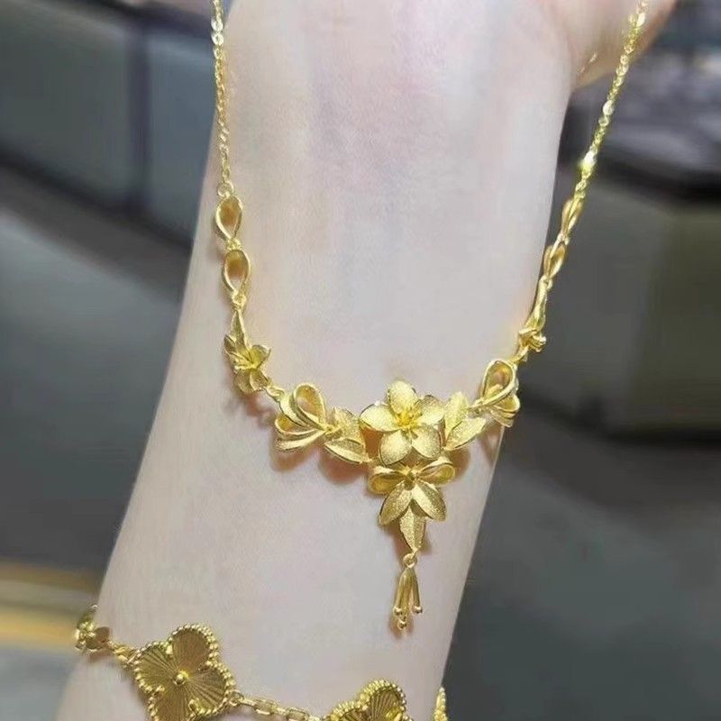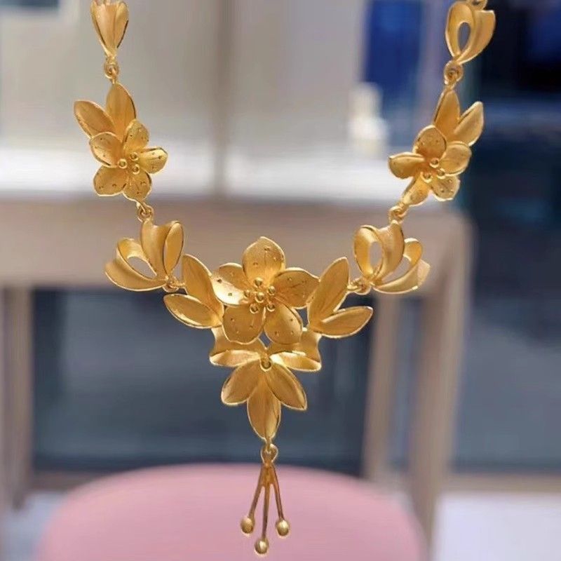 花月佳期繁花似锦婚嫁花朵高级三生花项链订婚结婚仿真金色项饰品