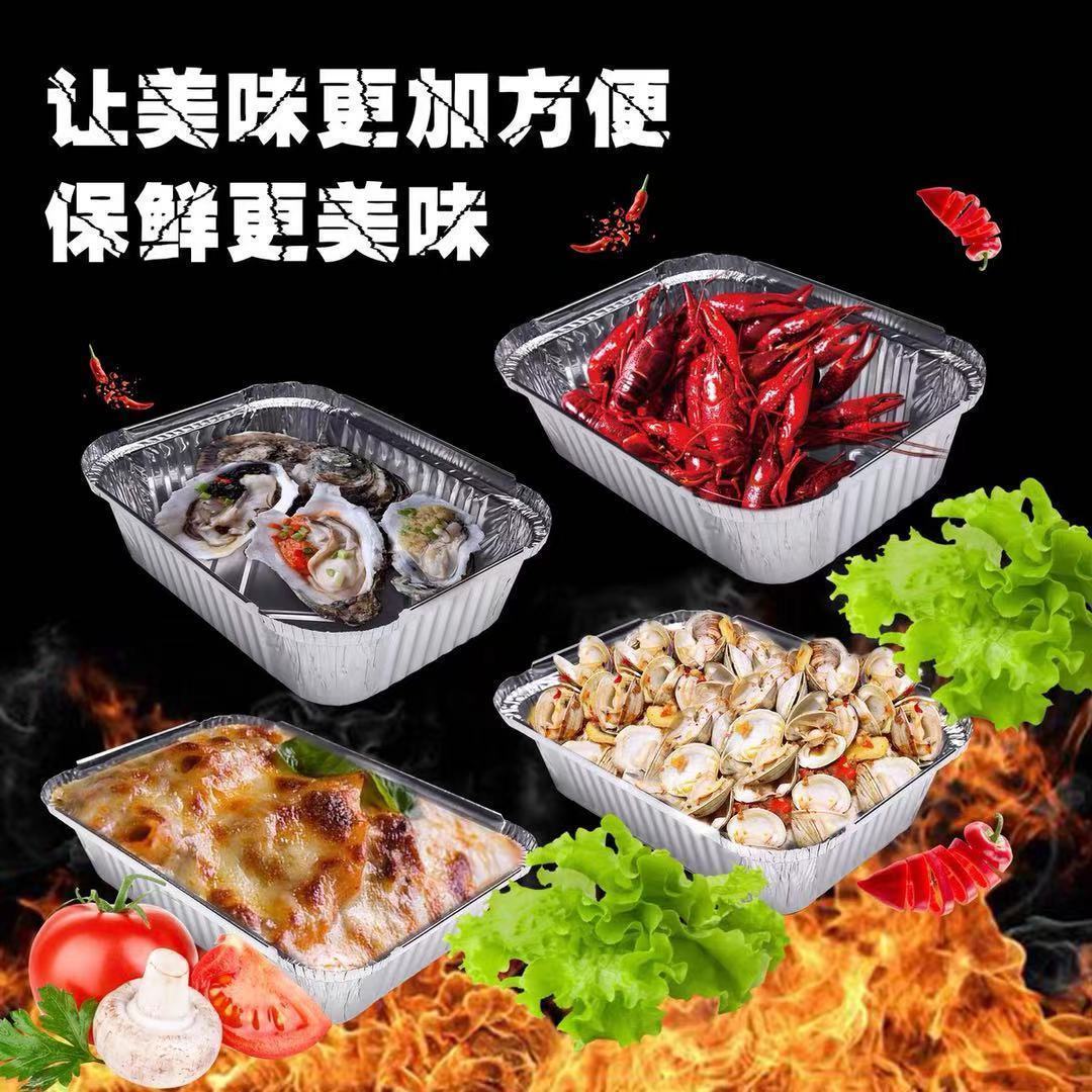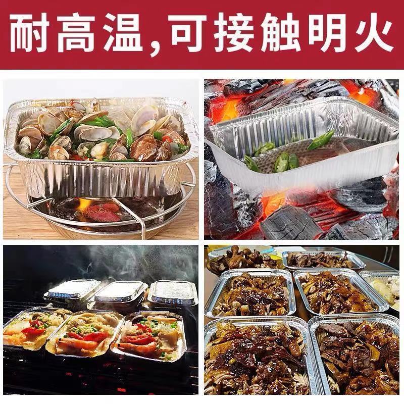 锡纸盒烧烤耐高温批发家用带盖长方形一次性明火加厚烤鱼空气炸锅