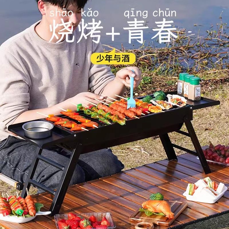 烧烤炉户外便携式家用木炭烤肉折叠加宽烤炉露营烧烤架子工具全套