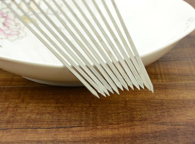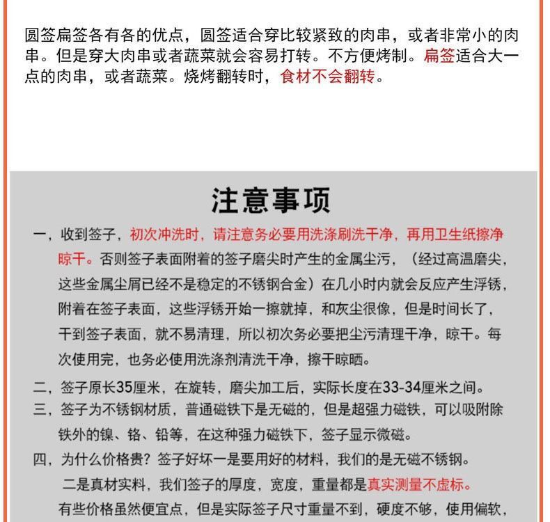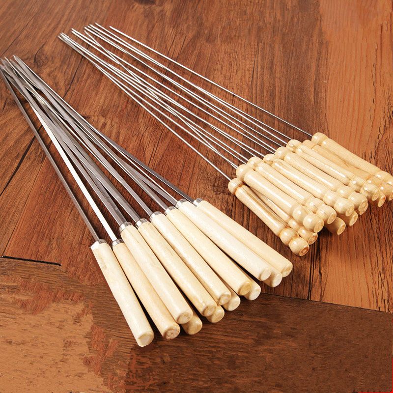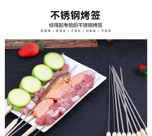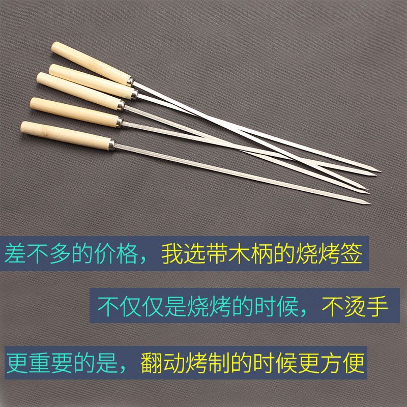 不锈钢烧烤签子木柄烧烤针圆签扁签羊肉串烤肉签子烧烤配件工具