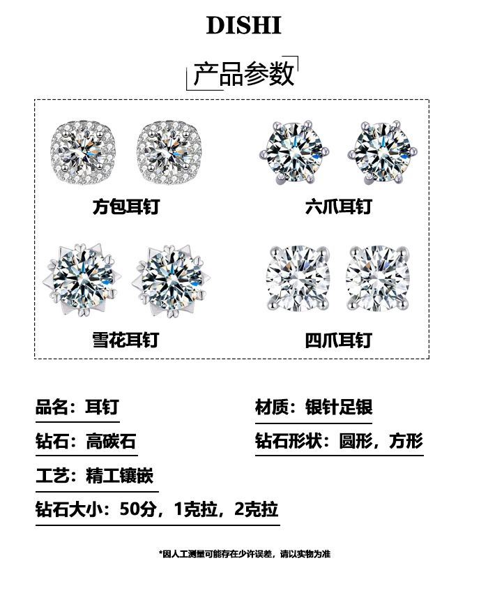 | 1 karat pairs of six-claw ear studs(六爪耳钉一克拉一对) | USD $1.92 | 99999 piece available |