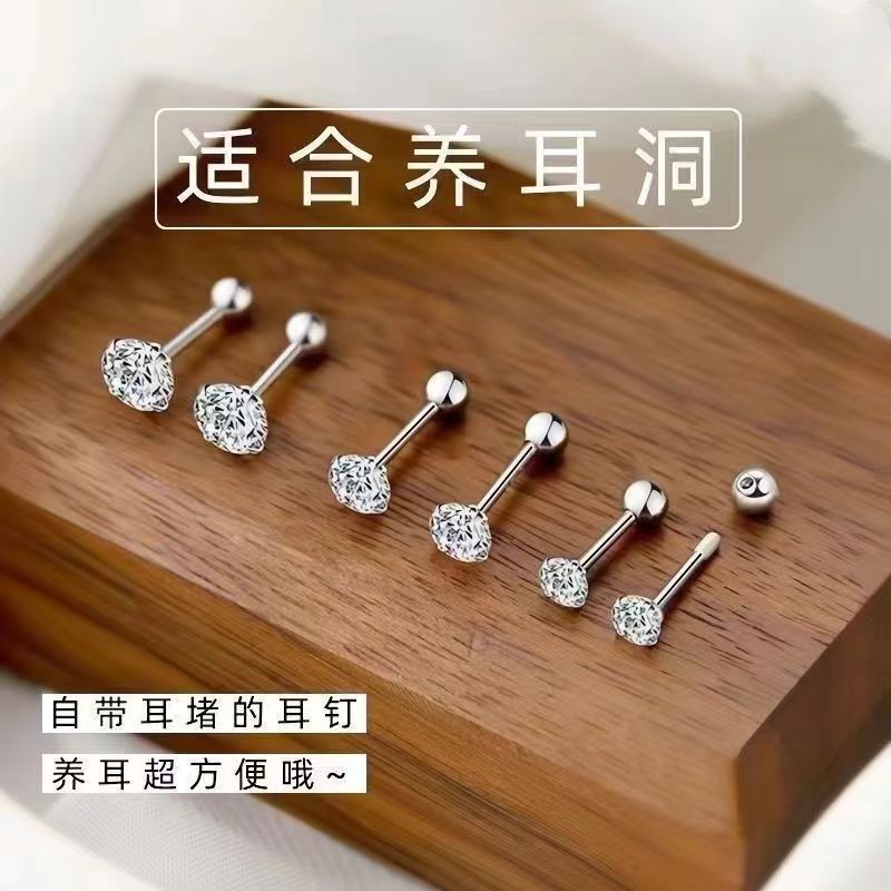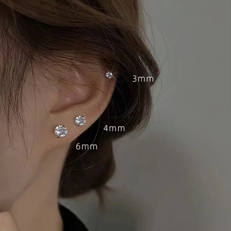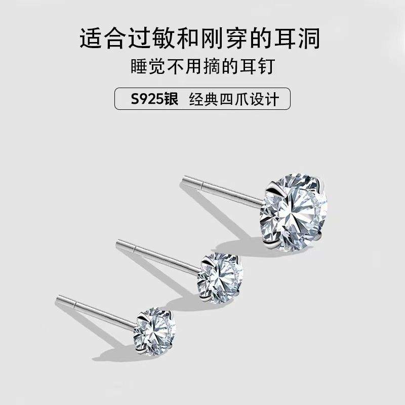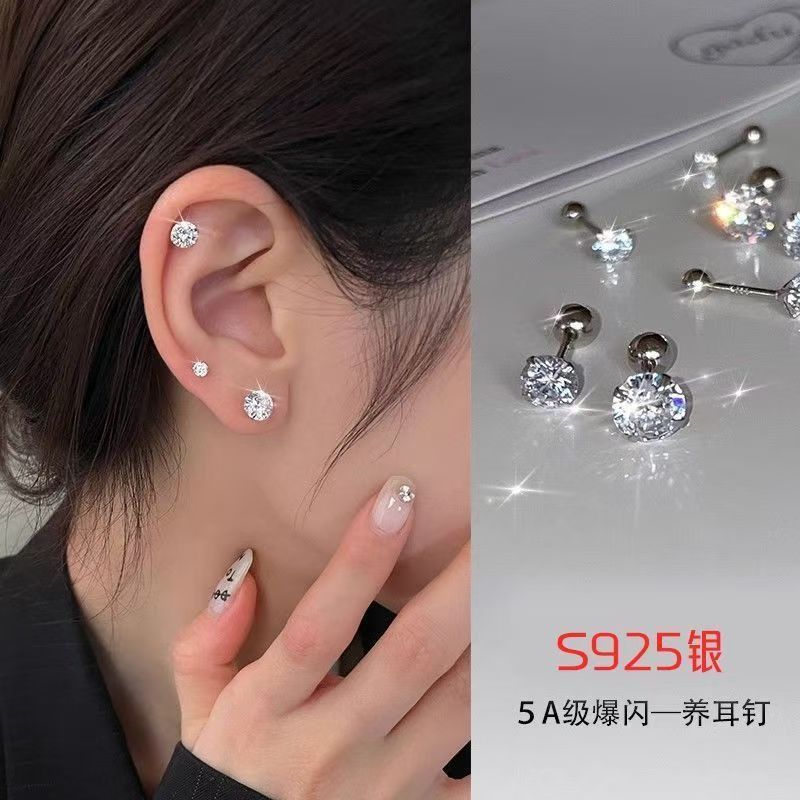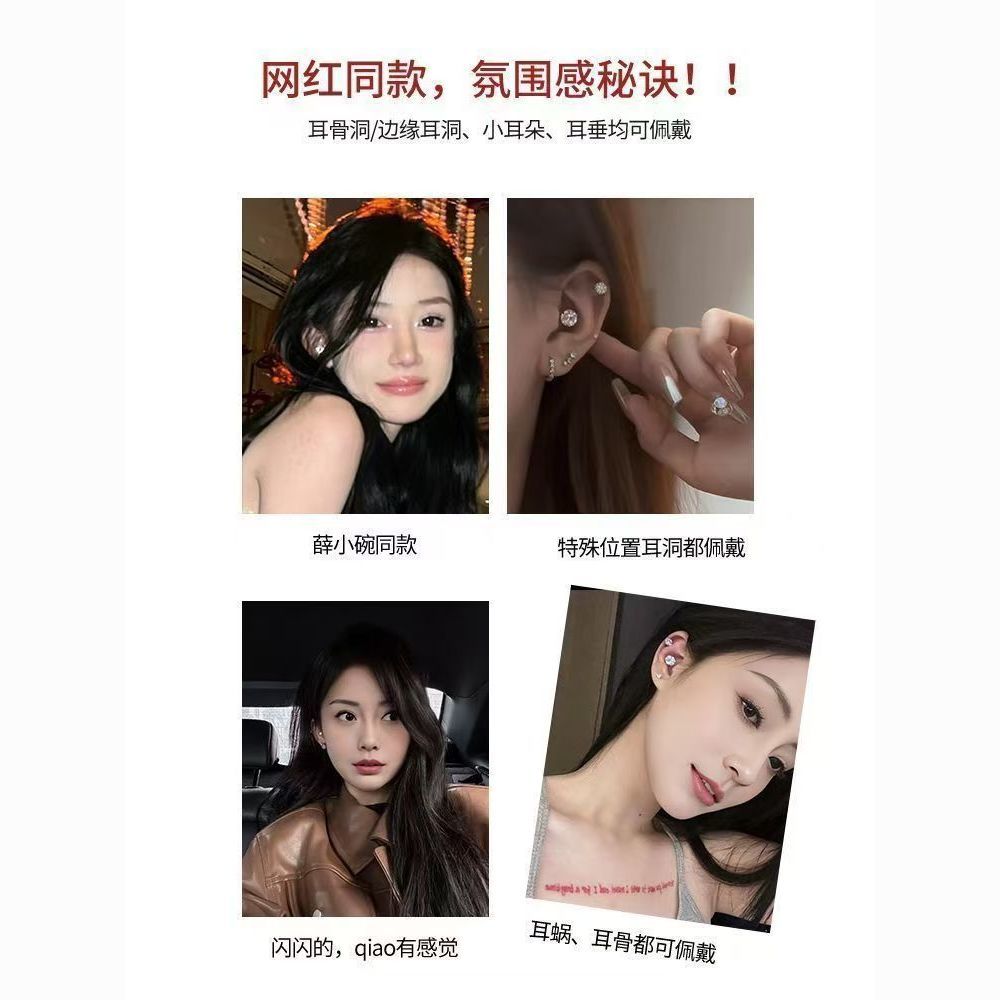 锆石超闪纯银耳洞耳环耳钉睡觉免摘耳骨耳饰精致高级水钻耳蜗简约