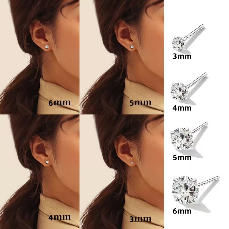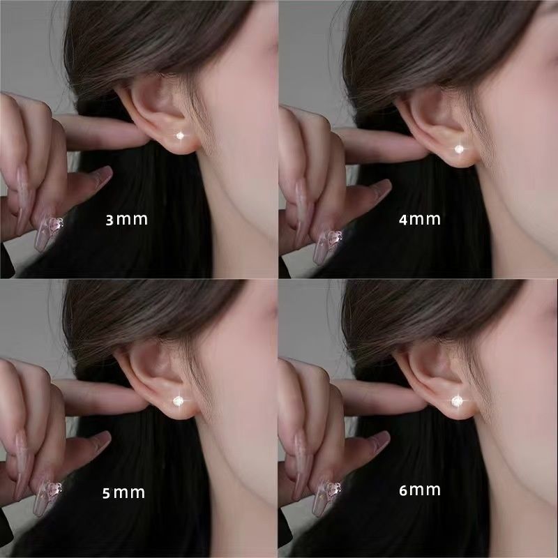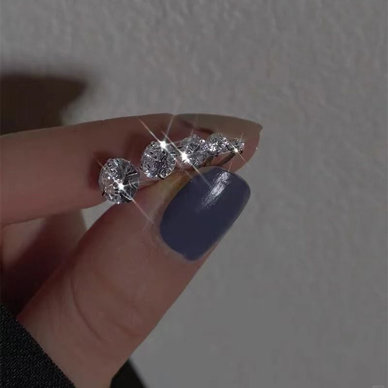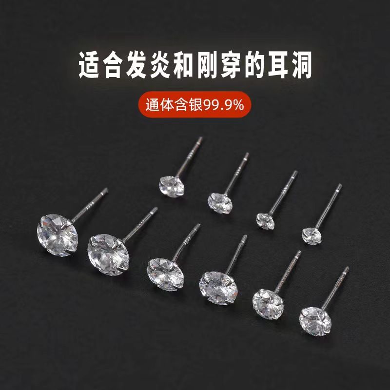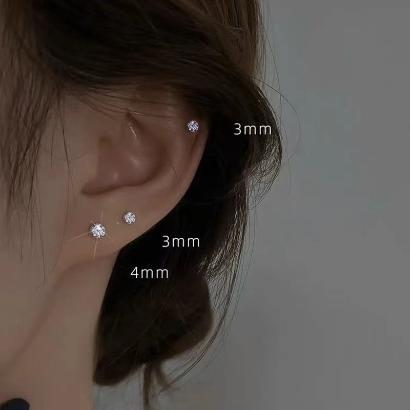 锆石超闪纯银耳洞耳环耳钉睡觉免摘耳骨耳饰精致高级水钻耳蜗简约