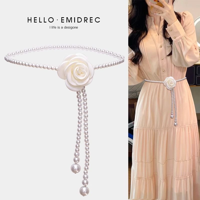 | white three-dimensional camellia pearl waist chain (120cm)(白色立体山茶花珍珠腰链(120厘米)) | USD $1.67 | 99999 piece available |