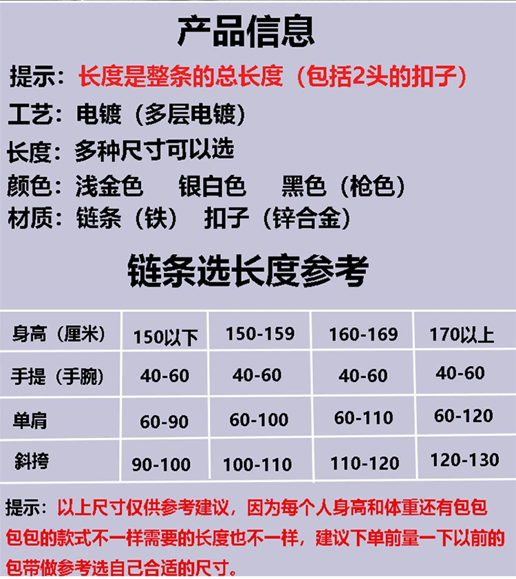 金属链条斜挎单肩手提手腕可拆卸包包配件一字扣链条可拆卸卫衣单