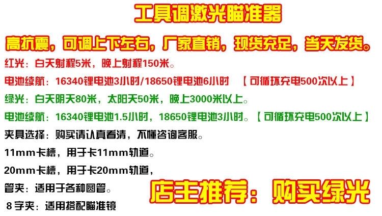 | 长红激光+电池2+充电器+8字夹 | USD $12.8 | 99999 piece available |