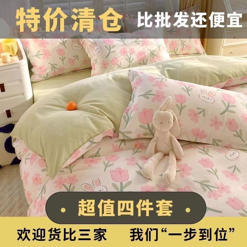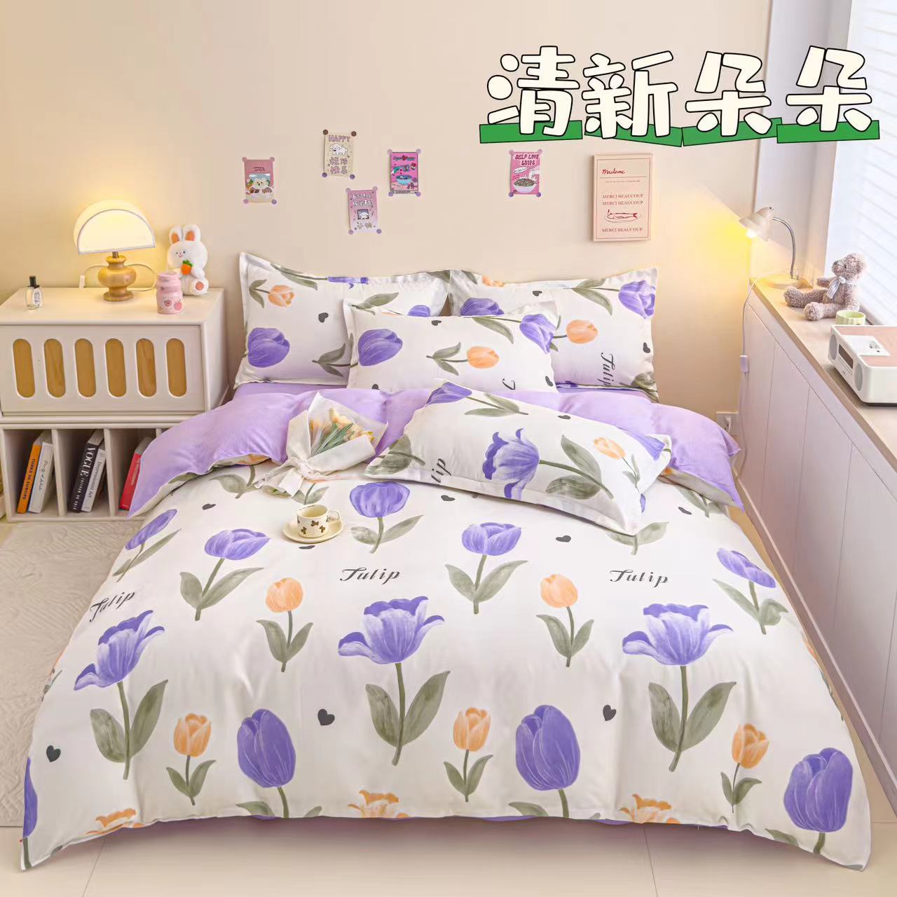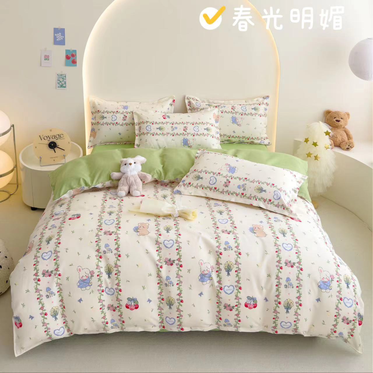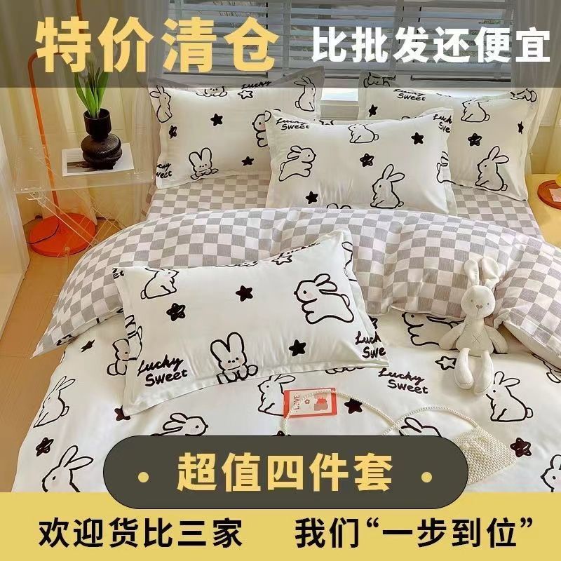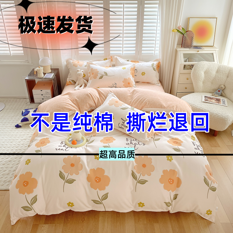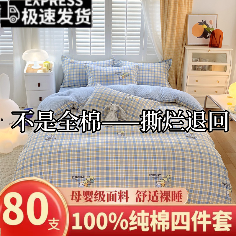 100%纯全套棉四件套A类被套四季三件套学生宿舍单人整套床上用品