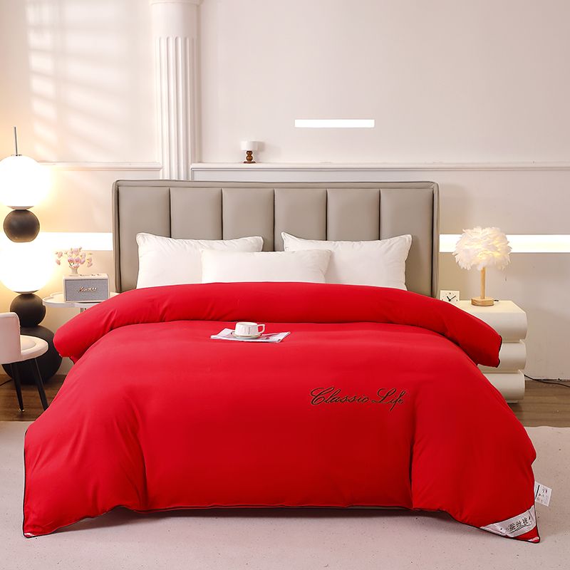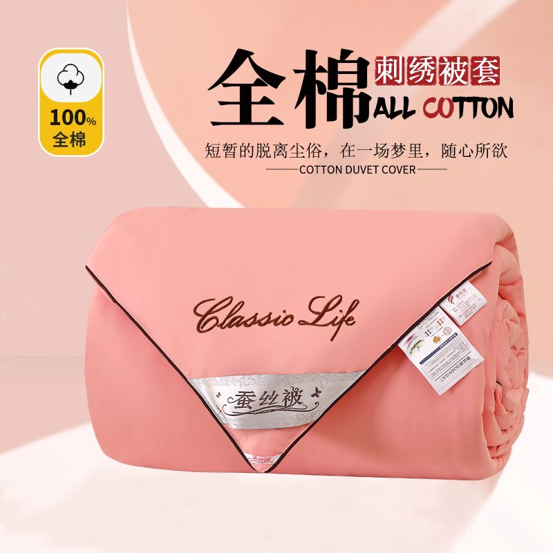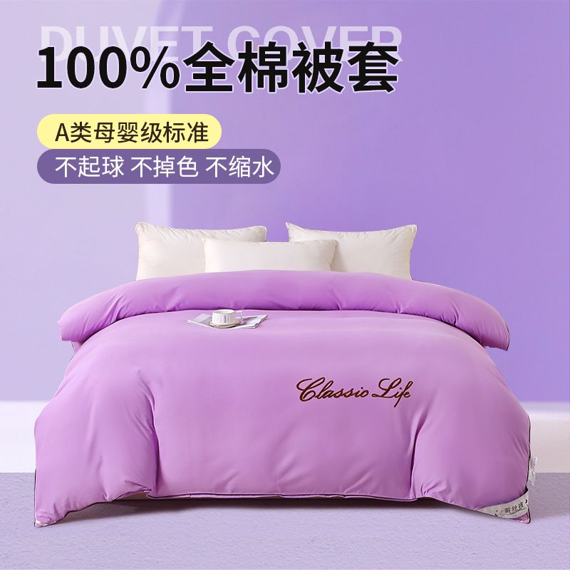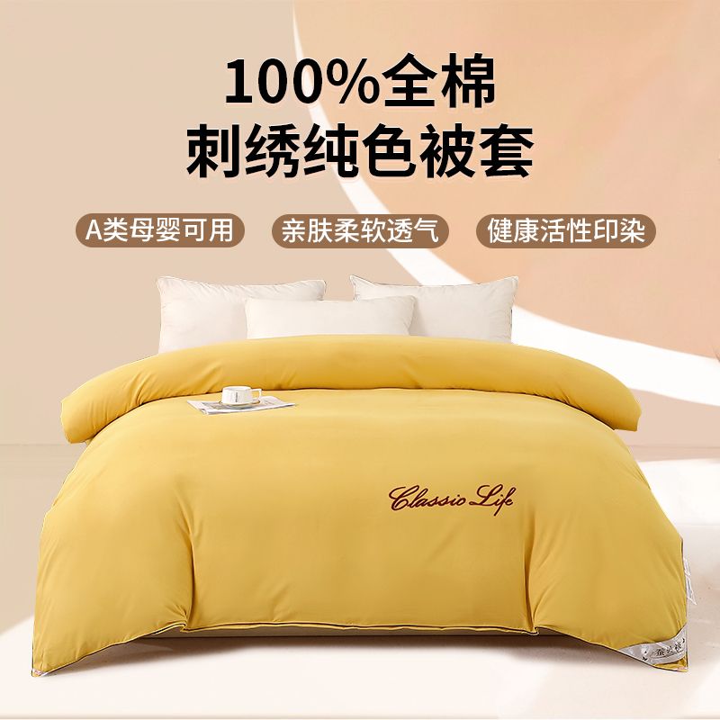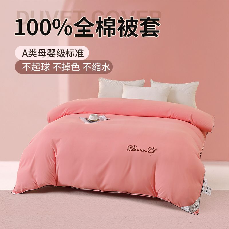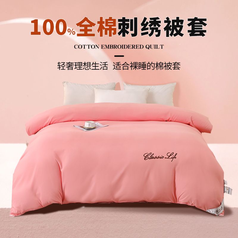 全棉被套100%纯棉被罩单双人宿舍ins风加厚保暖套子简约刺绣被壳