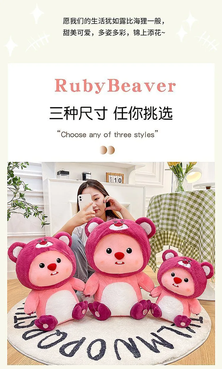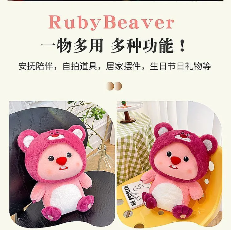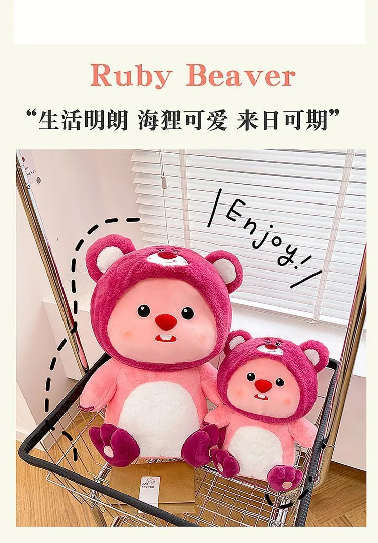 抖音同款草莓looyp海狸露比毛绒玩具可爱公仔玩偶送男女生日礼物