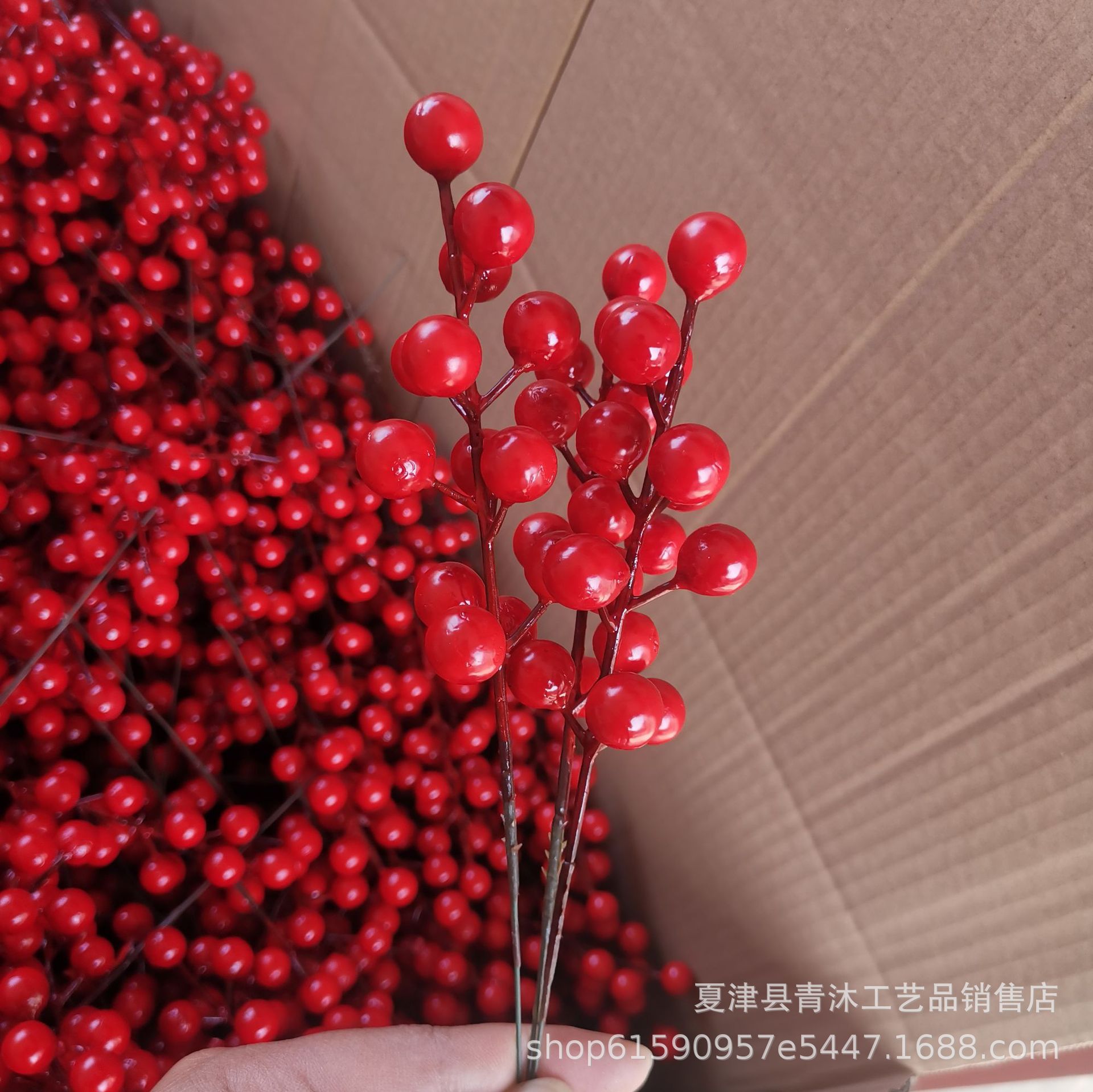 厂价批发12头红果仿真花冬青果发财果仿真花新年福桶配件12头红果