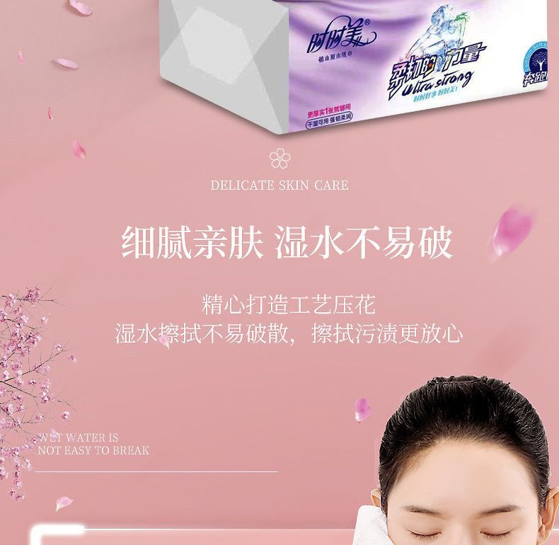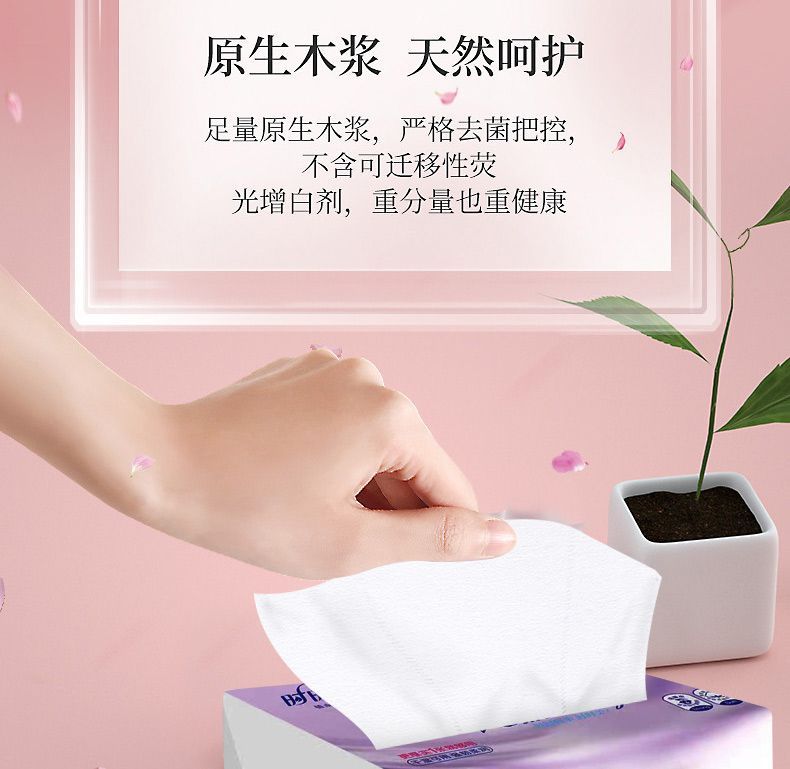 【时时美】加厚加大5层抽纸四边压花餐巾纸家用纸母婴可湿水抽纸
