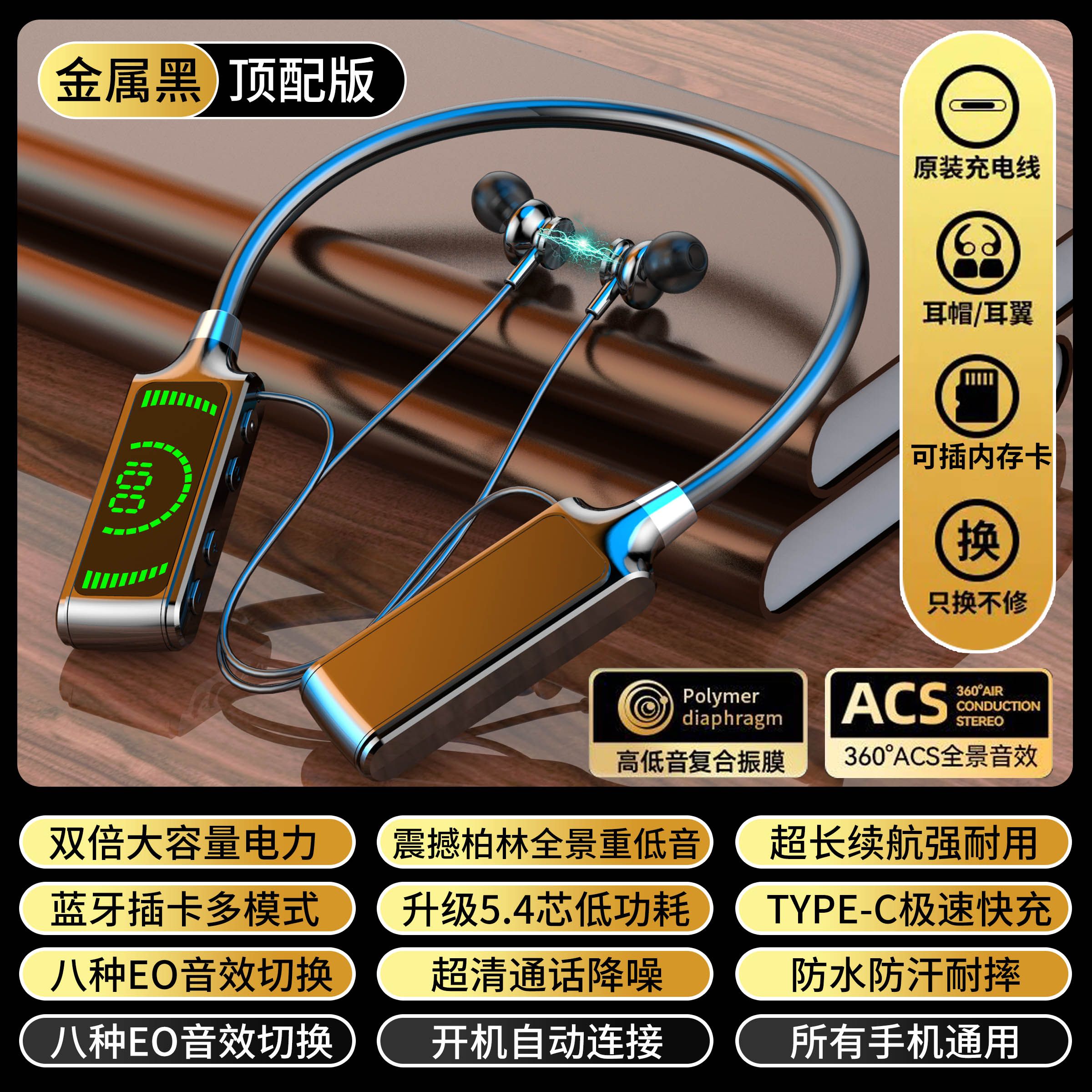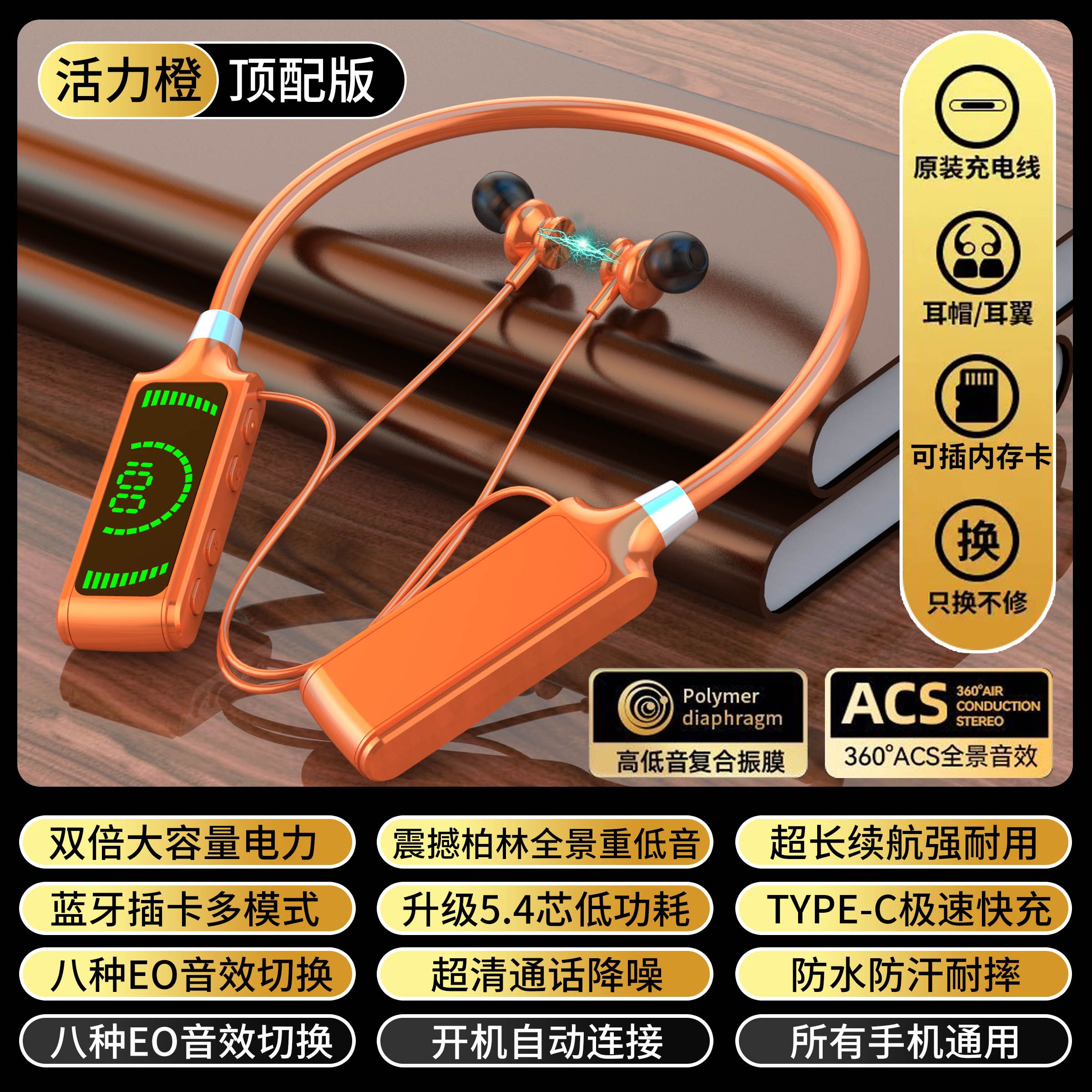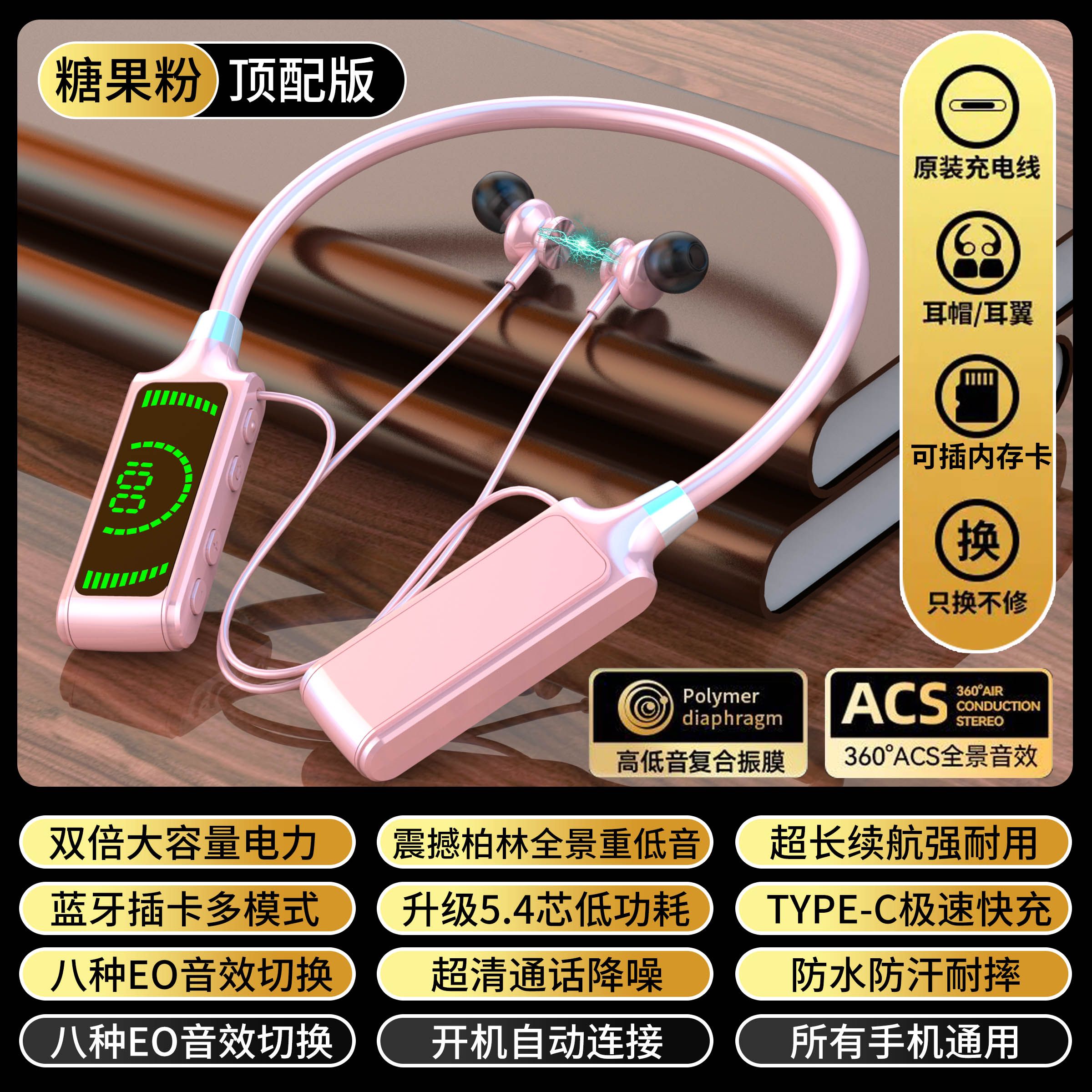 24新款蓝牙耳机无线脖挂式超长续航运动插卡通用小米OPPO华为苹果