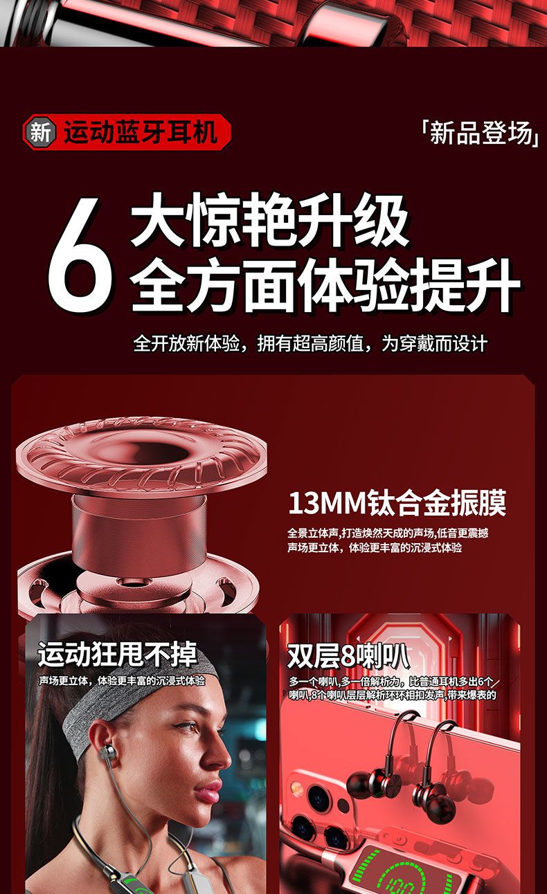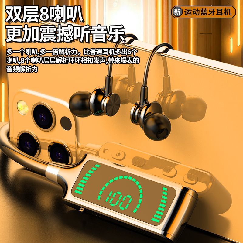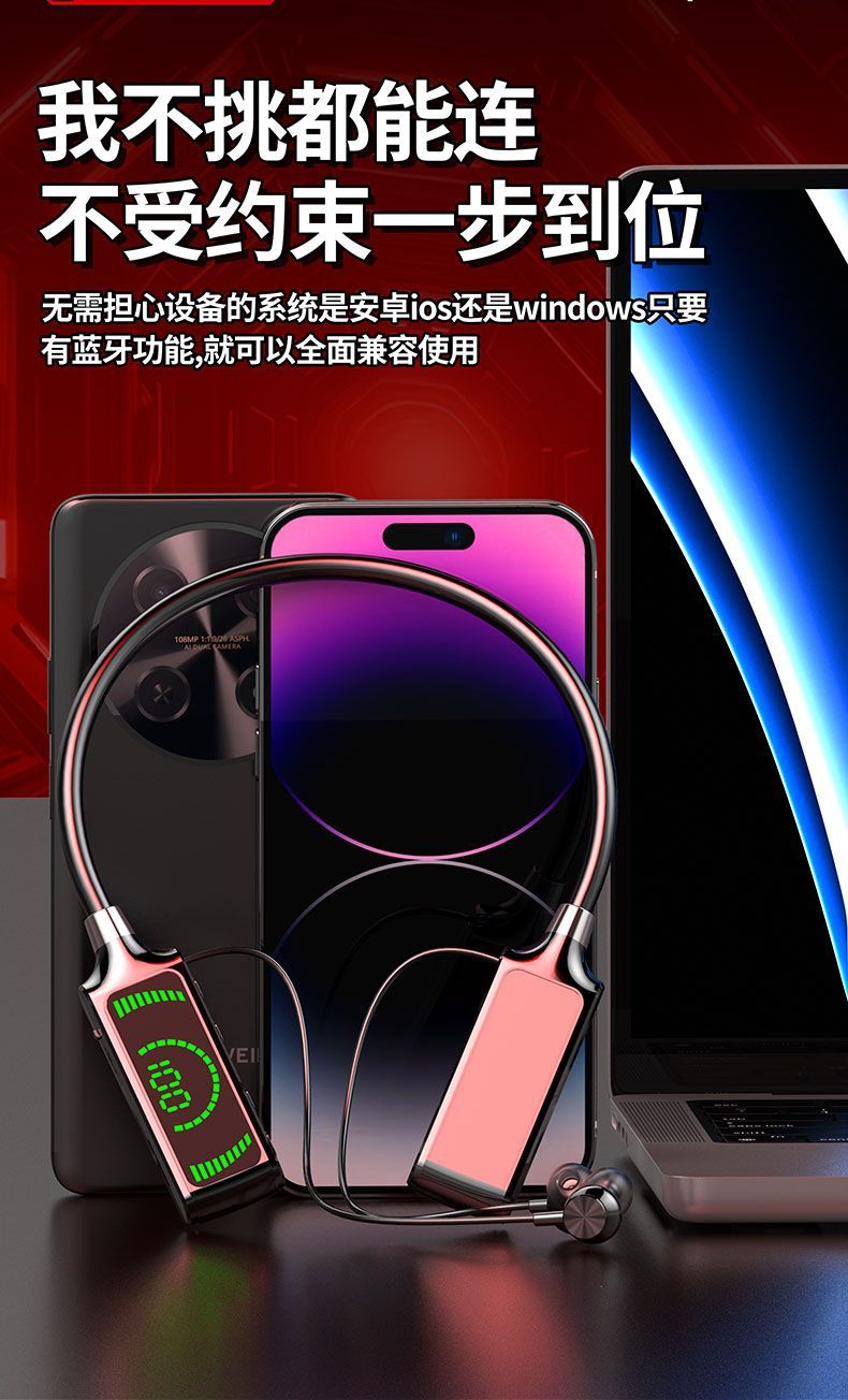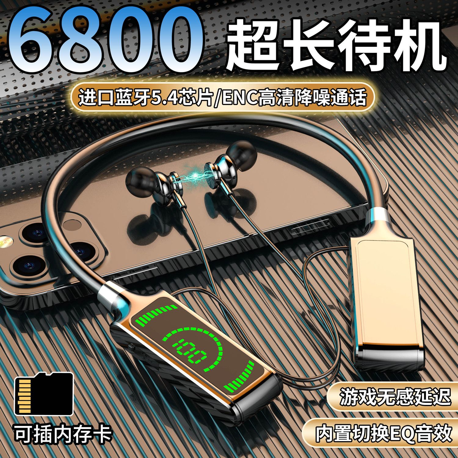 24新款蓝牙耳机无线脖挂式超长续航运动插卡通用小米OPPO华为苹果