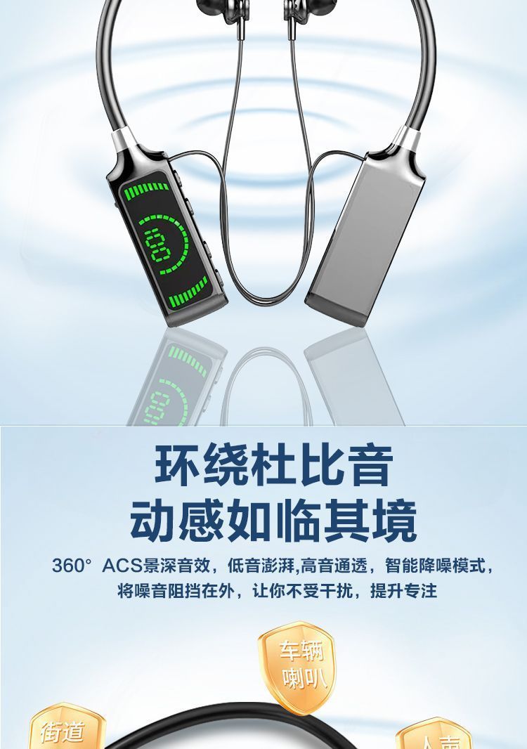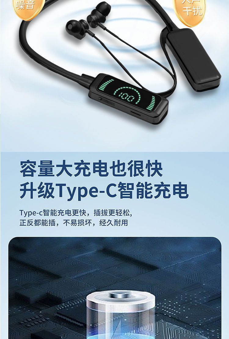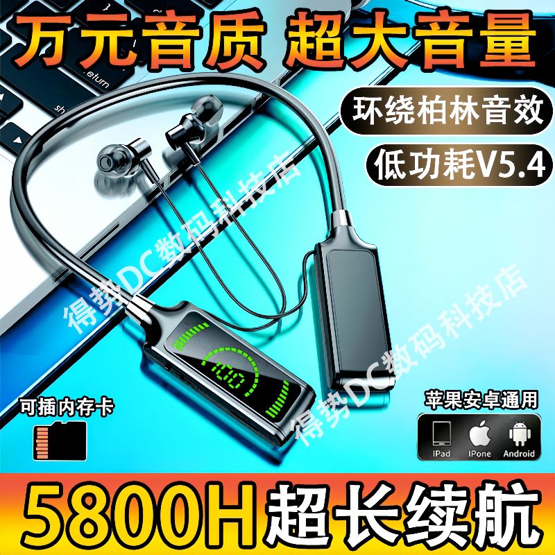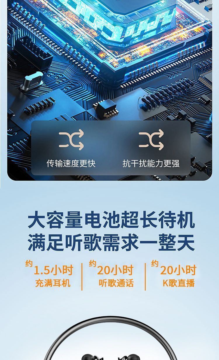 2024新款无线蓝牙耳机K歌耳返挂脖式超长续航重低音安卓苹果通用