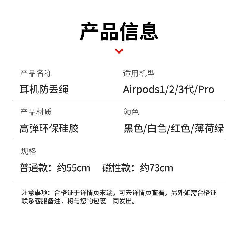 | 1条红色【磁吸款】耳机硅胶防丢绳 | USD $1.57 | 99999 piece available |