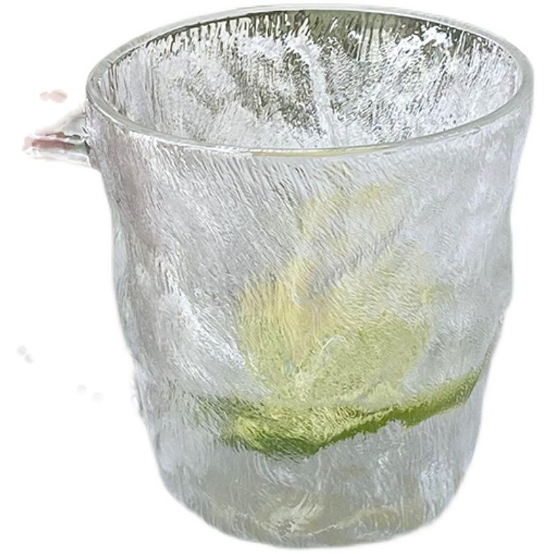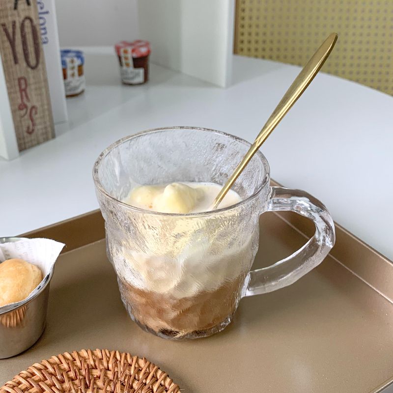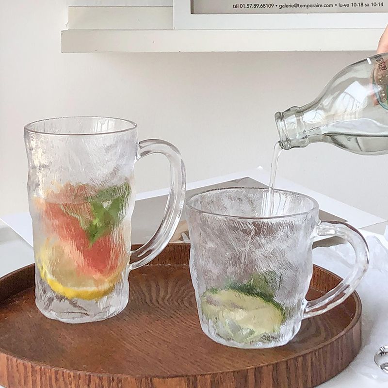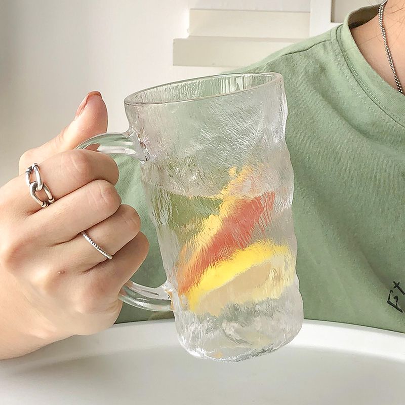 冰川纹带把手玻璃杯 高颜值ins风杯子夏季家用喝水杯女磨砂高级感