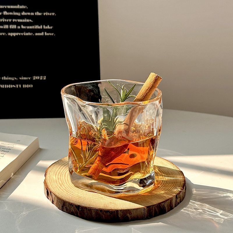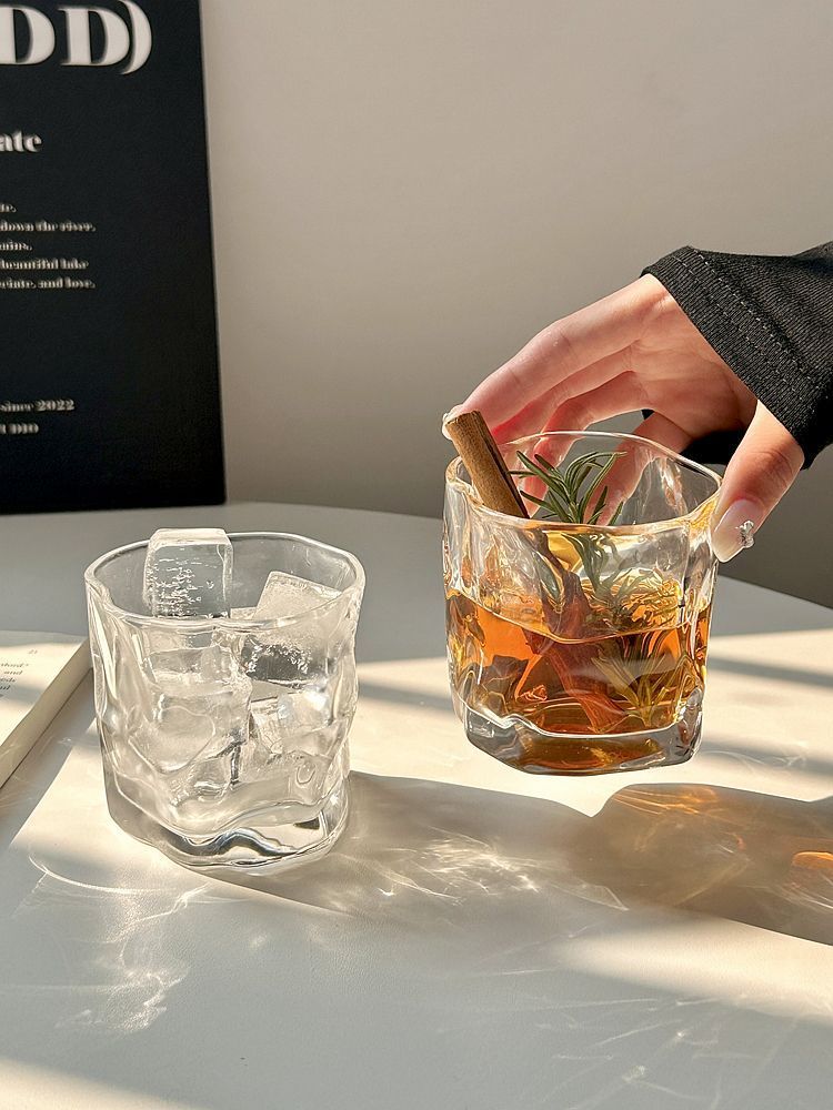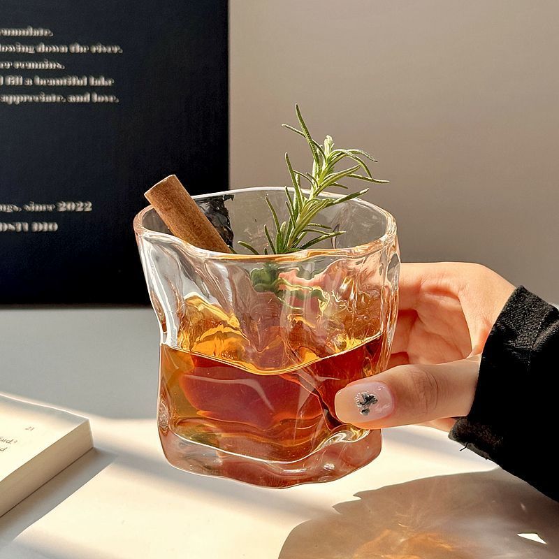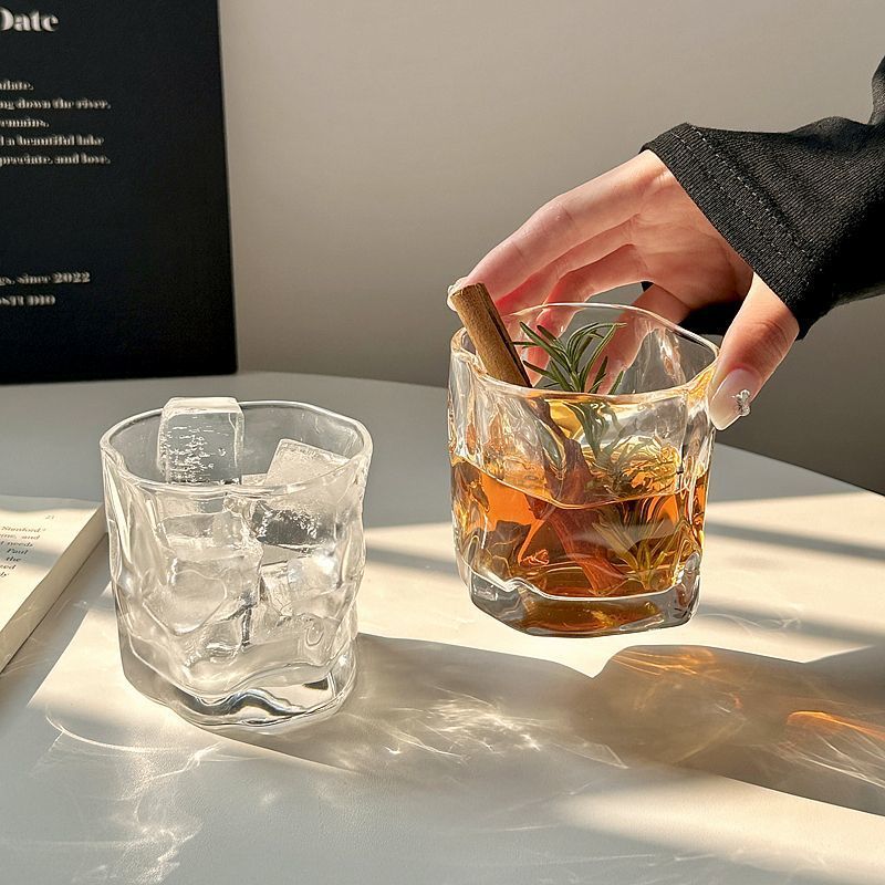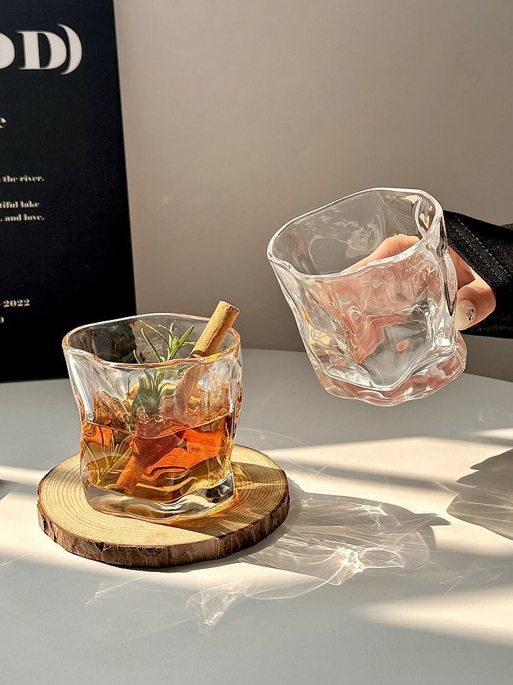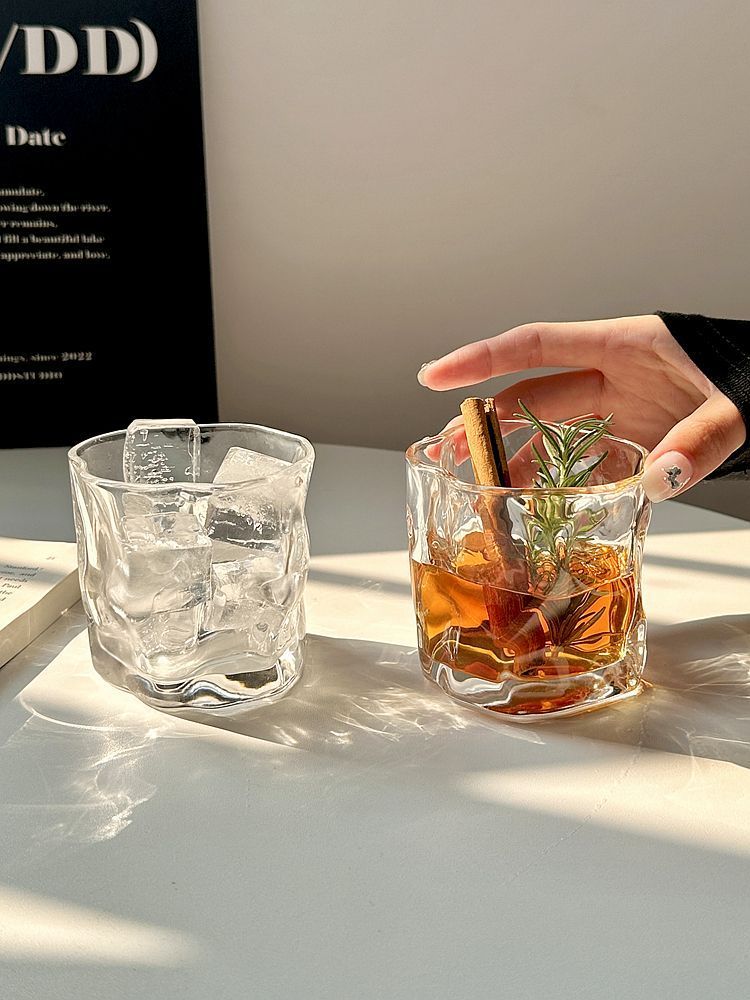 ins风扭扭杯冷饮果汁不规则玻璃杯洋酒啤酒威士忌杯家用褶皱杯