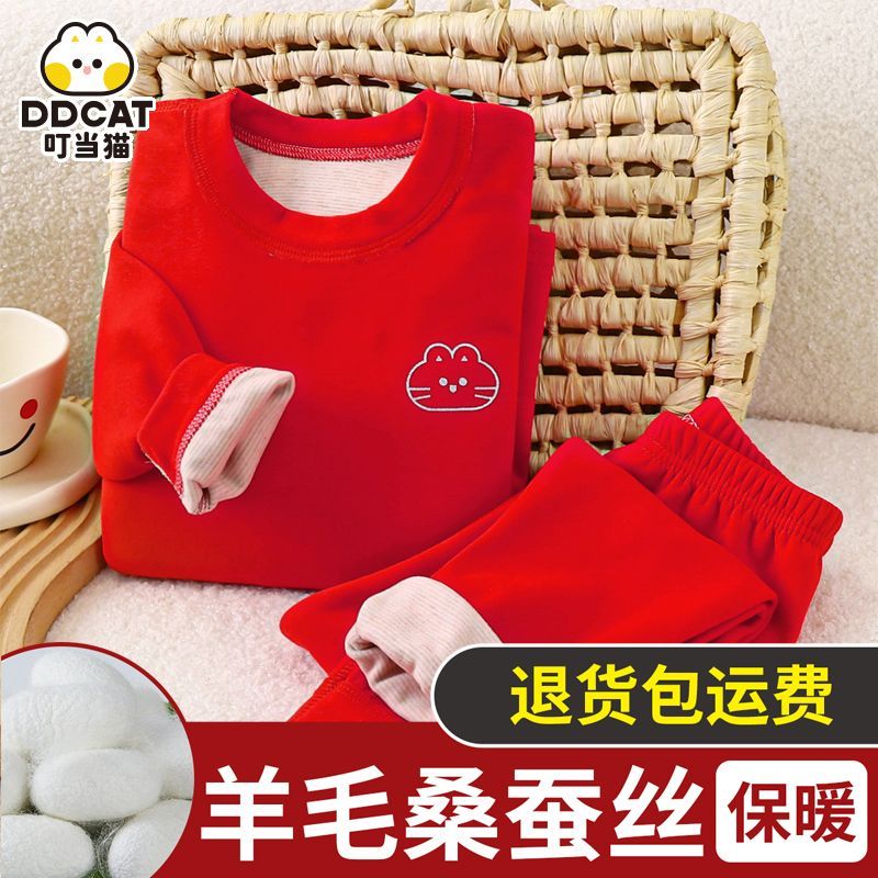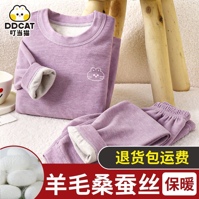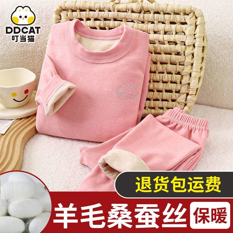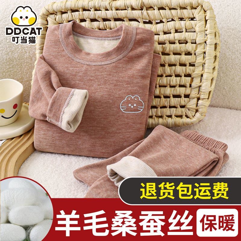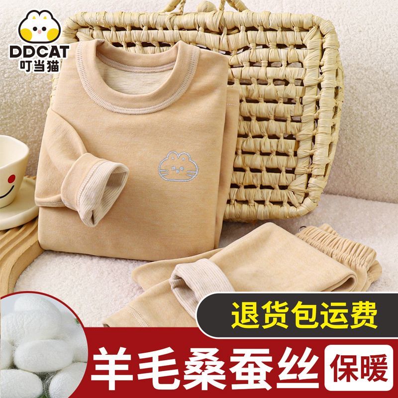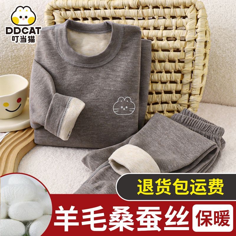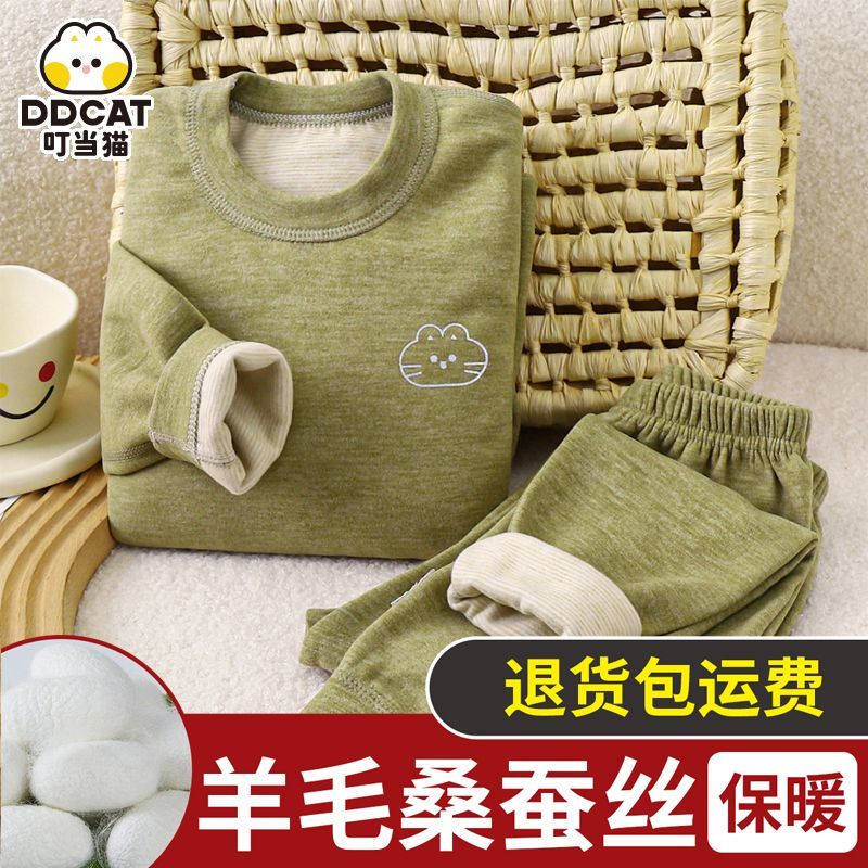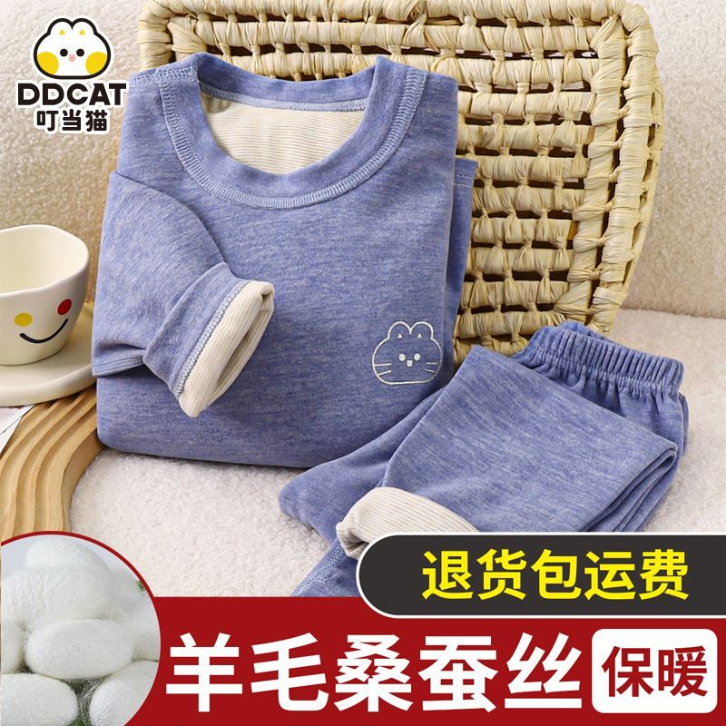 儿童保暖内衣男童羊毛蚕丝无骨秋衣秋裤冬季舒适宝宝装家居服套装