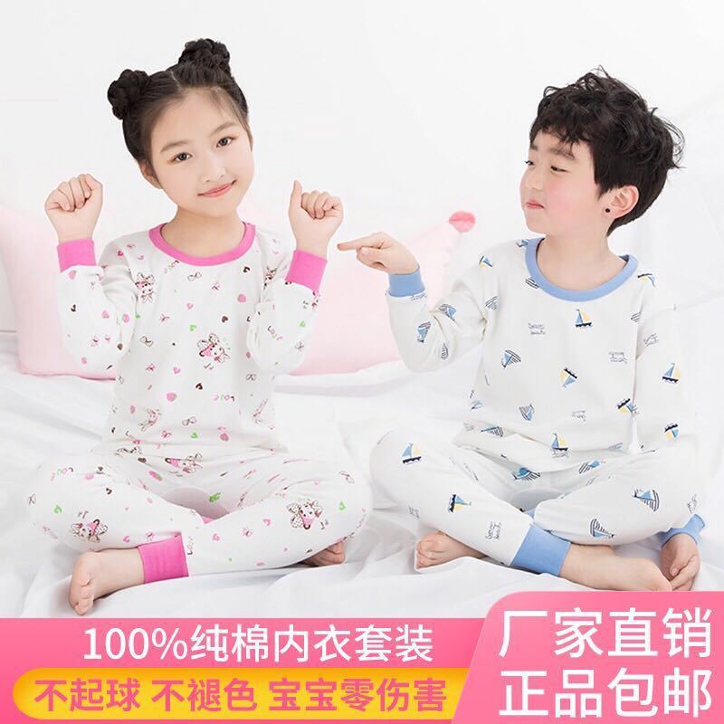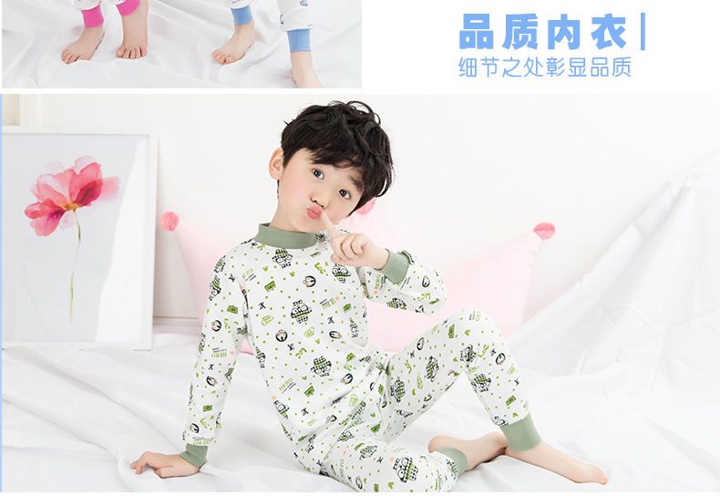 3-17岁儿童内衣套装纯棉男童女童秋衣秋裤高中低领全棉宝宝棉毛衫